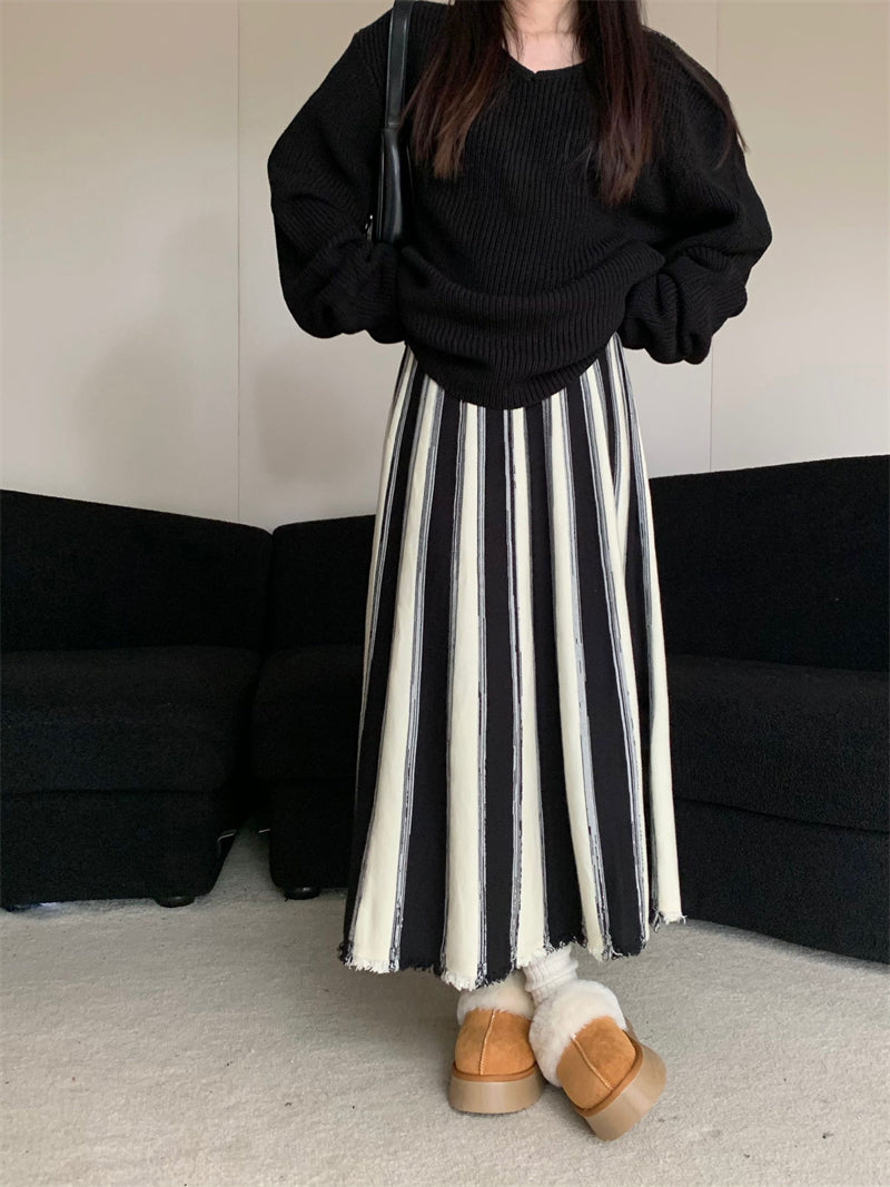 【bottoms】ストライプ柄ニットスカートG24467