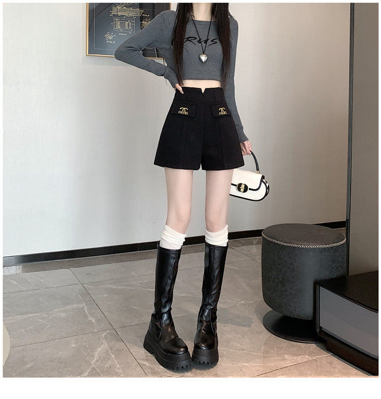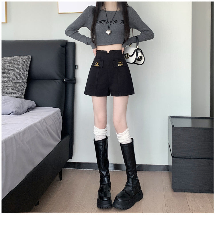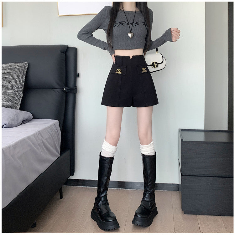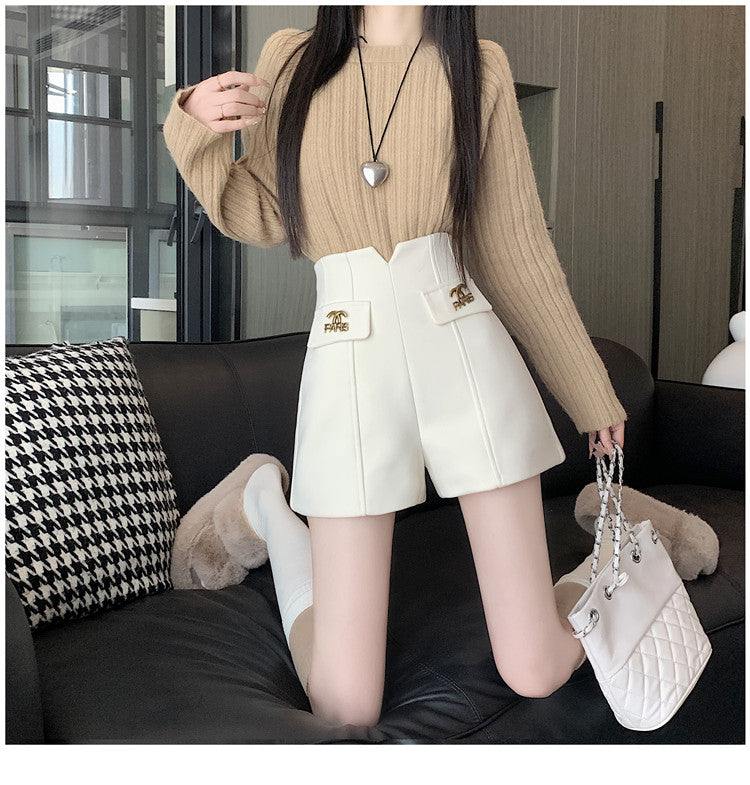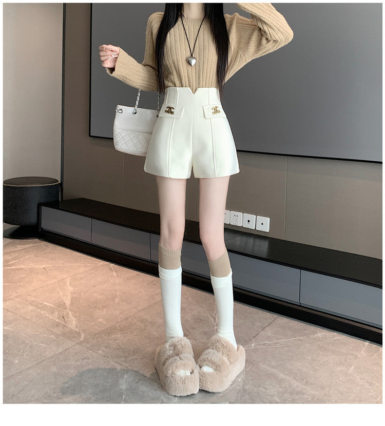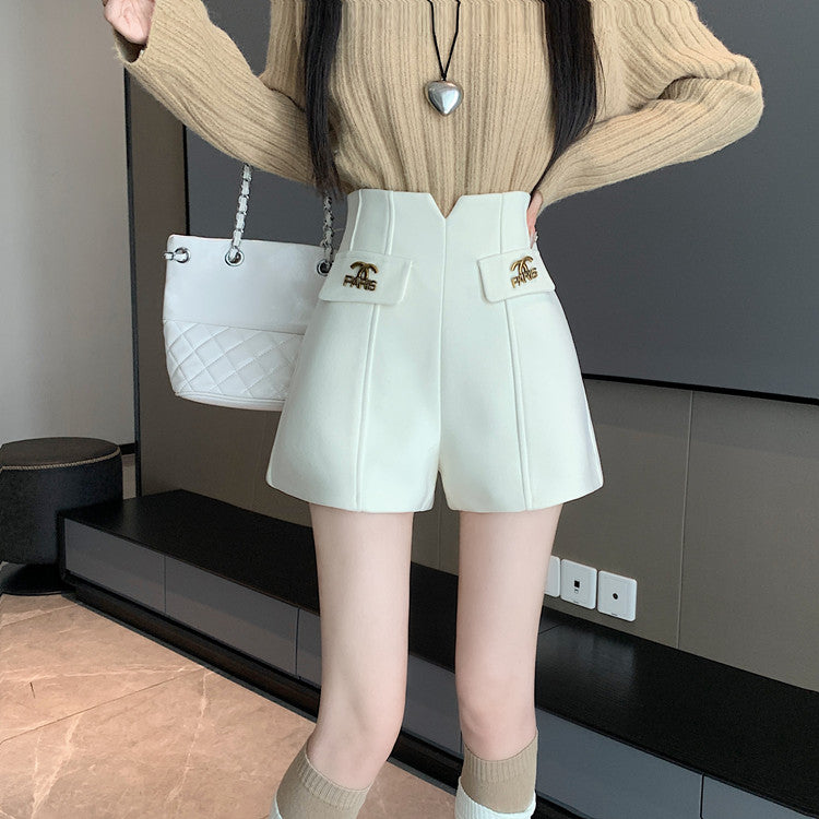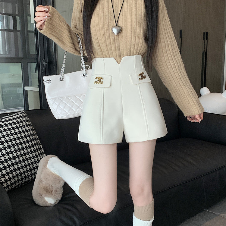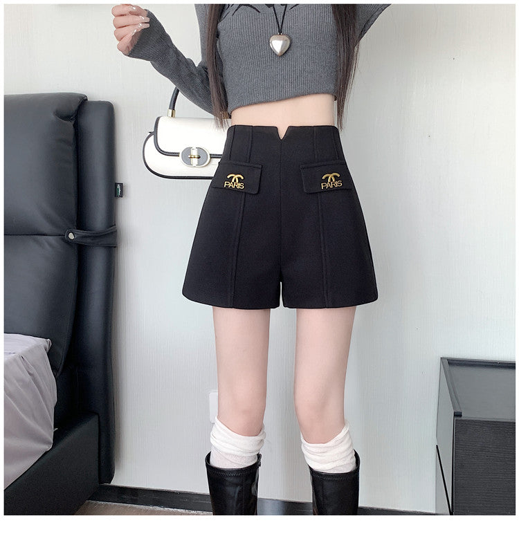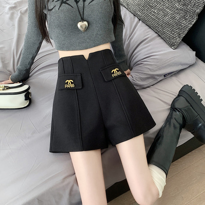 【bottoms】2色ラシャ生地AラインショートパンツG24502