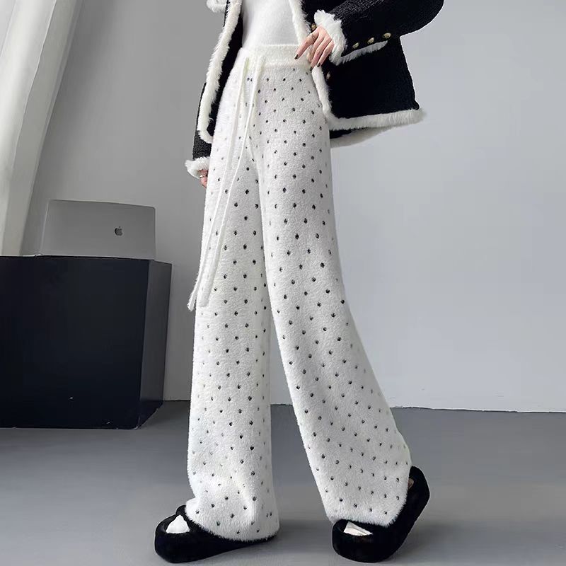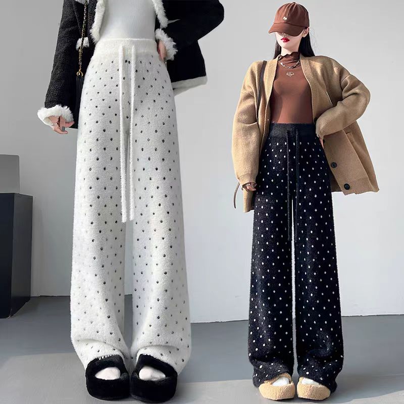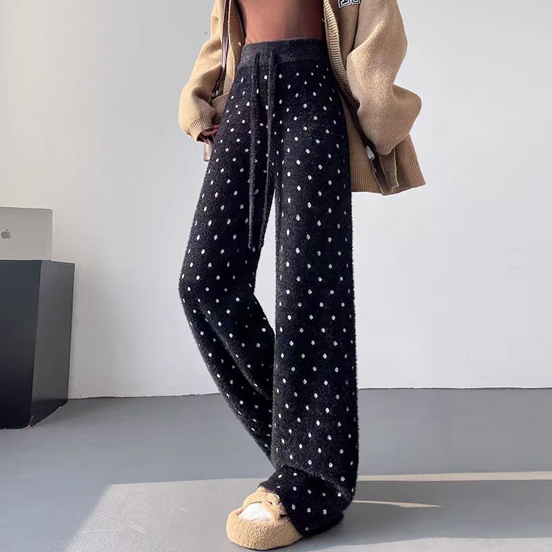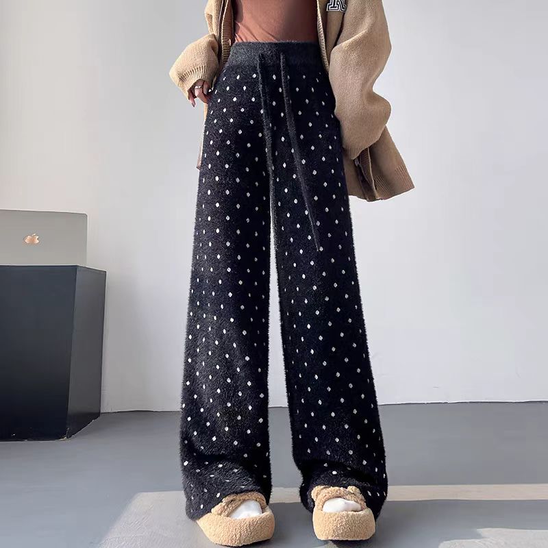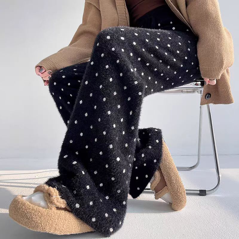 【bottoms】裏起毛厚手ドット柄ニットガウチョパンツG24511