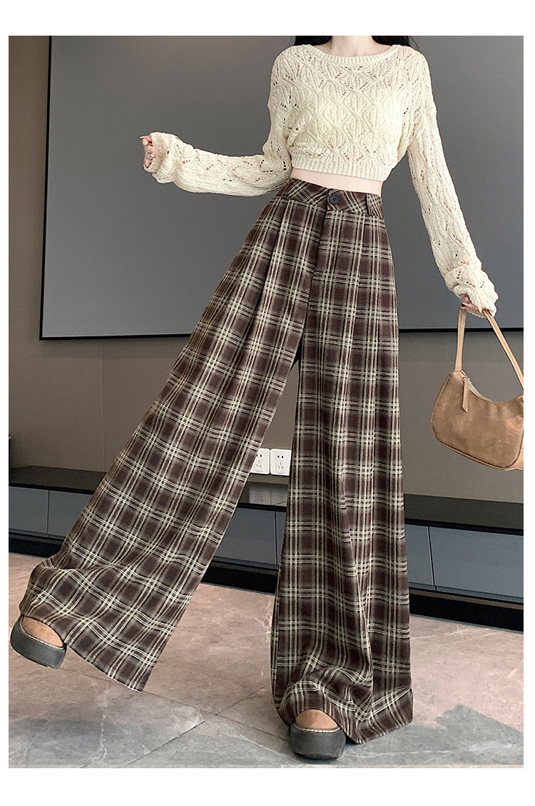 【bottoms】ゆったりチェック柄ガウチョパンツG24519