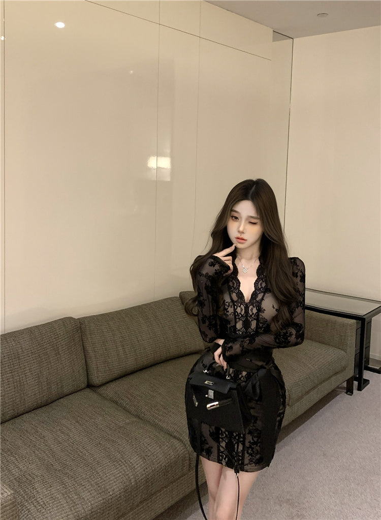 【dress】長袖レース体型カバータイトワンピースG24522