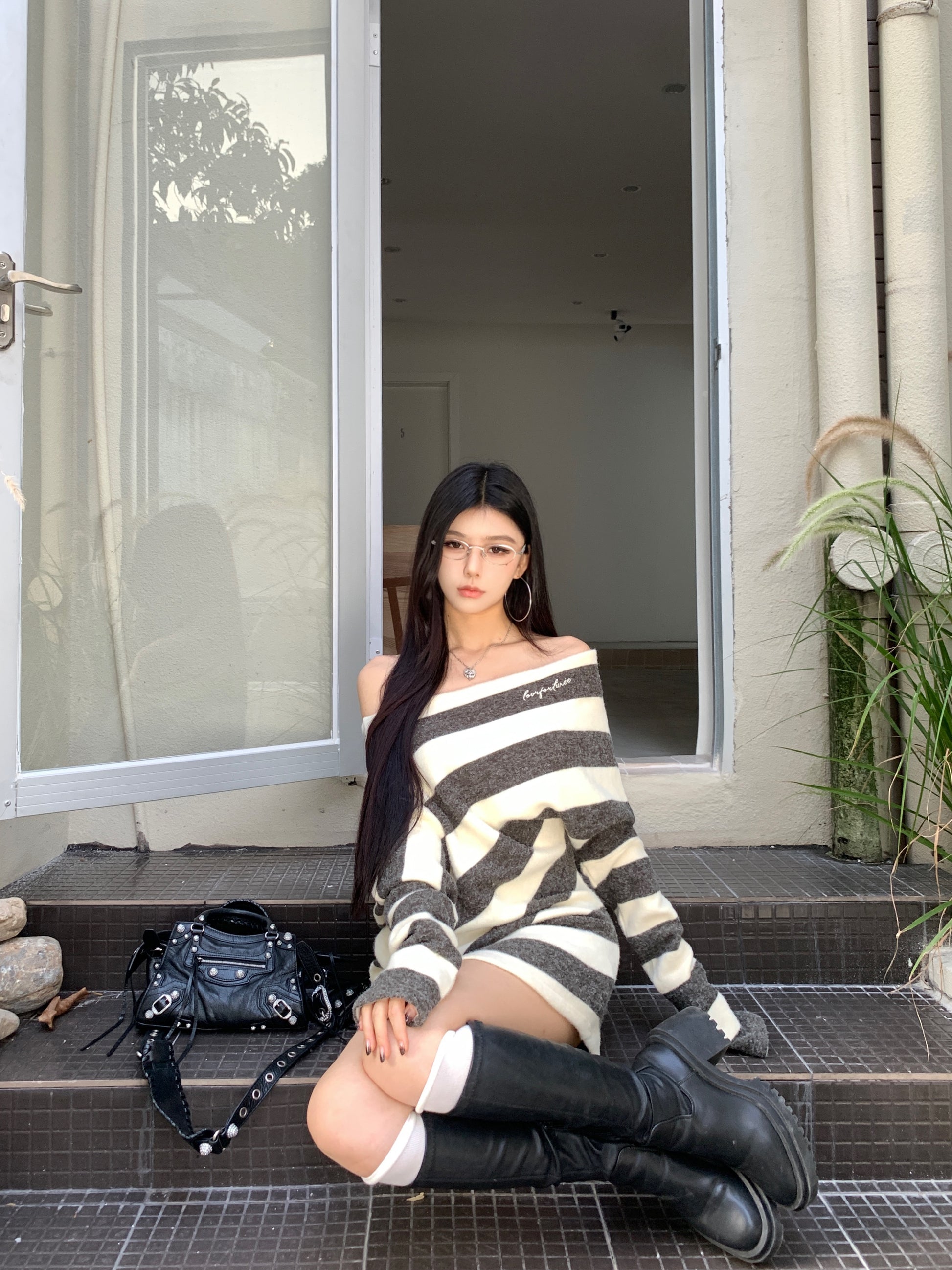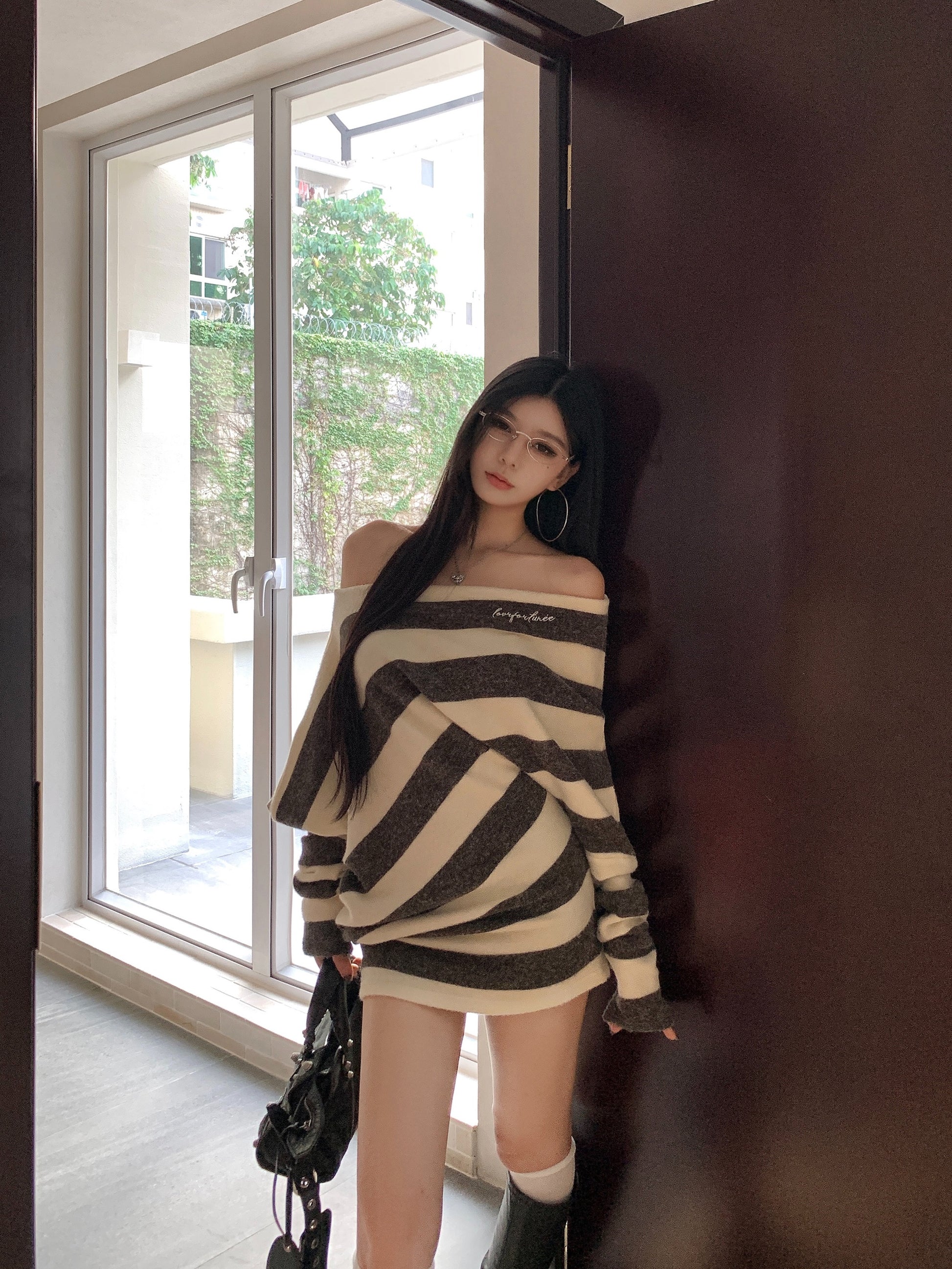 【dress】オフショルダータイトニットワンピースG24525