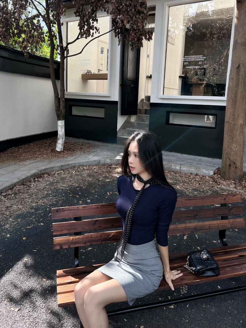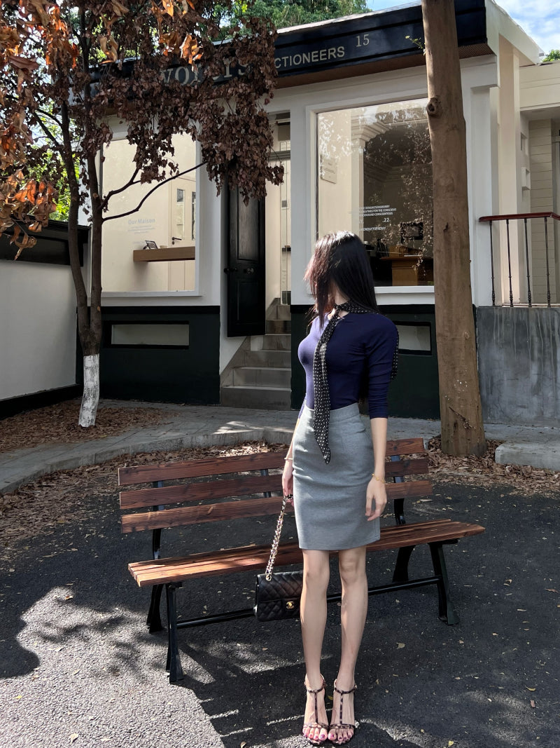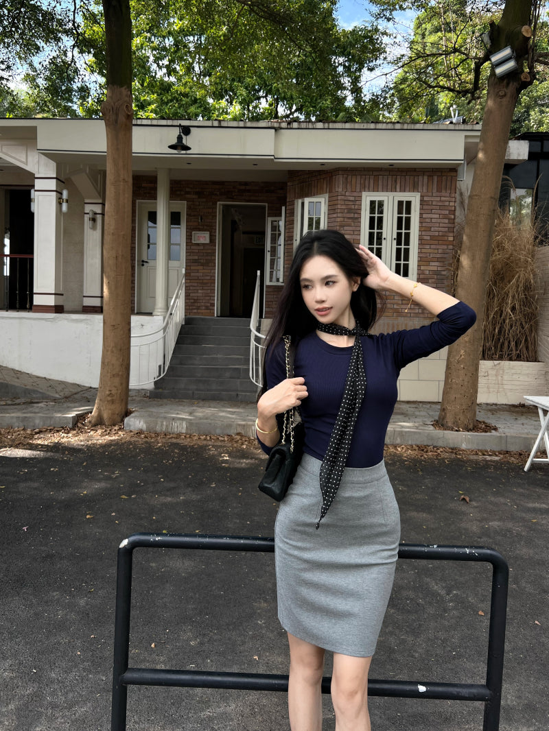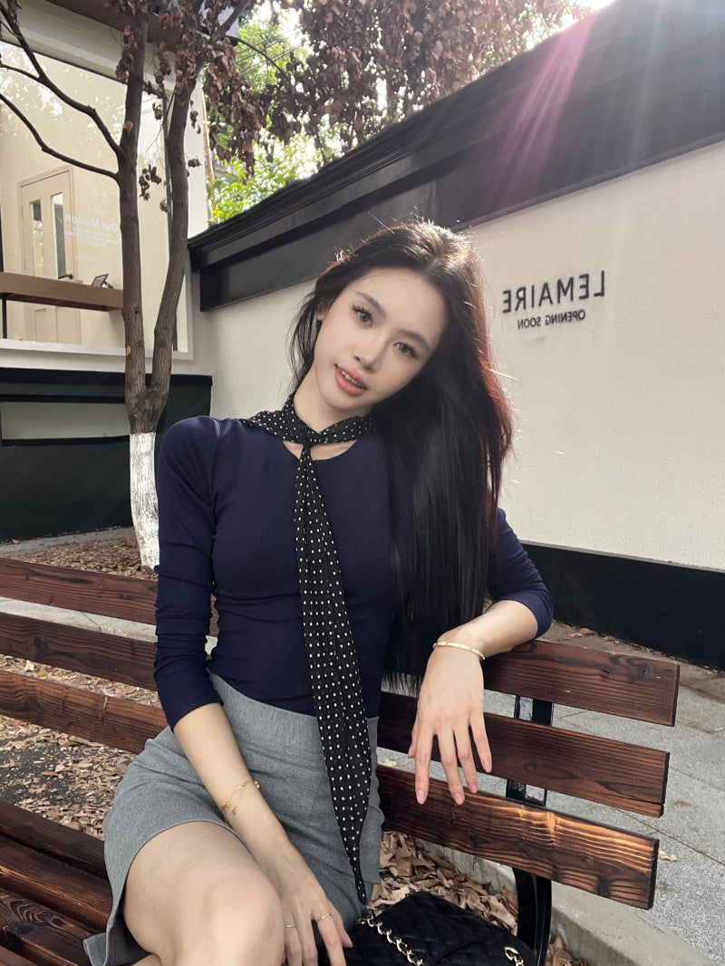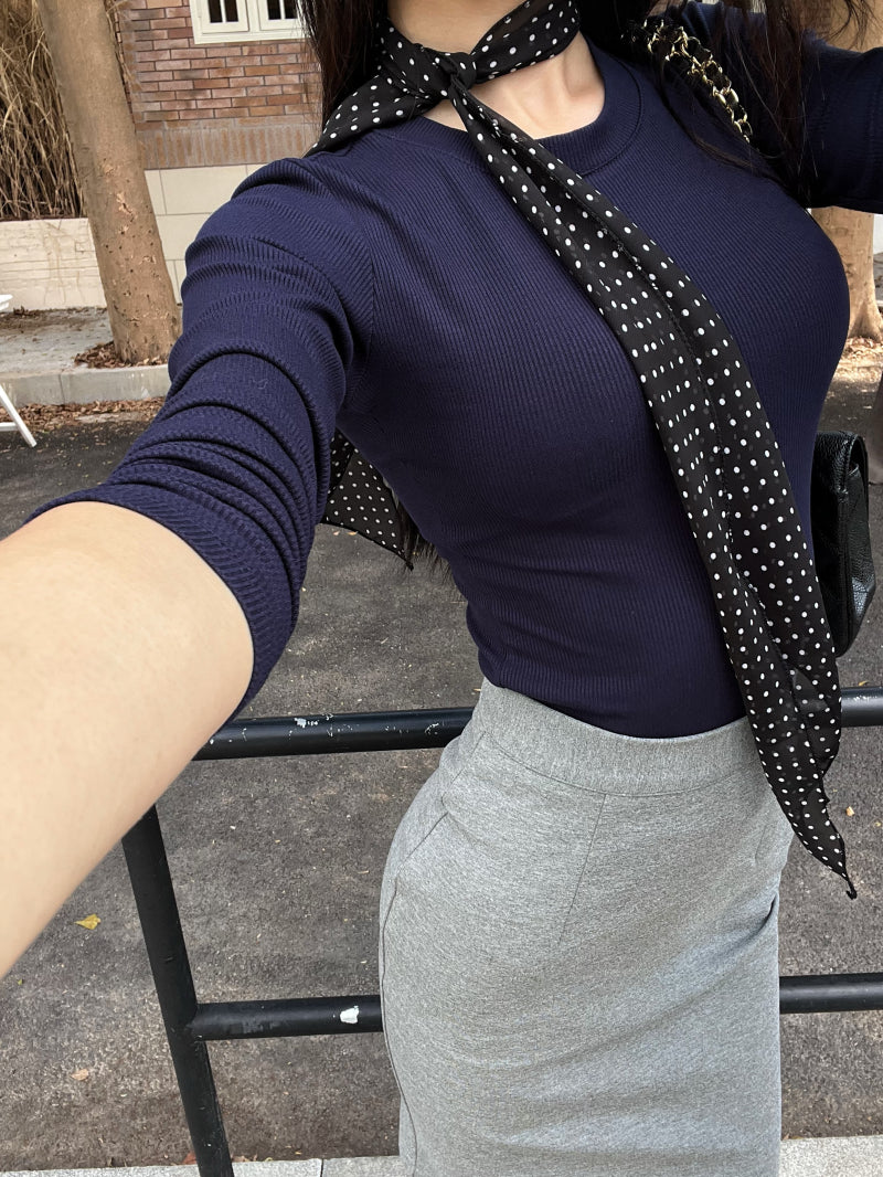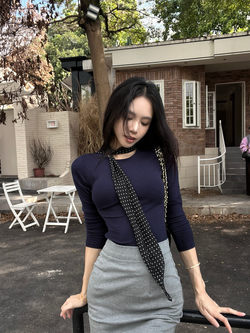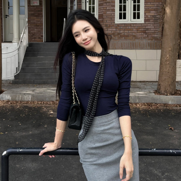 【tops】ラウンドネック長袖スカーフ付きTシャツG24533