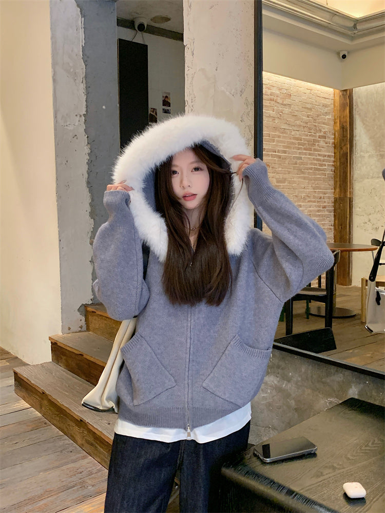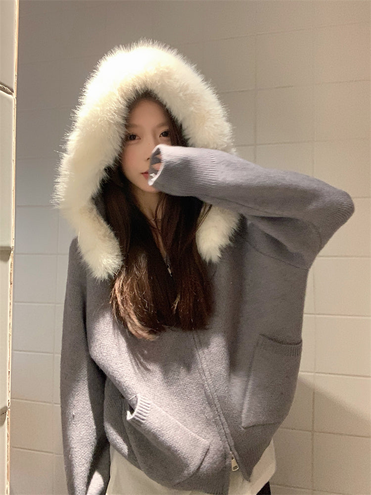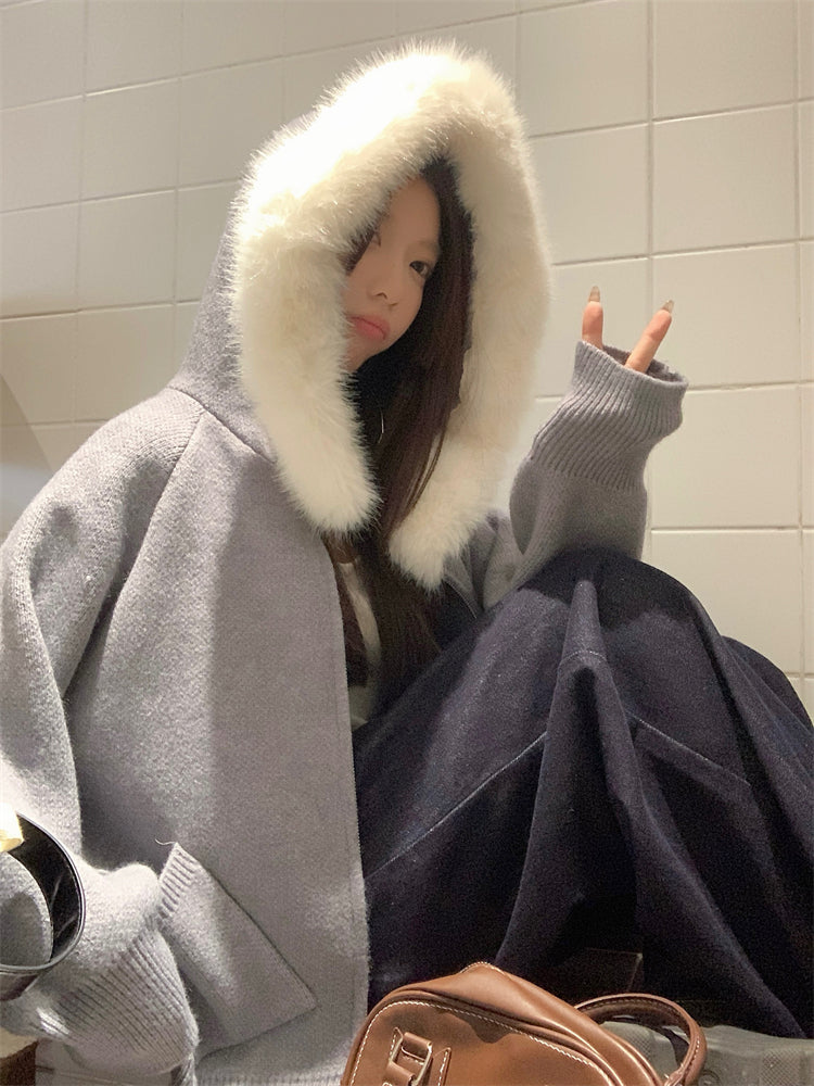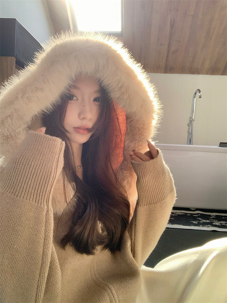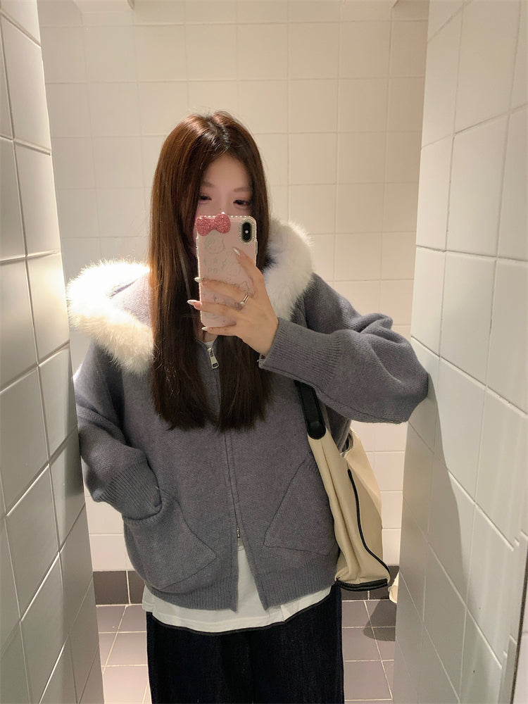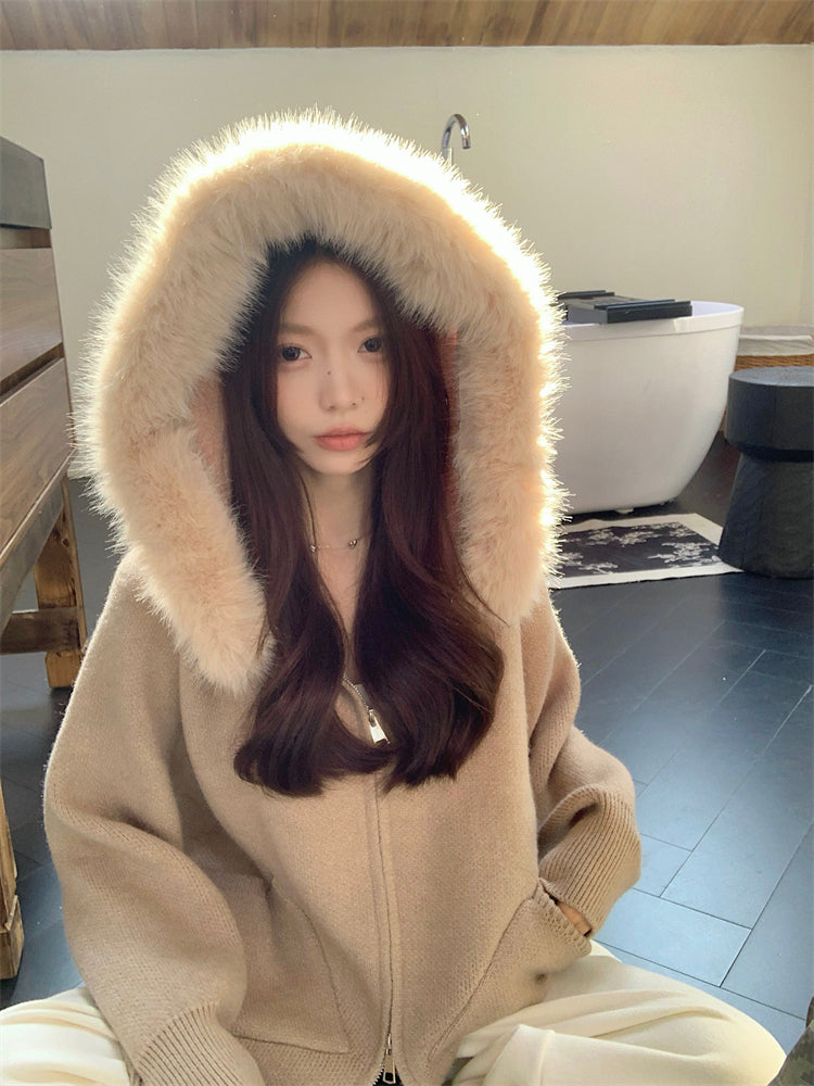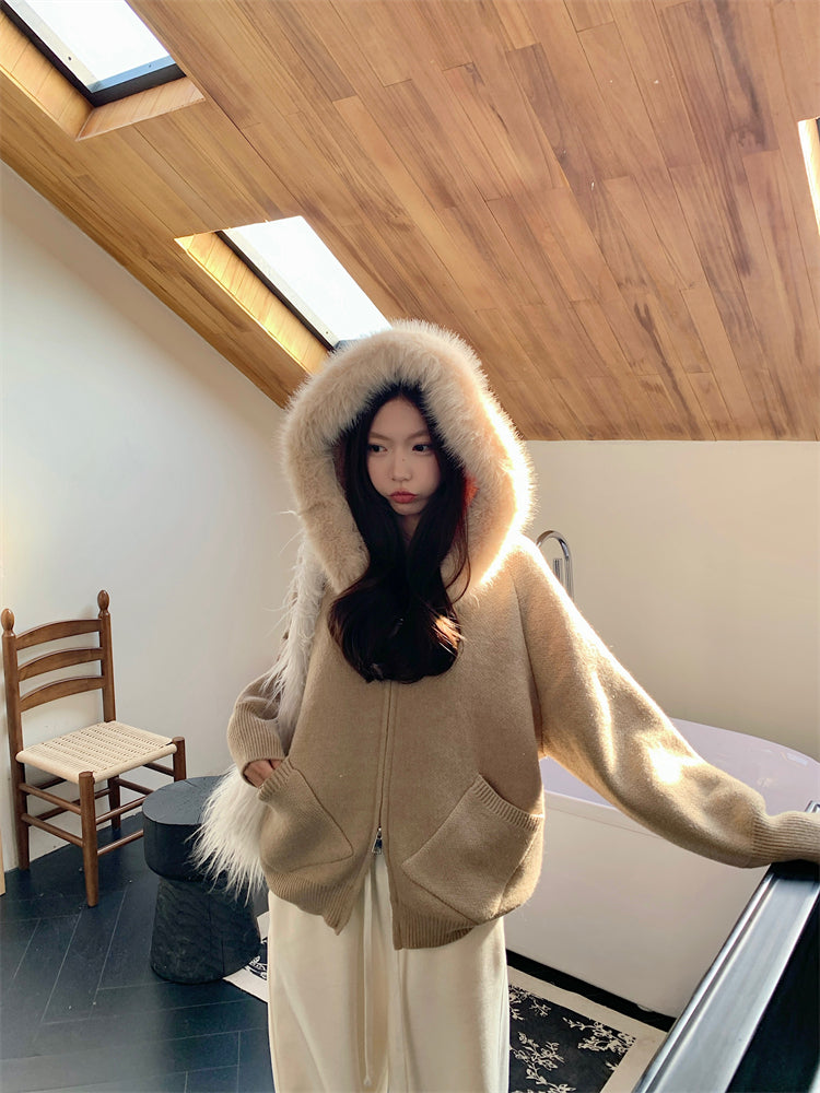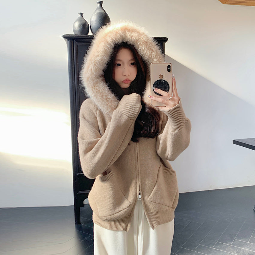 【outer】秋冬フード付きニットカーディガンG24582