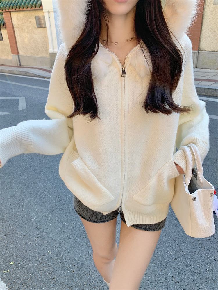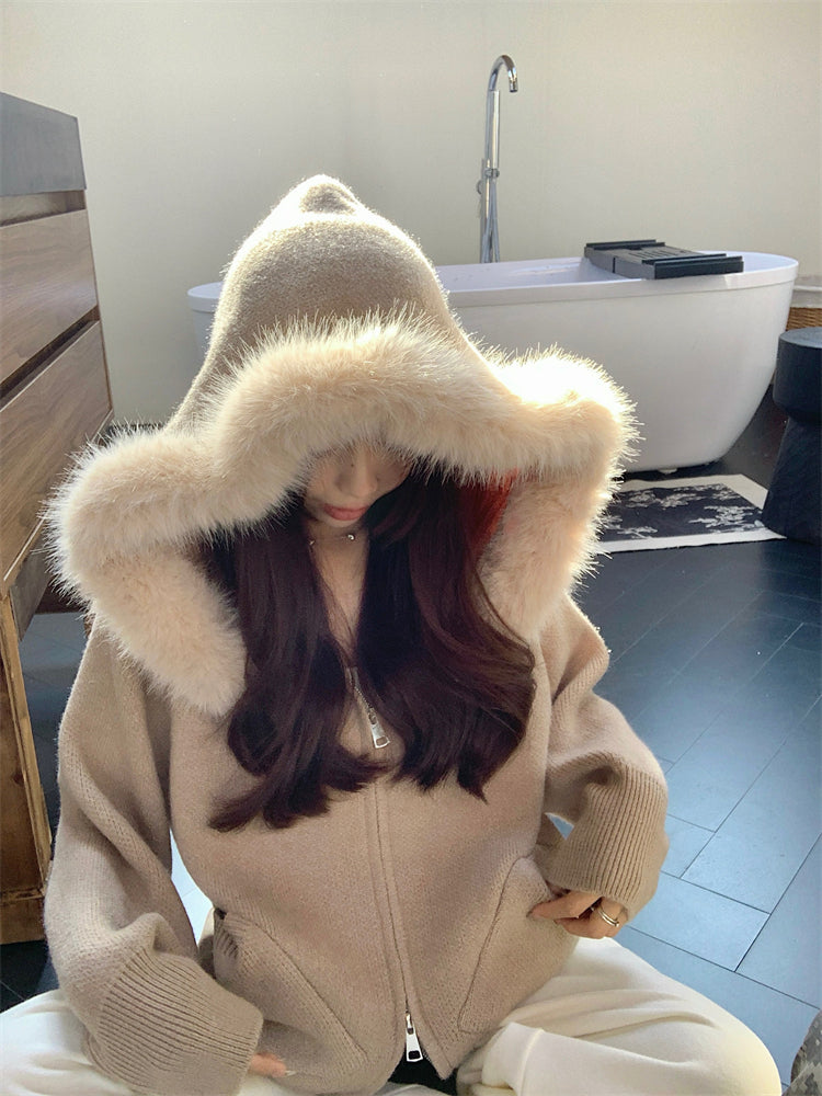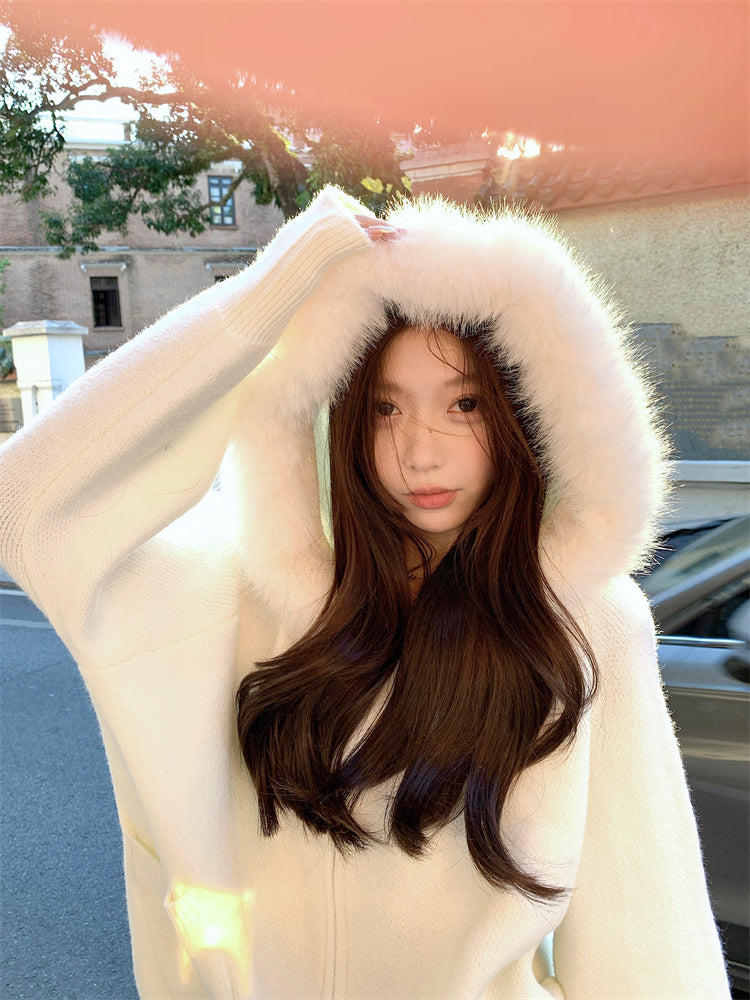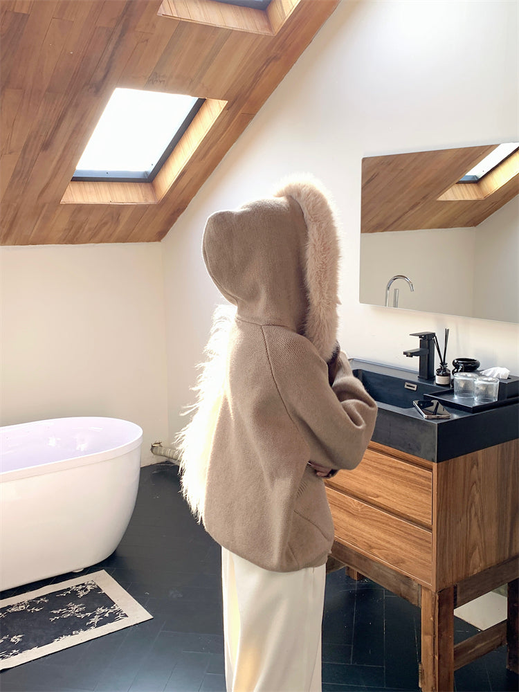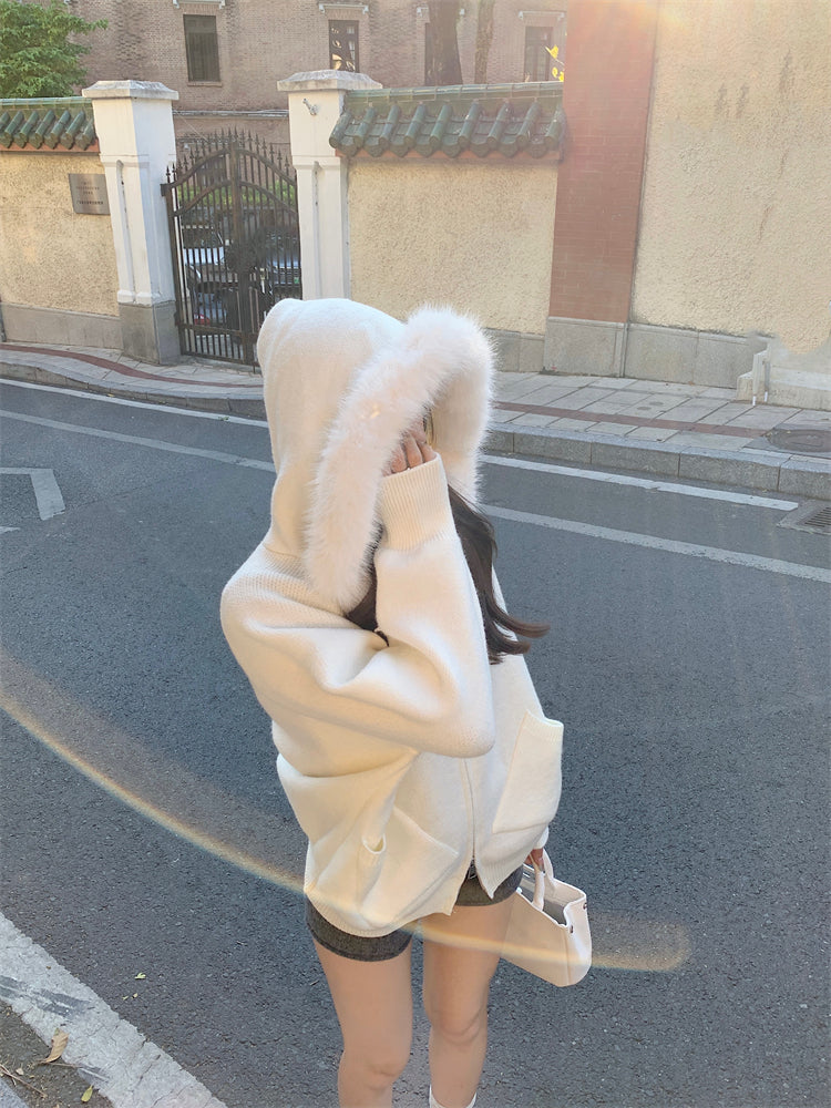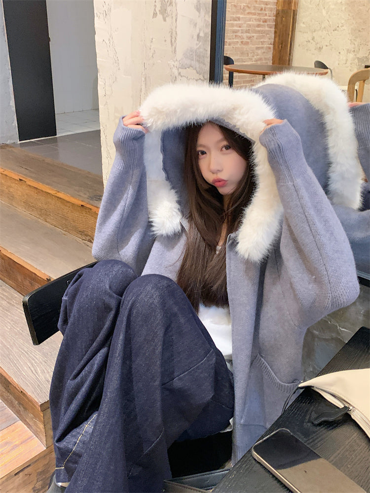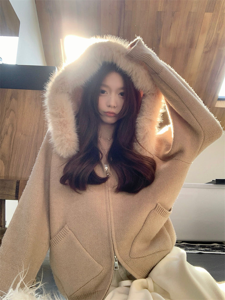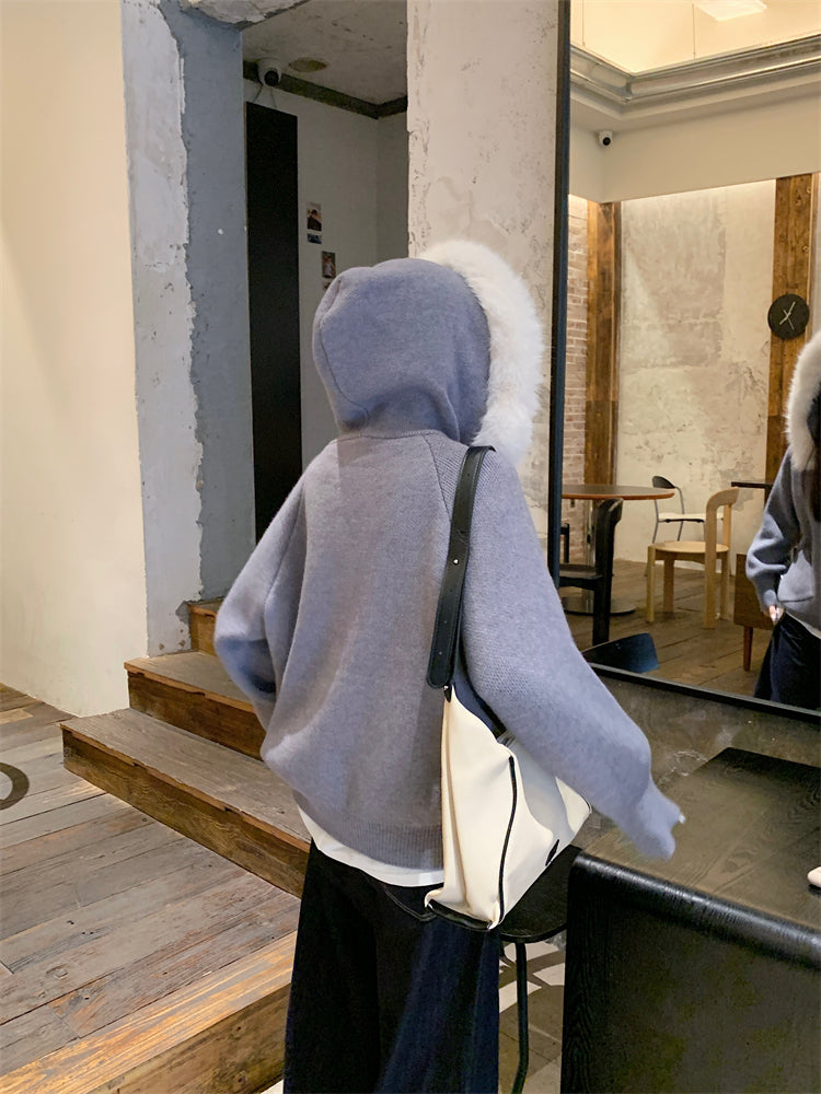 【outer】秋冬フード付きニットカーディガンG24582