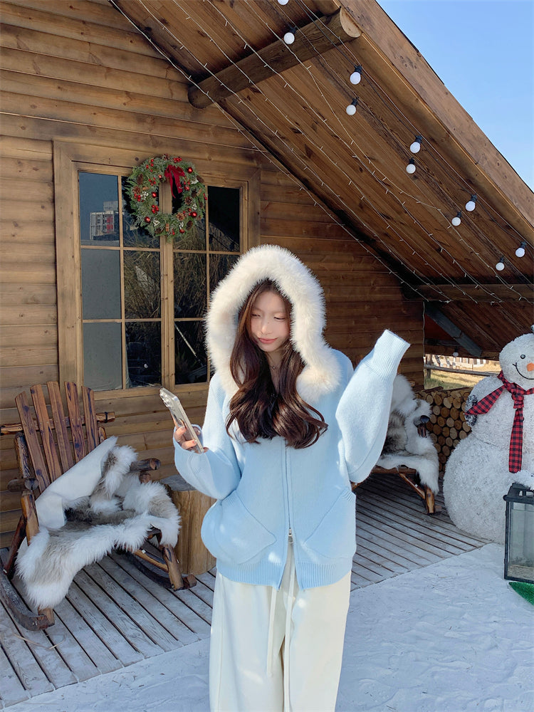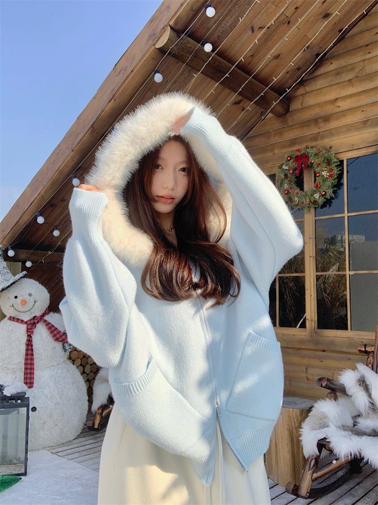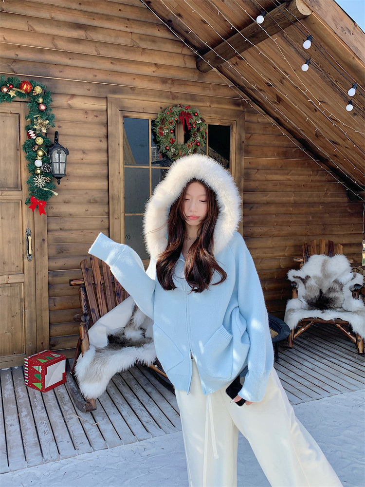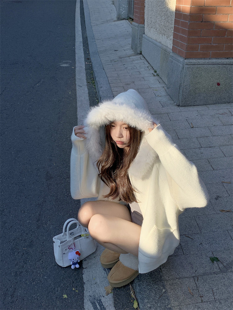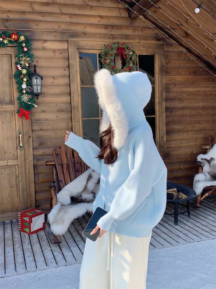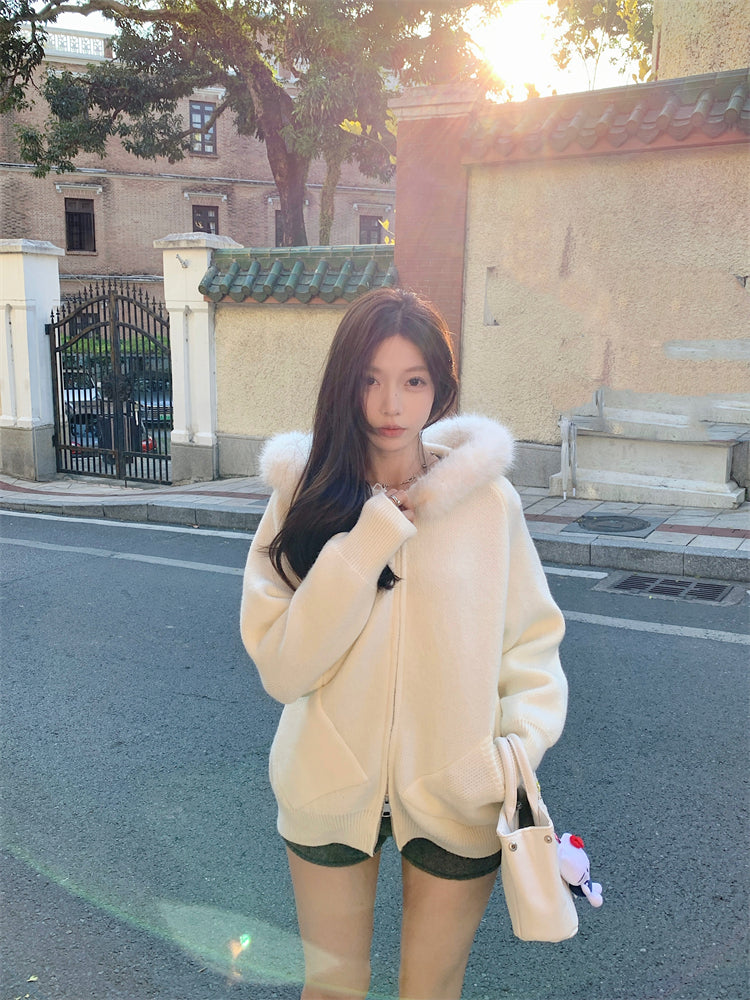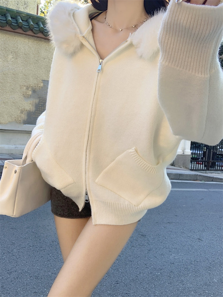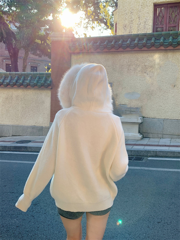 【outer】秋冬フード付きニットカーディガンG24582