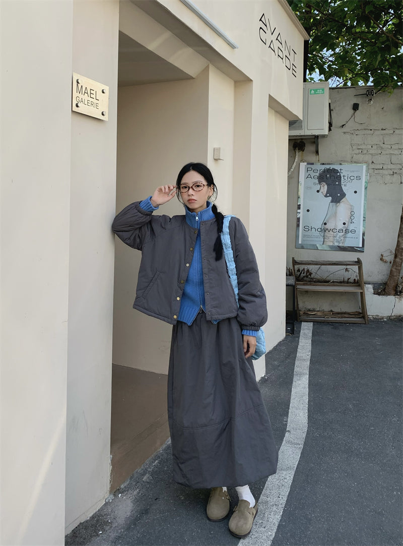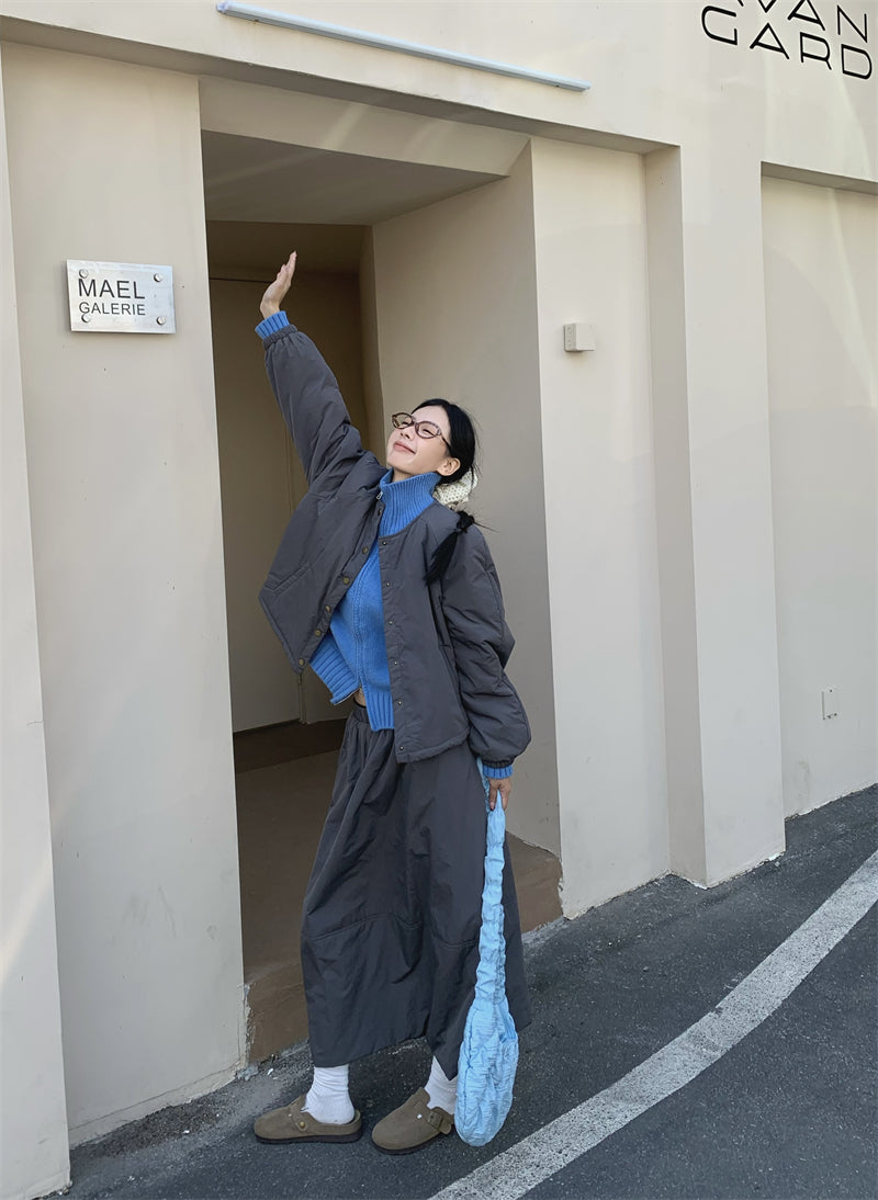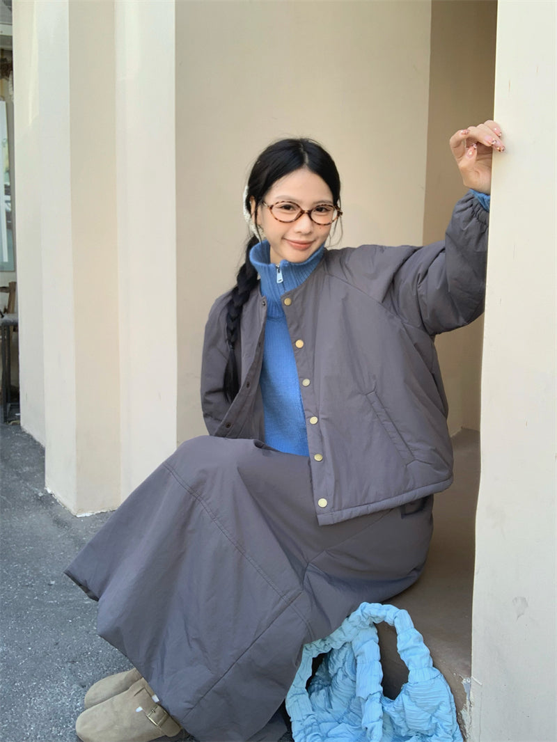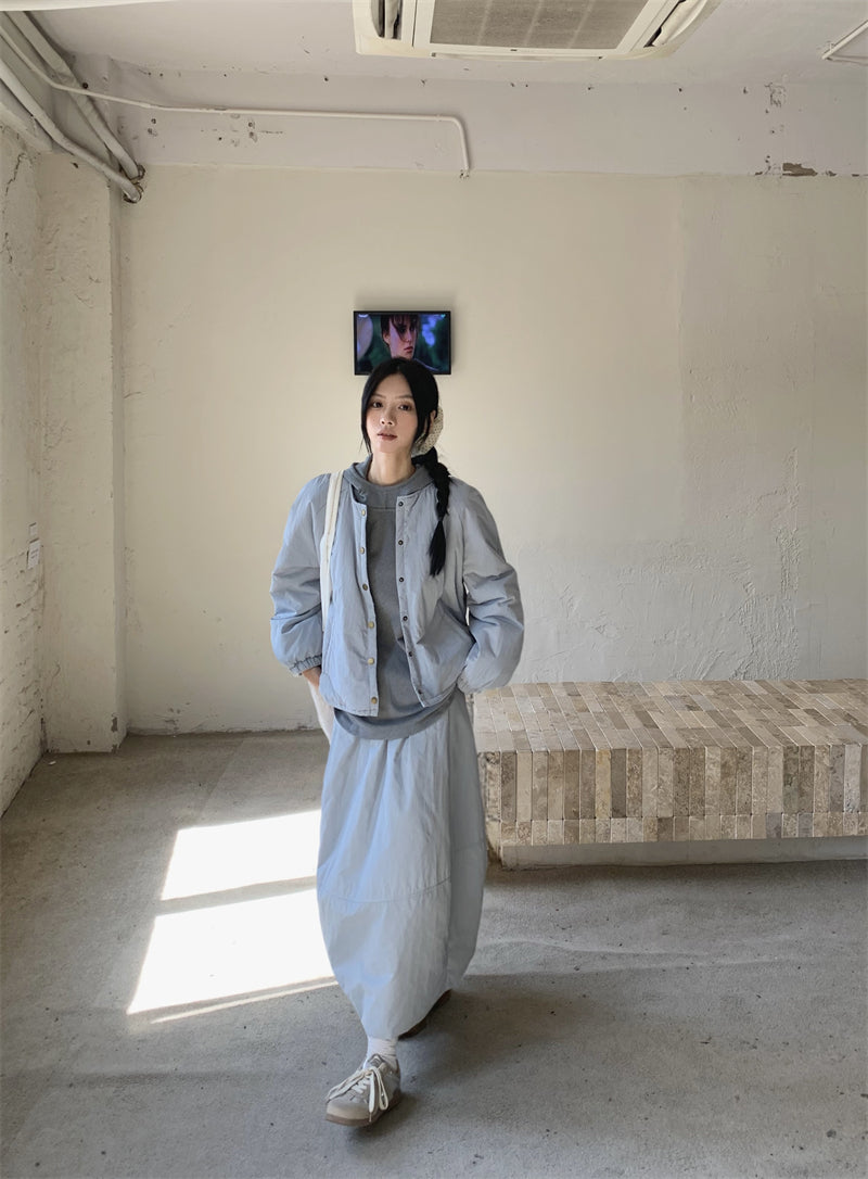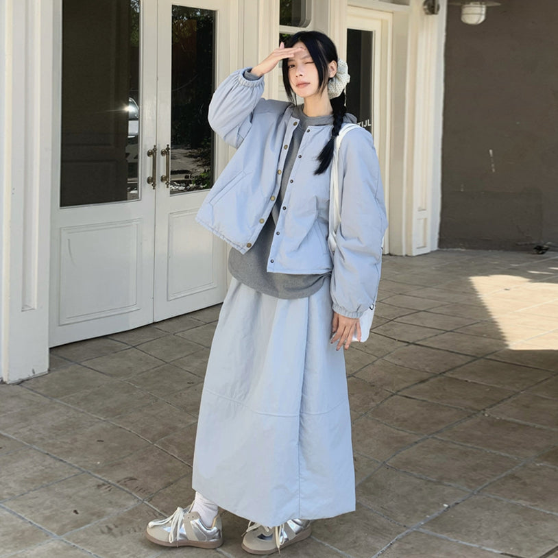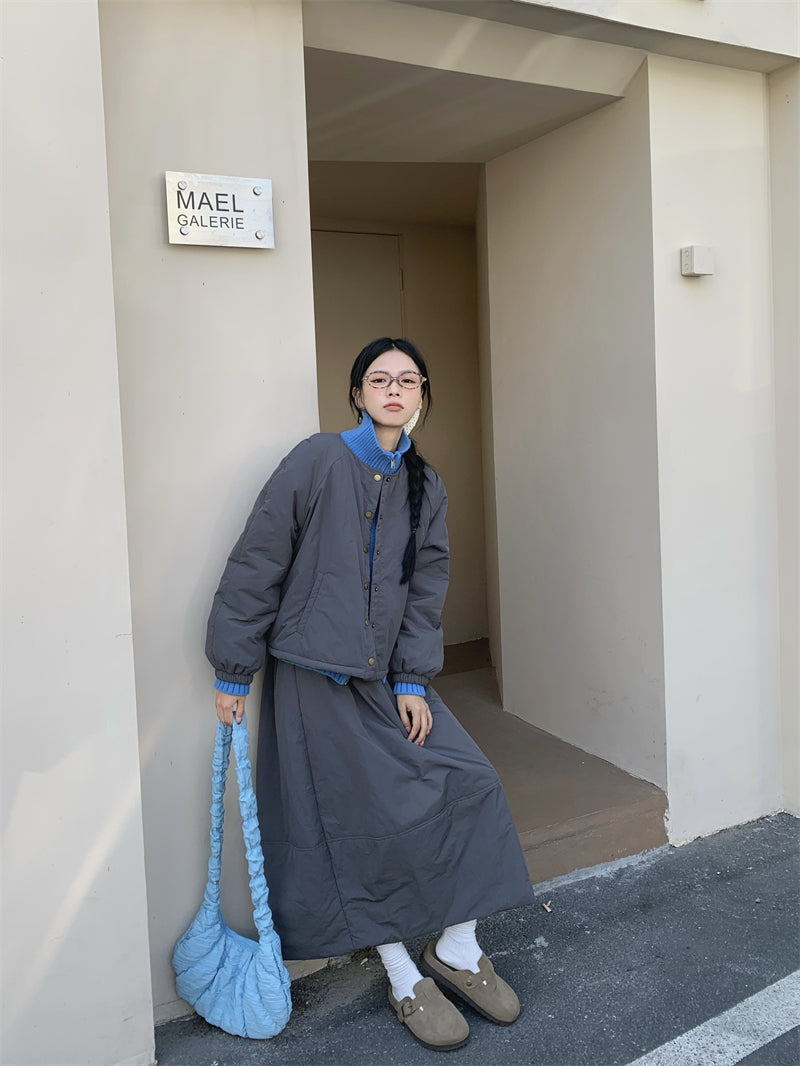 【set】冬ラウンドネックコート+スカート2点セットG24585