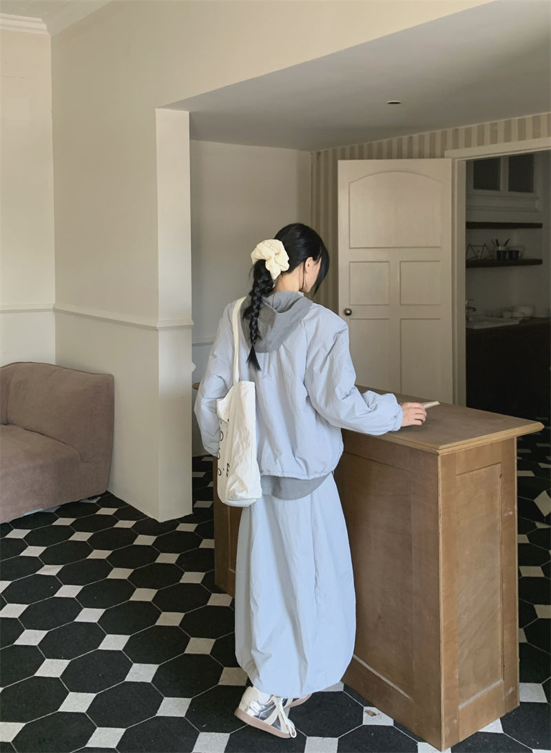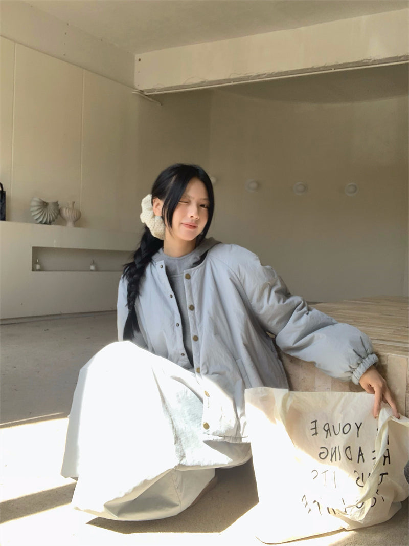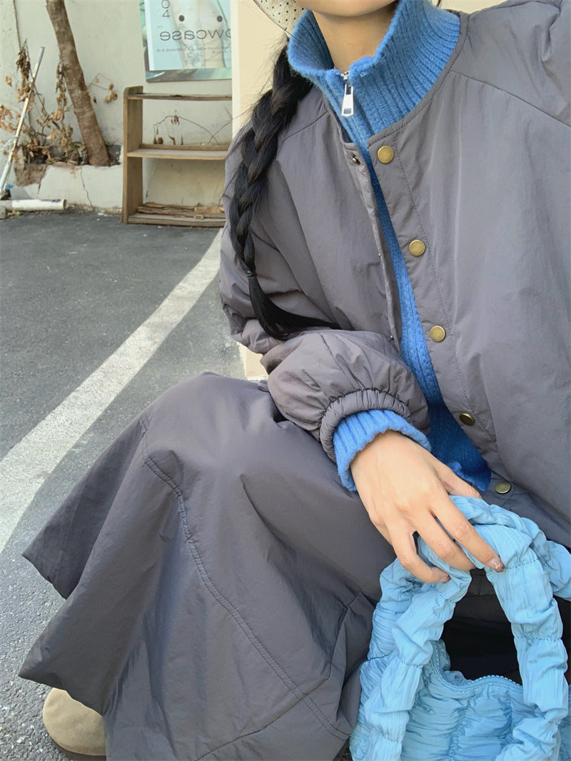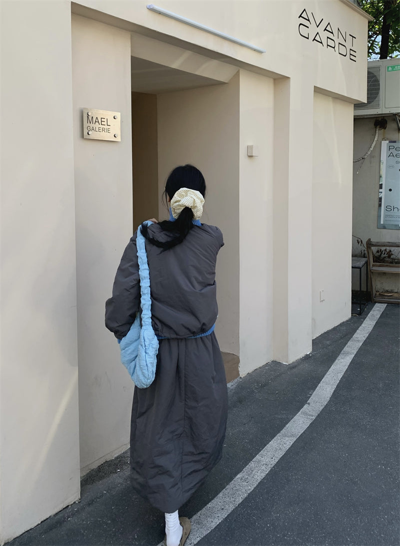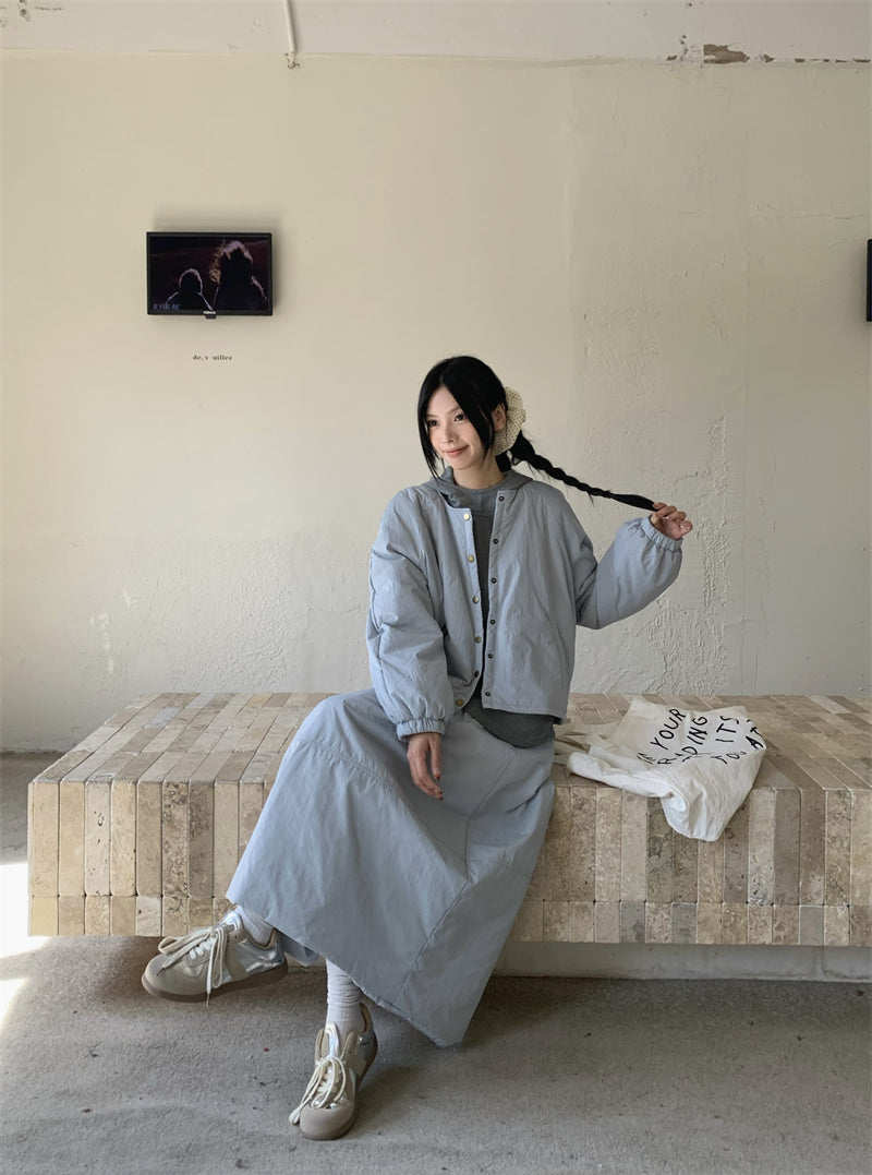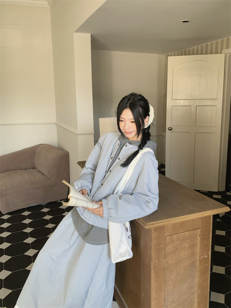 【set】冬ラウンドネックコート+スカート2点セットG24585