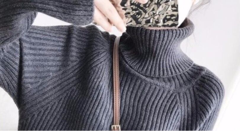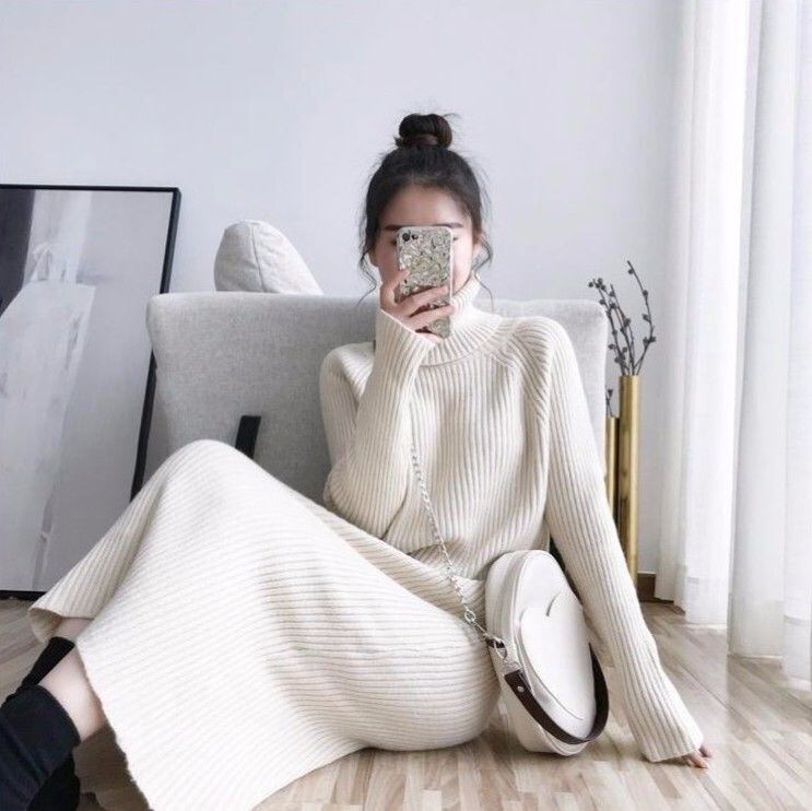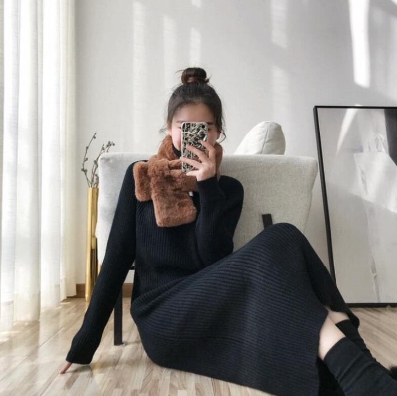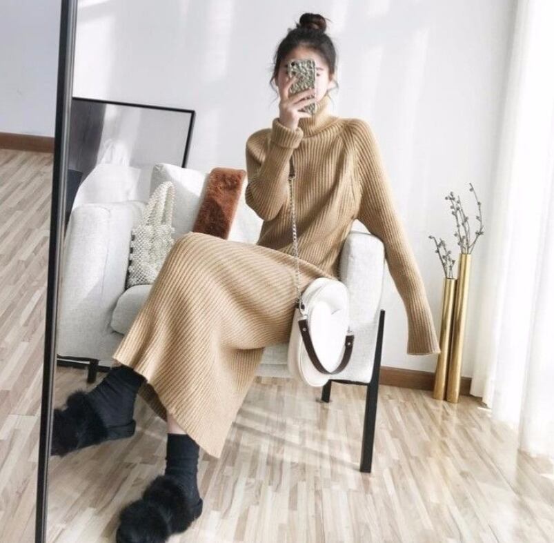 【dress】秋冬気質満点レトロフランス風着痩せハイネックニットワンピース G2598