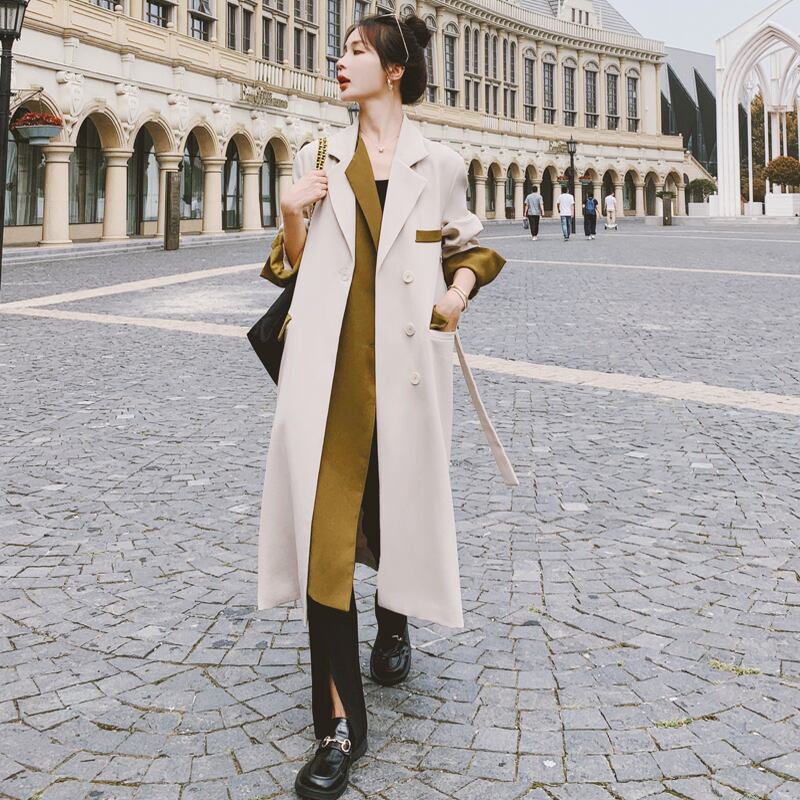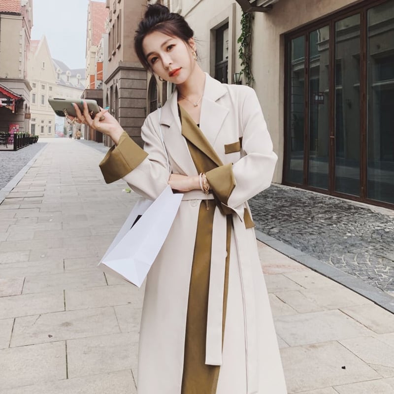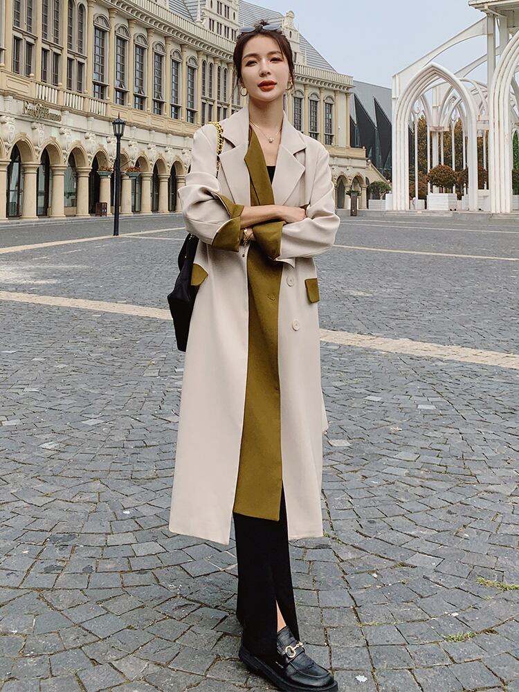 【outer】美人度アップ!ファッション魅力的上品な質感エレガントロング丈トレンチコート G2777