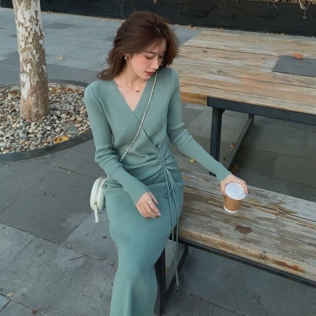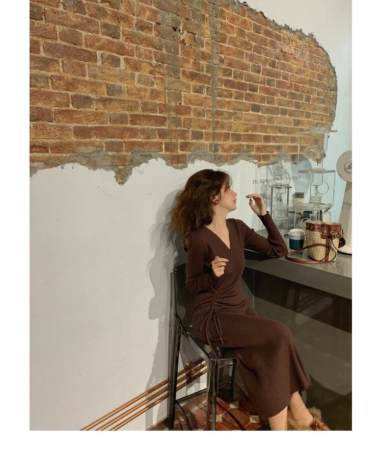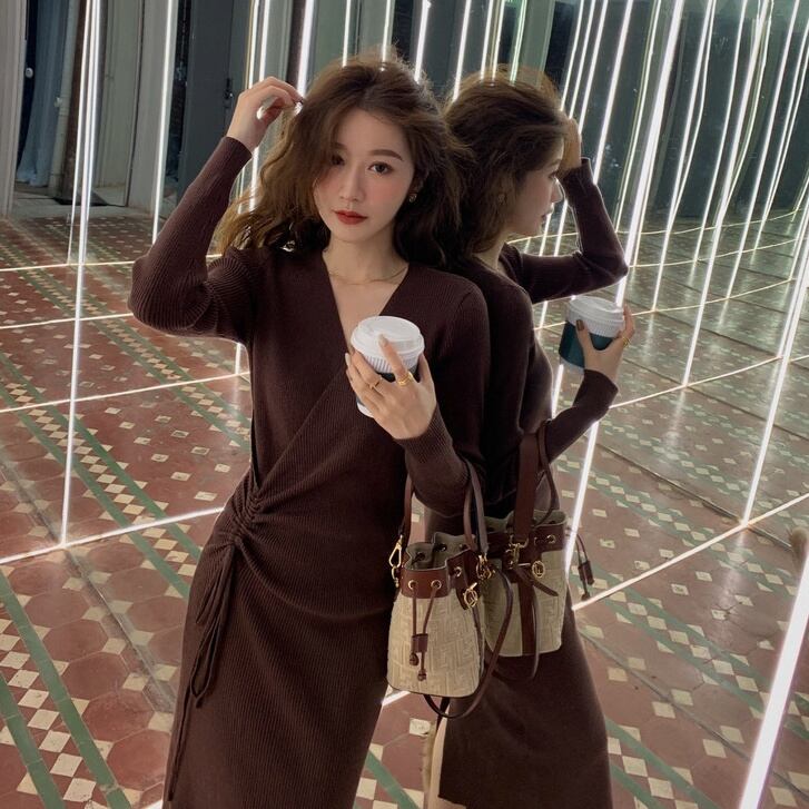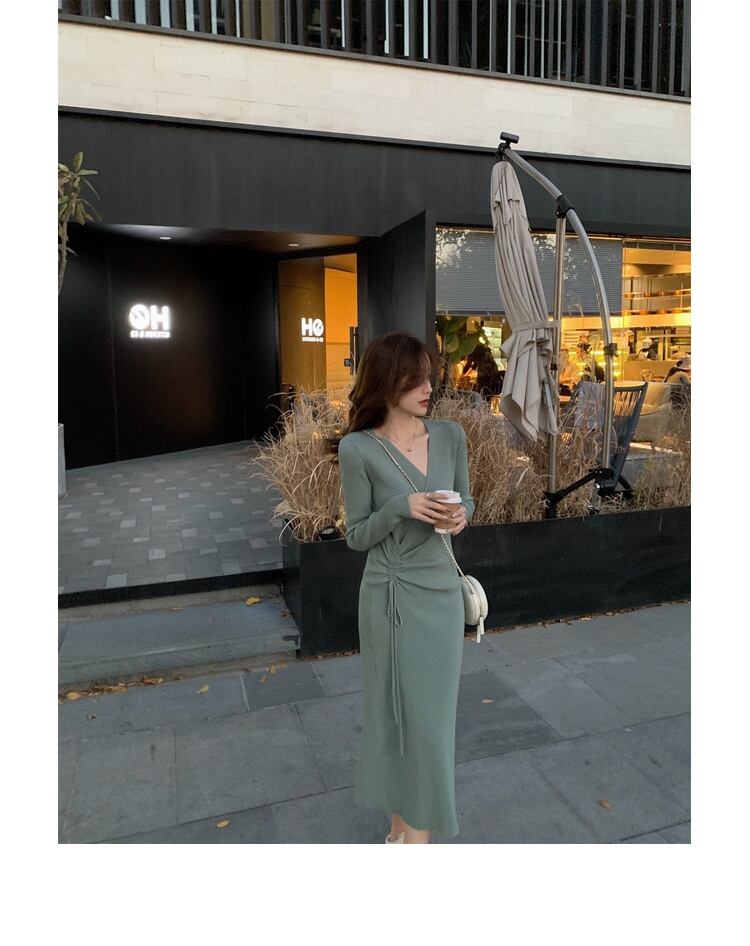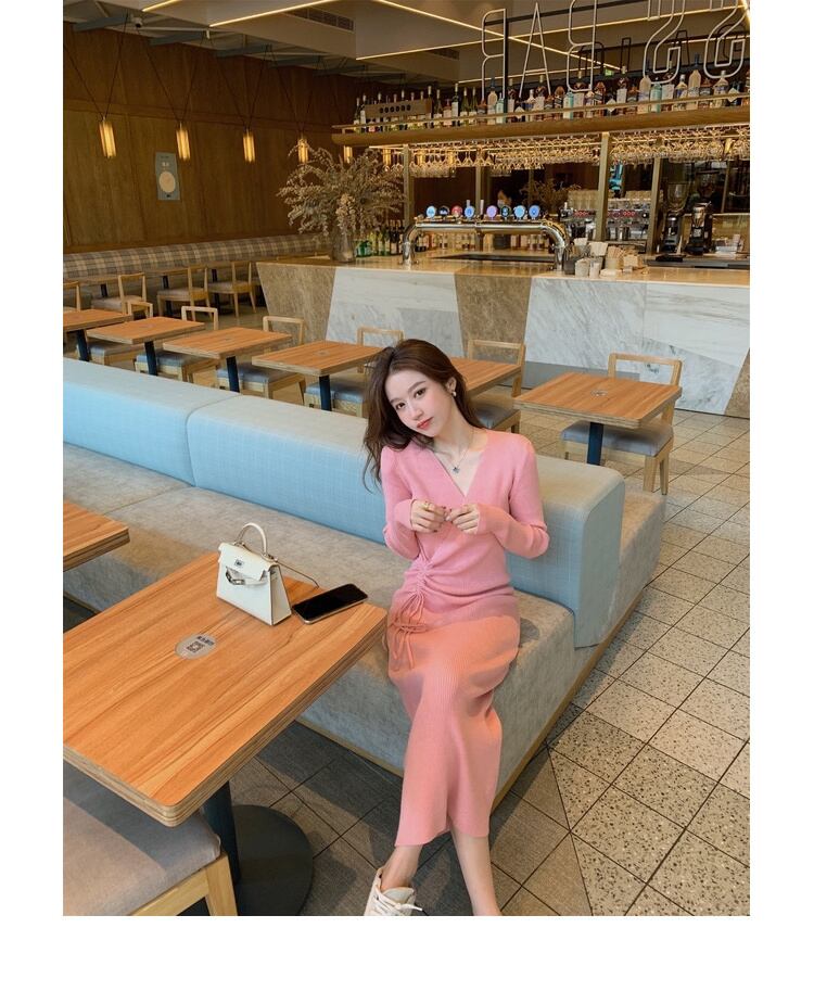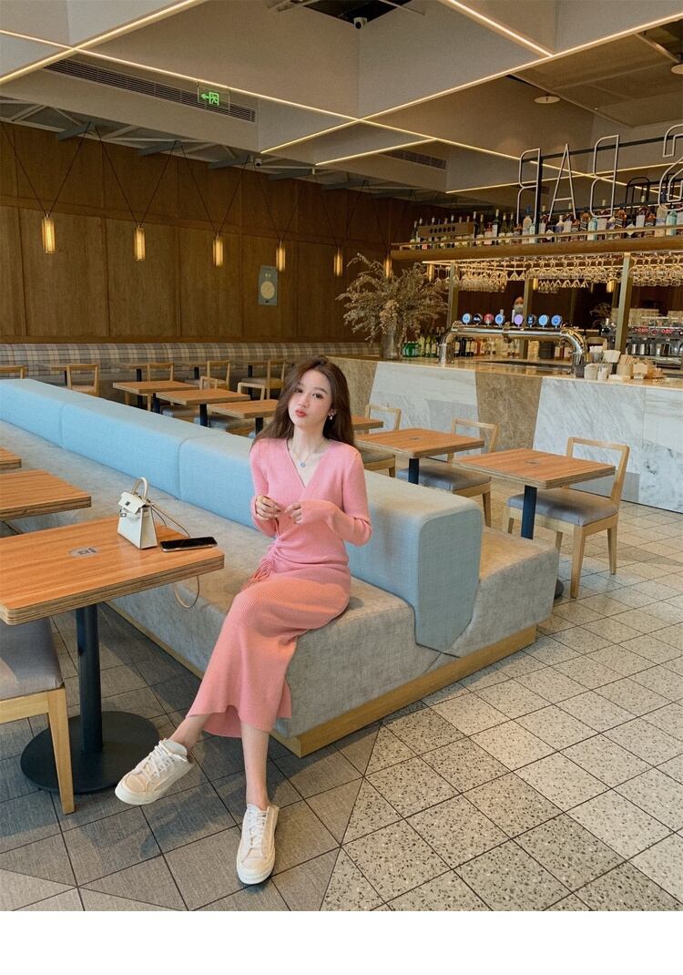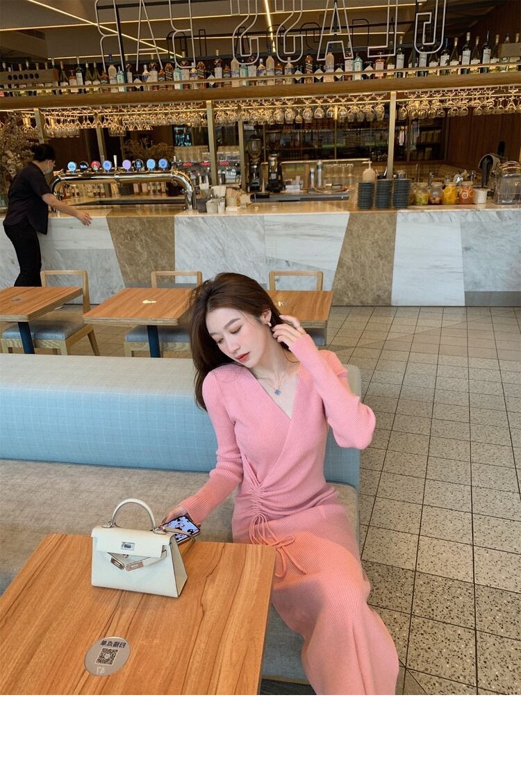 【dress】好感度UP!気質満点デザインフランス風シンプルVネックニットワンピース G2822