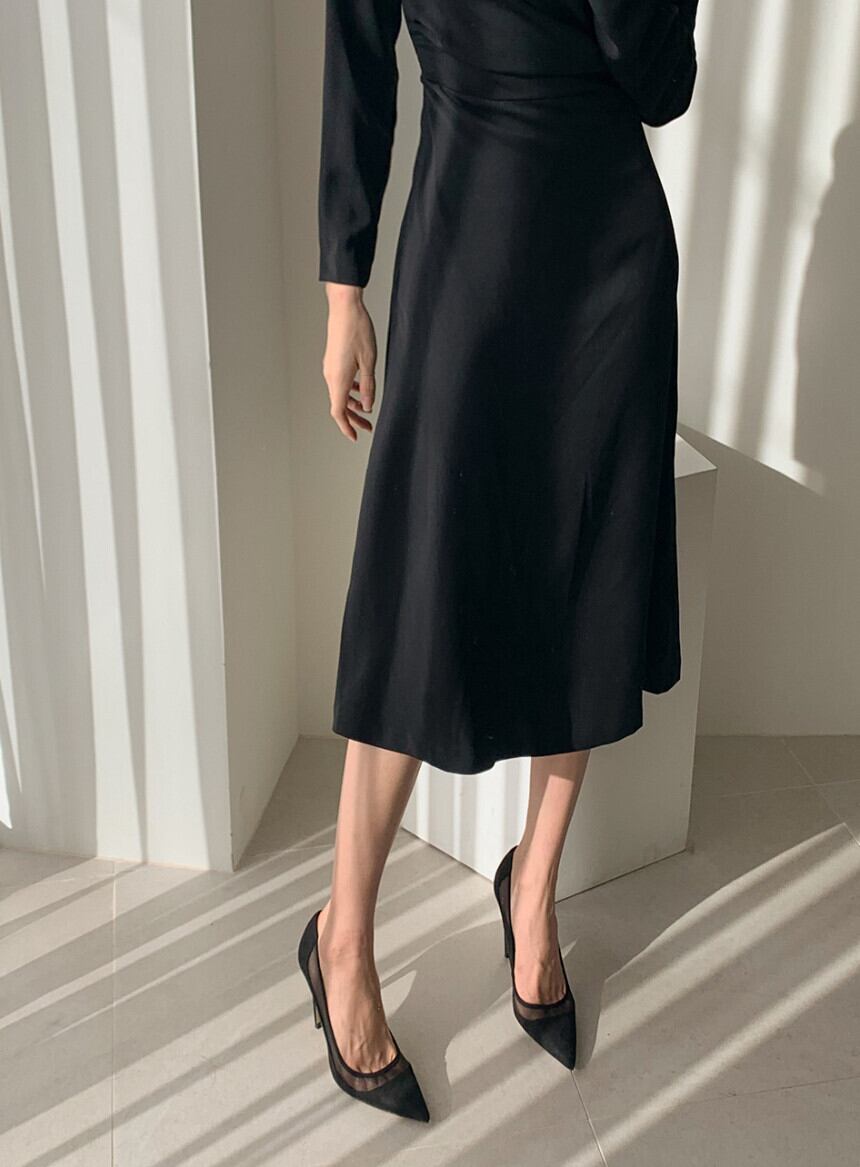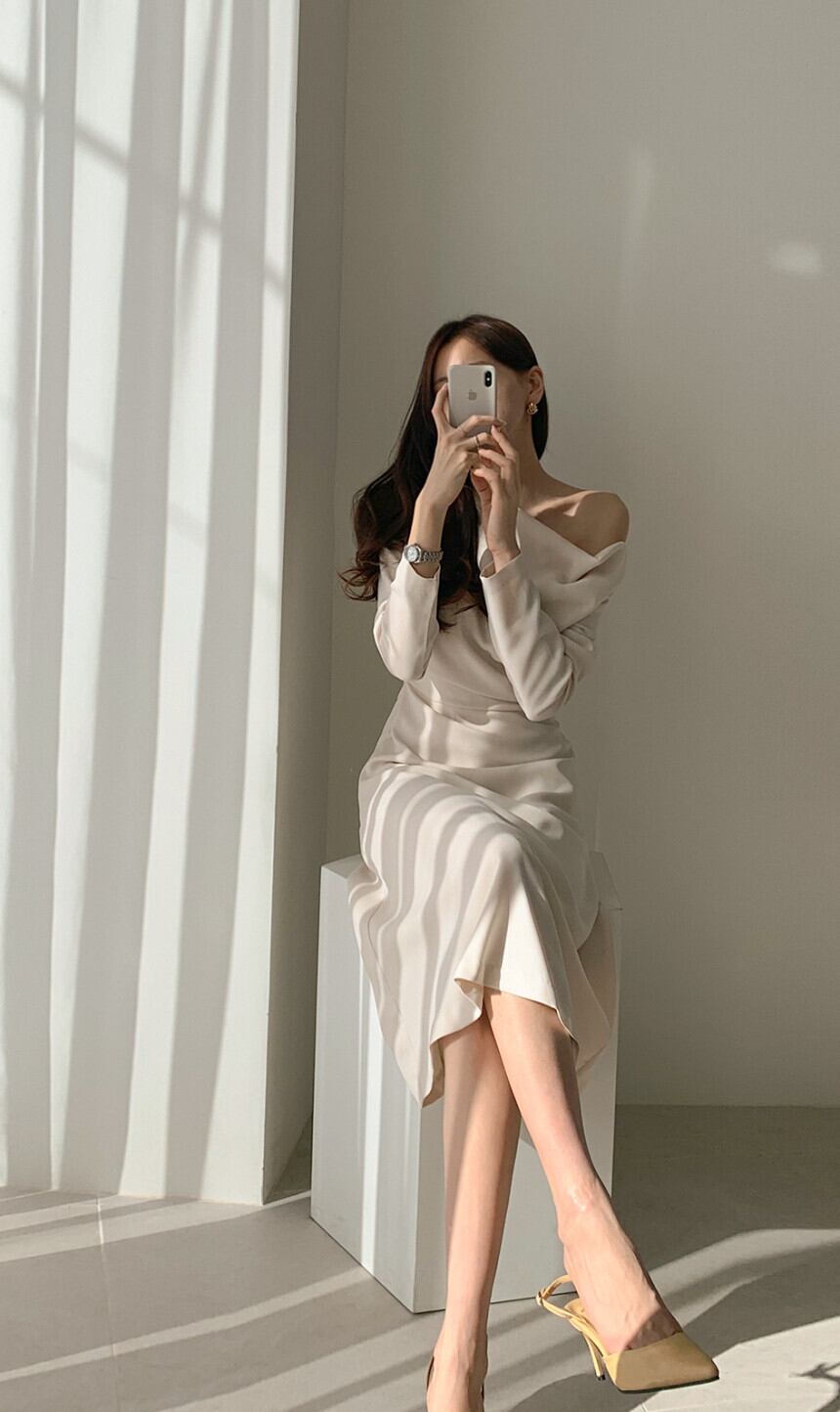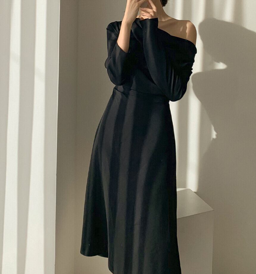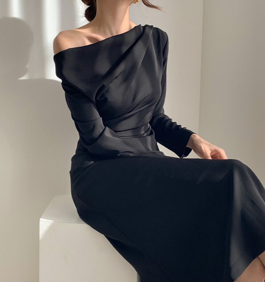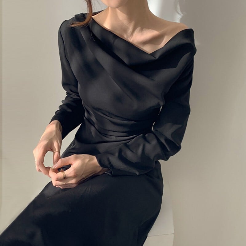 【dress】エレガント気質満点シンプル不規則着痩せハイウエスト長袖ワンピース G2964