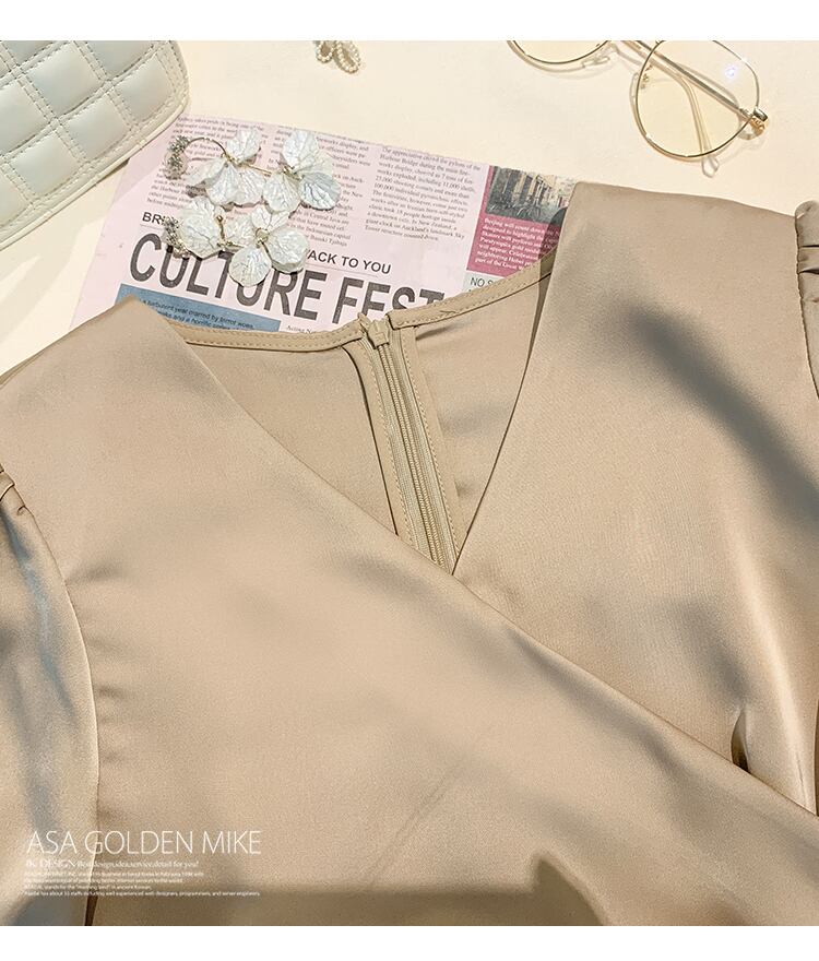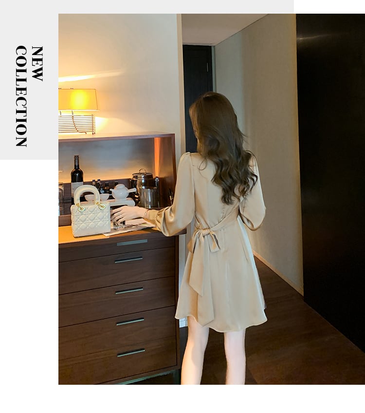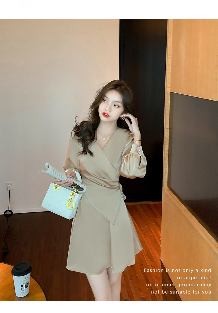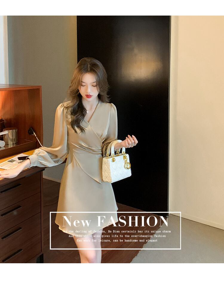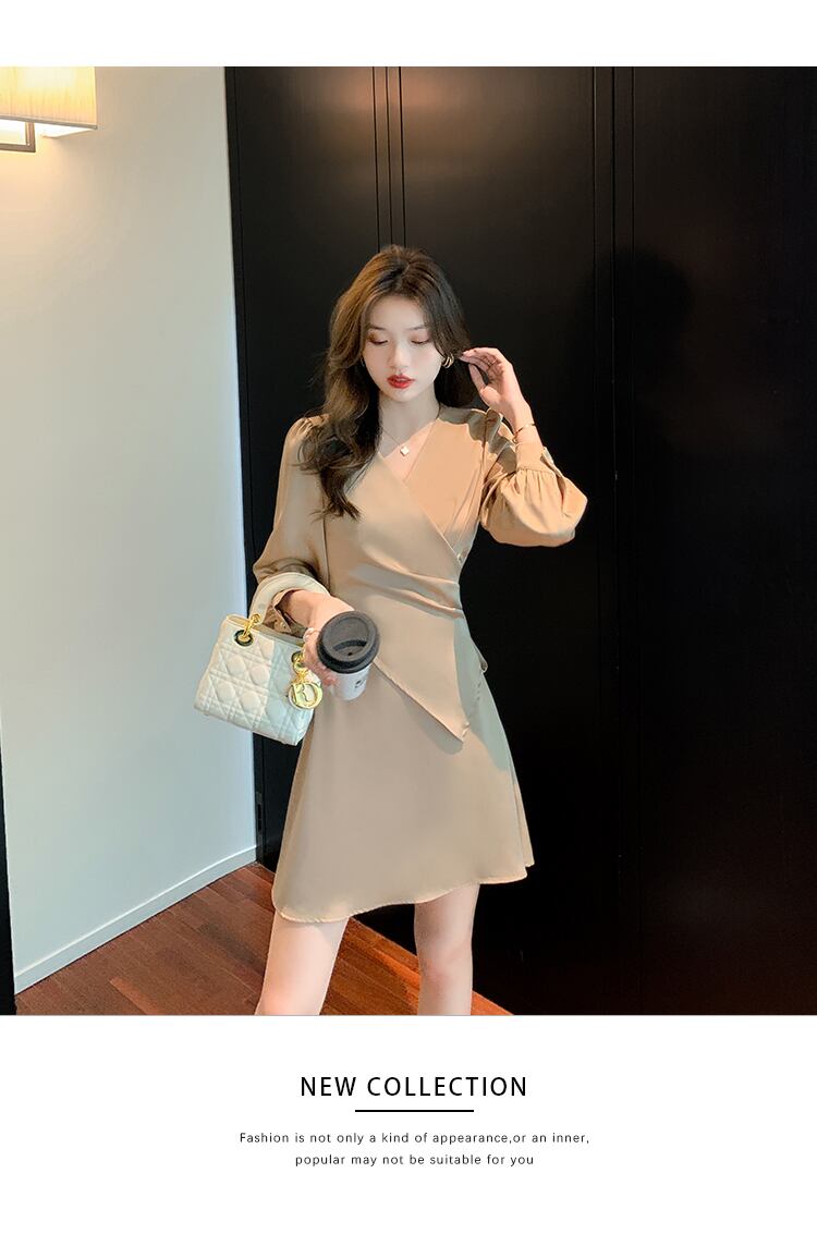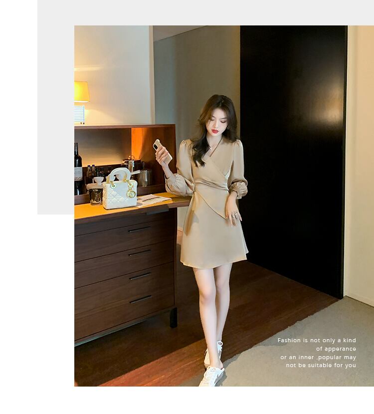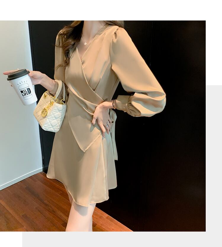 【dress】高級感!気質満点女性力を高める〜着痩せ長袖フランス風ワンピース G3466
