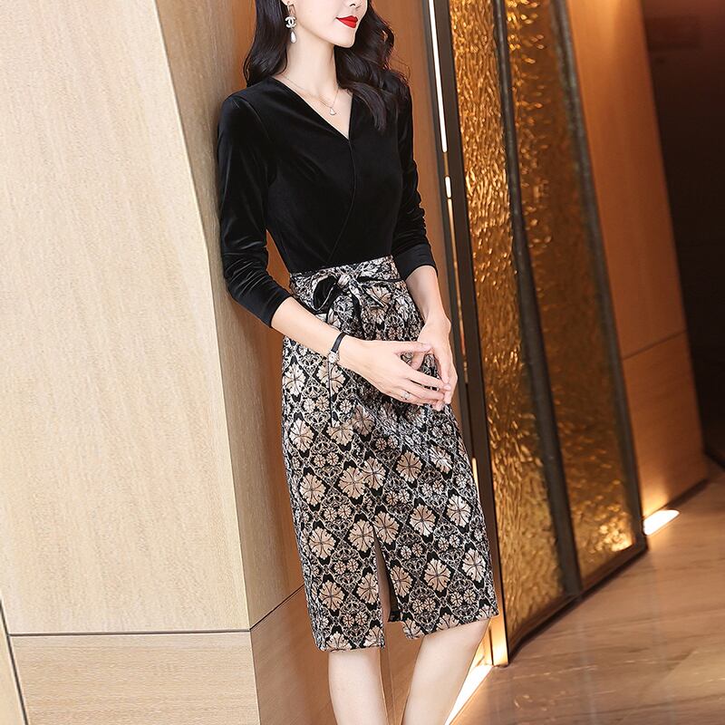 【dress】高級感フランス風好感度UP!気質満点レトロ高品質偽二つ切り替えワンピース G4799
