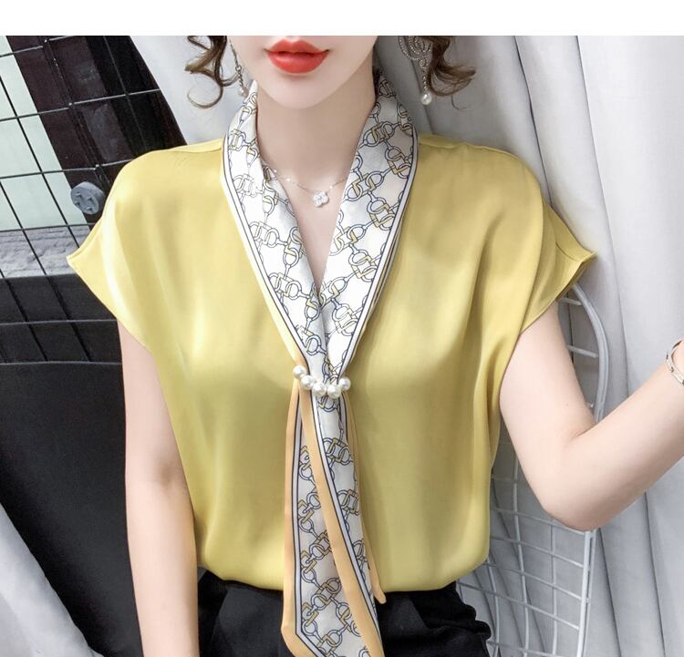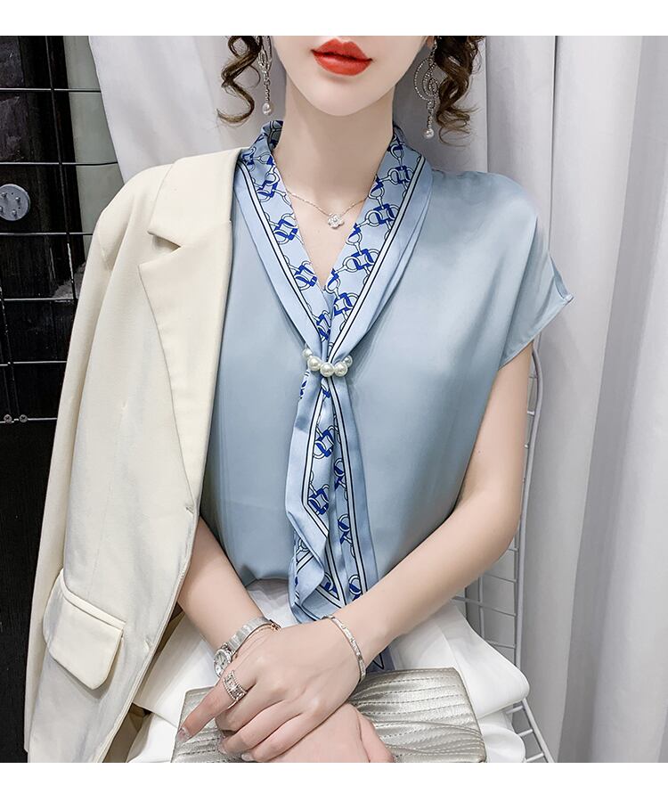 【tops】エレガント フランス風 上品なシルエットスウィートノースリーブシフォンシャツ G6716