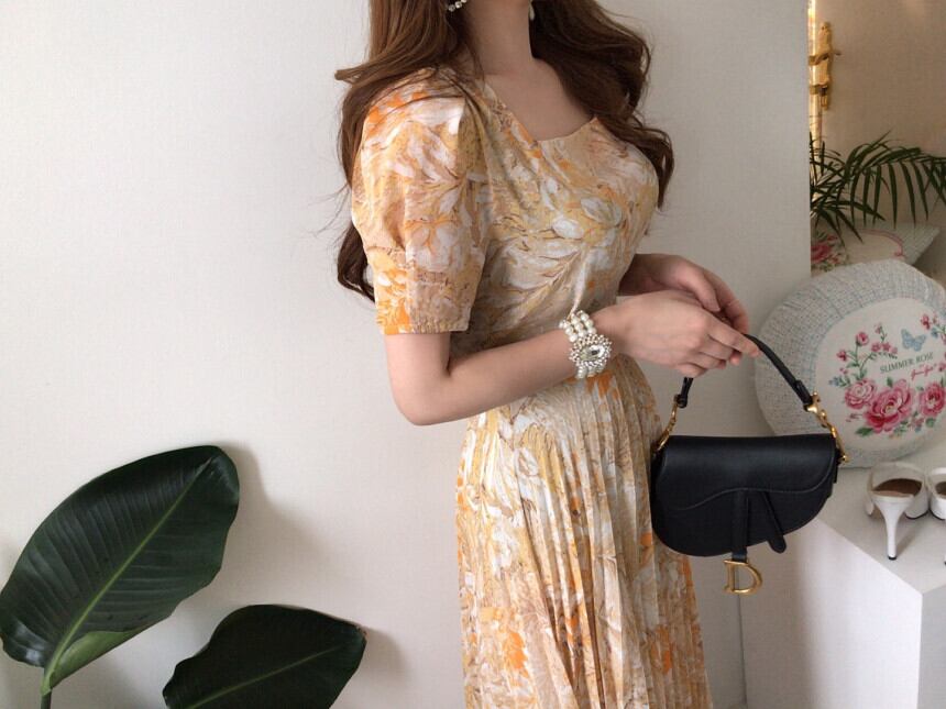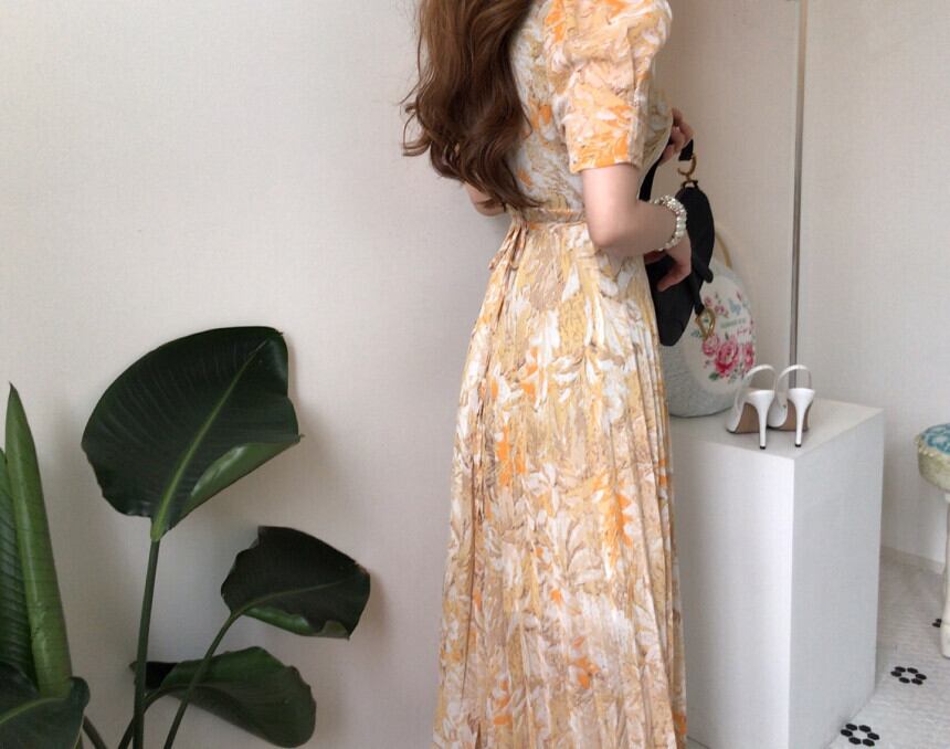 【dress】エレガント!気質満点レトロ韓流スタイルスクエアネックワンピース G6762