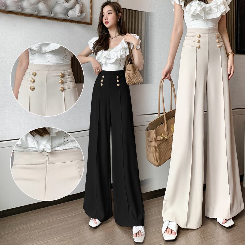 【bottoms】好感度UP!気質満点レトロレディースハイウエスト着痩せスーツガウチョパンツ G6825