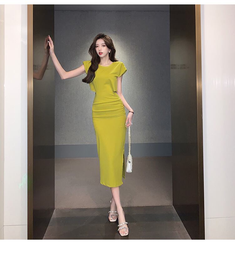 【dress】人気を獲得フランス風気質満点デザイン透かし彫り着痩せスリットタイトワンピース G8676