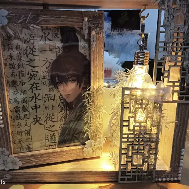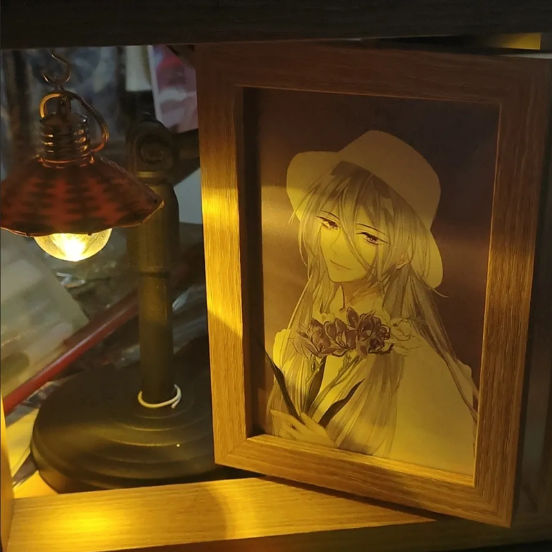 【GOODS】木製 フォトフレーム KGサイズ収納 回転式 ライト付き Q2487