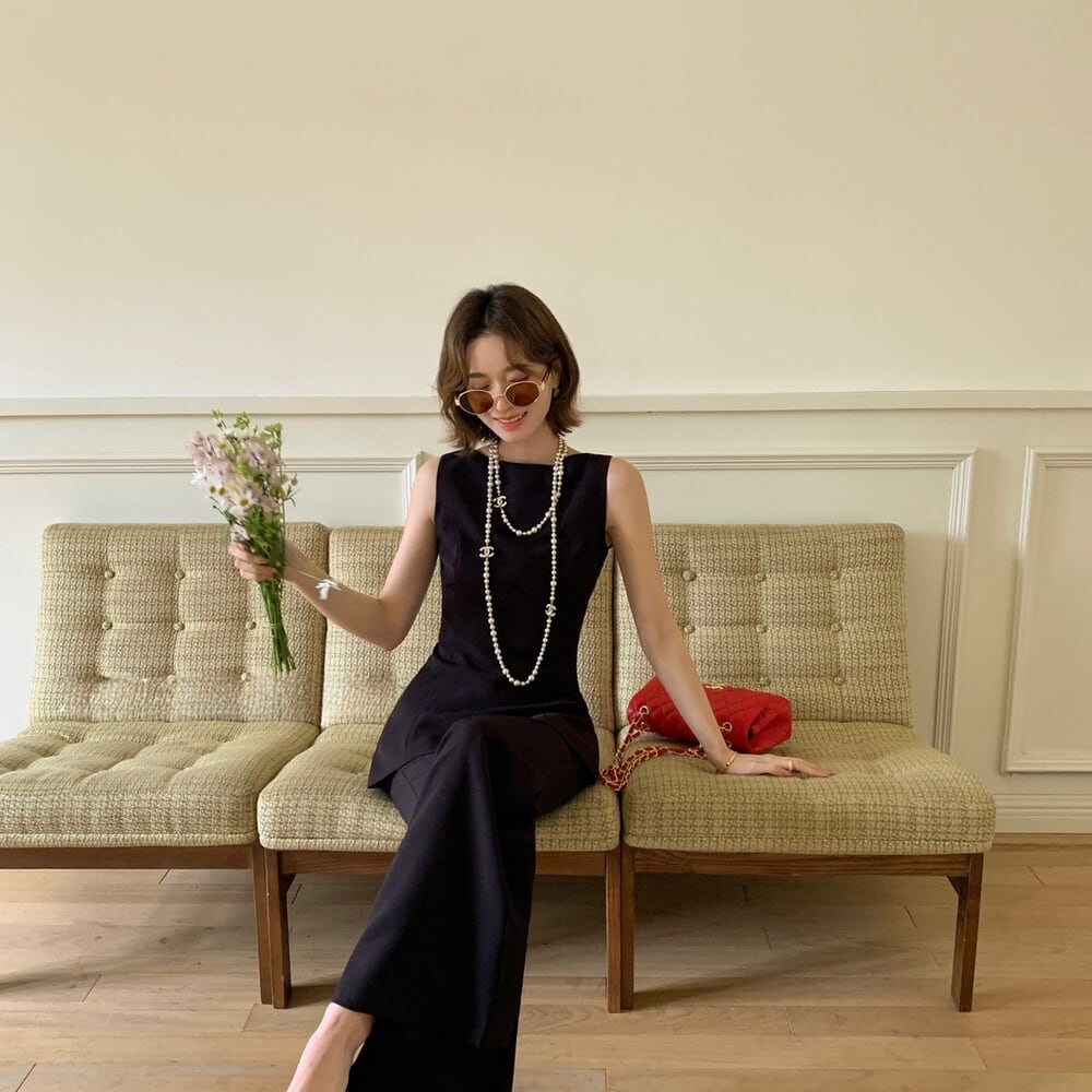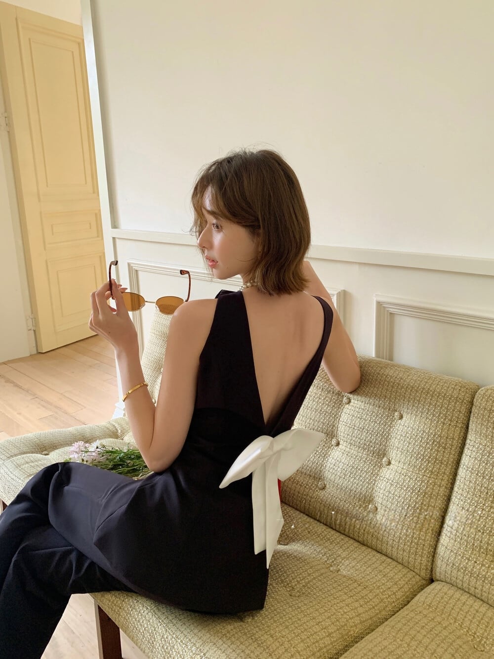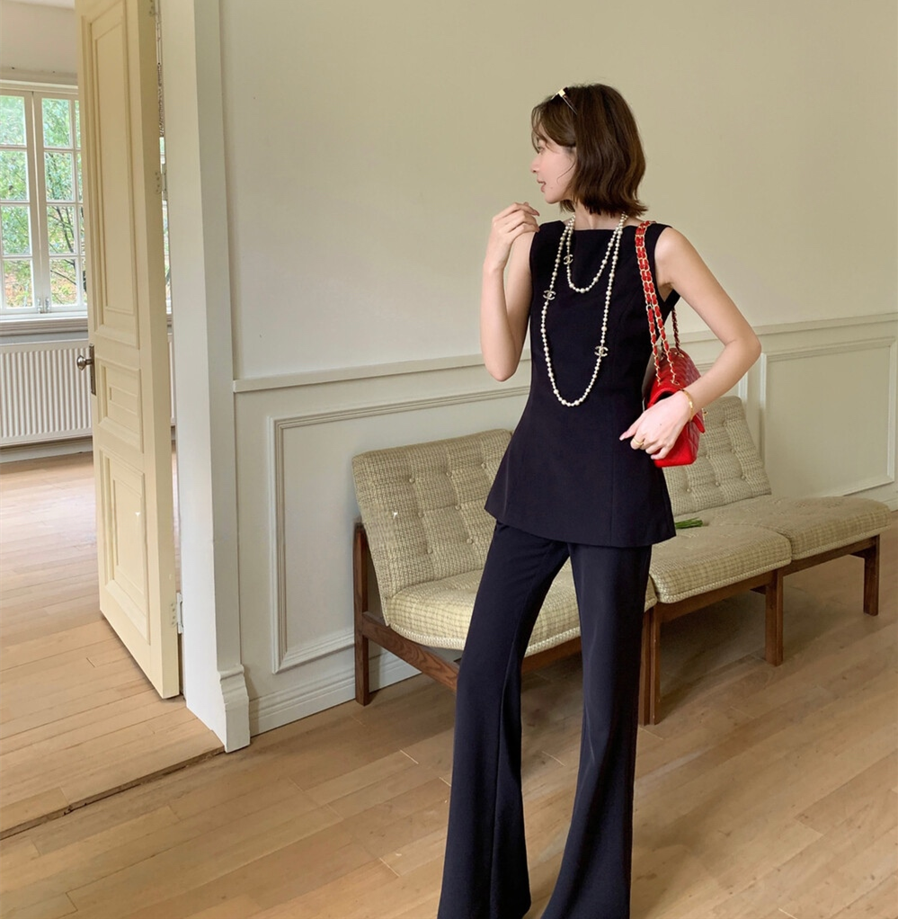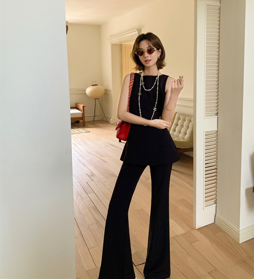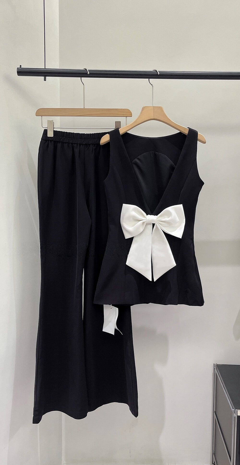 【set】バックリボンノースリーブトップス×フレアパンツセット N3572