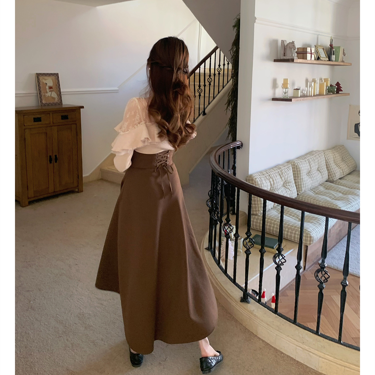 【set】レースフリルニットトップス×ロングスカートセット N3477