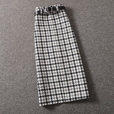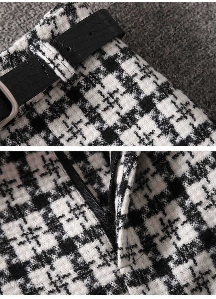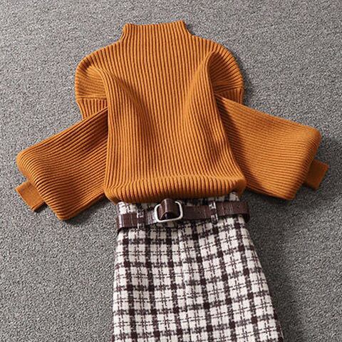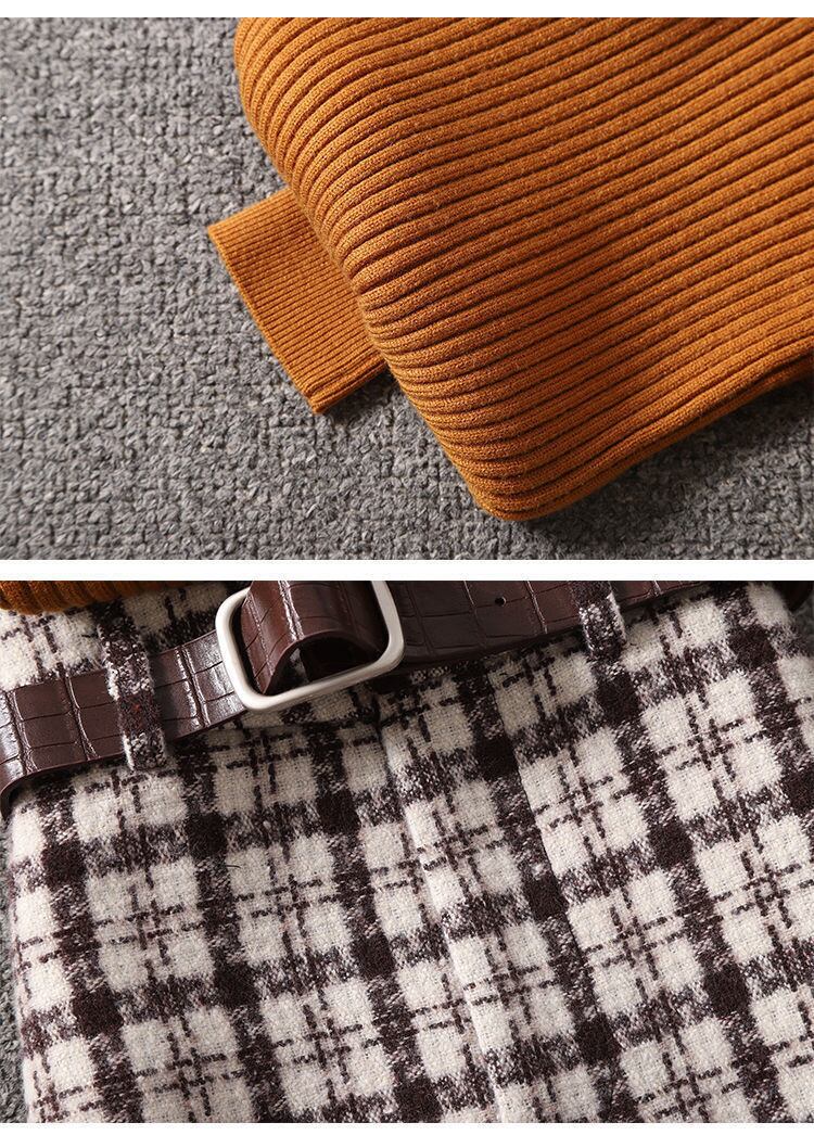 【set】店長推薦セットアップ無地長袖セーター+チェック柄スカート通勤日常秋新作2点セットF0818