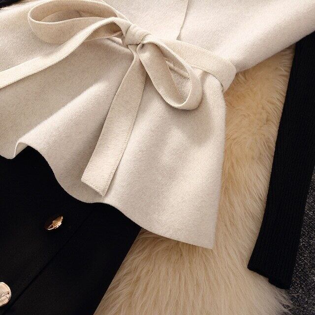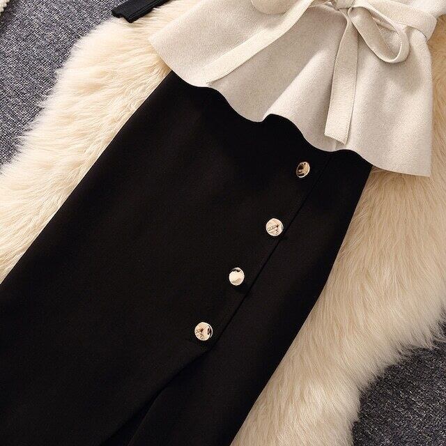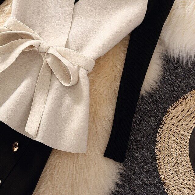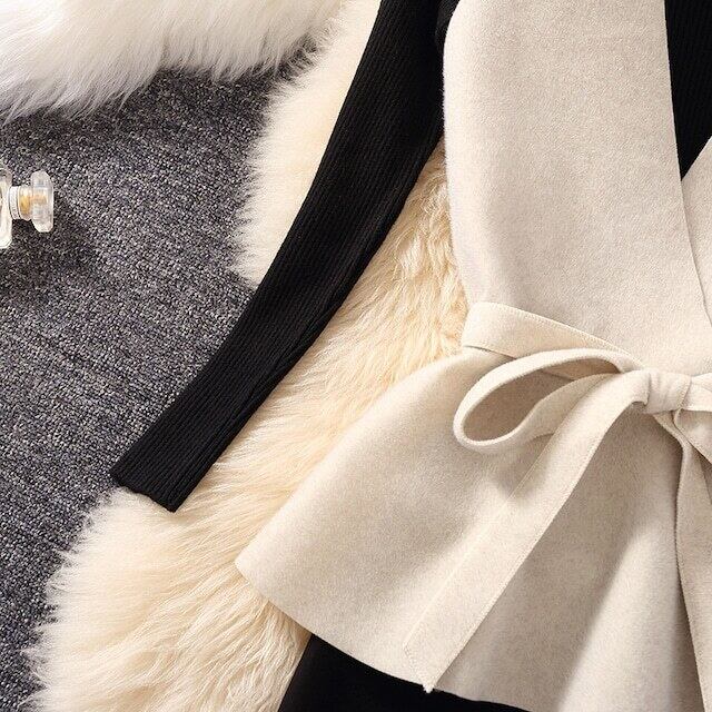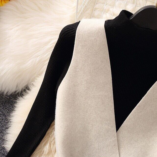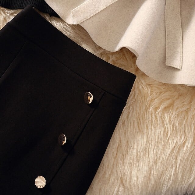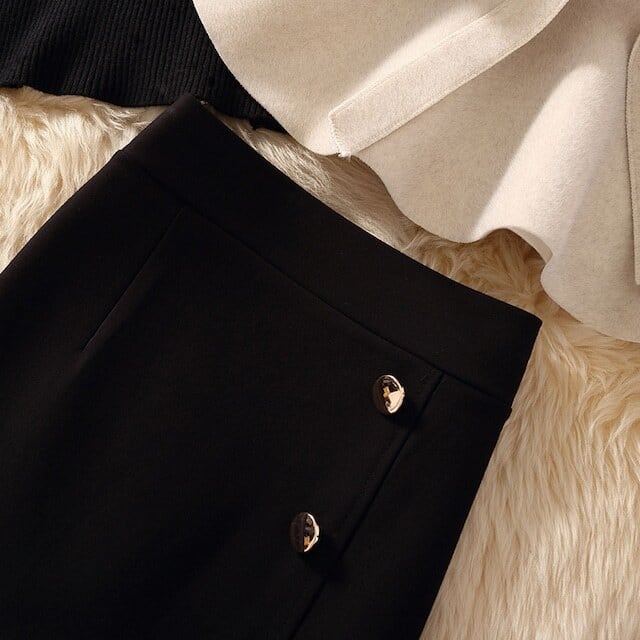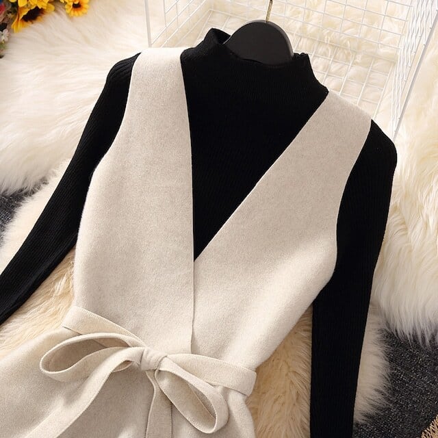 【set】好感度満載!秋冬新作Vネックベスト+無地セーター+美シルエットスカート通勤日常3点セットF1295