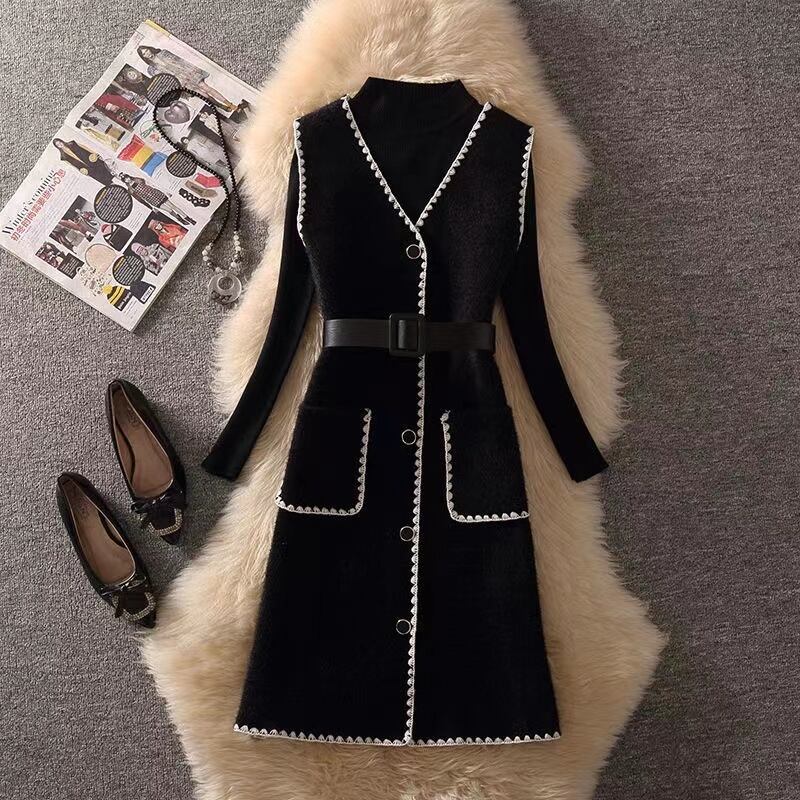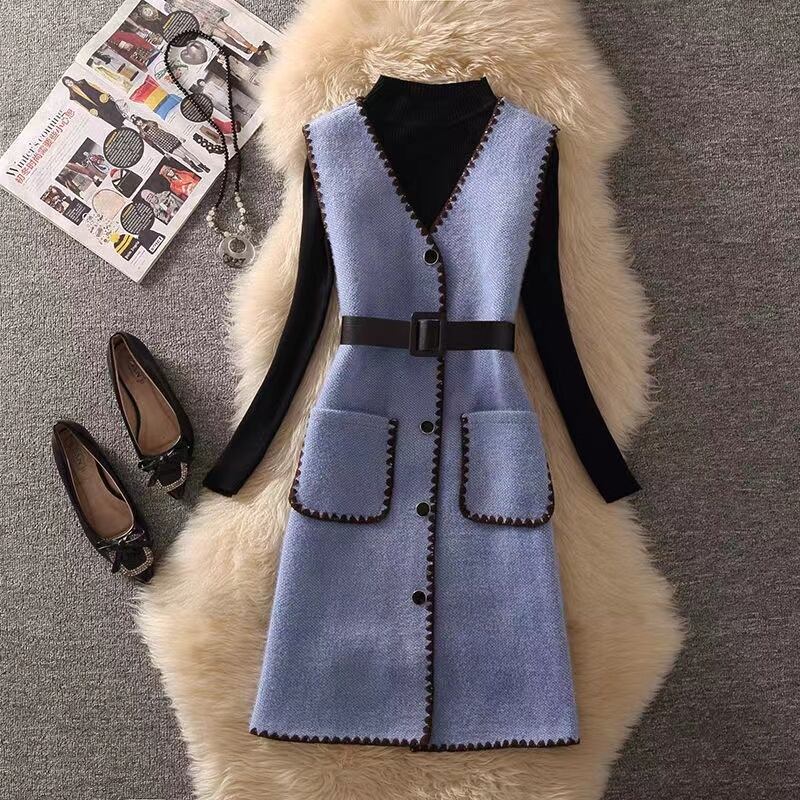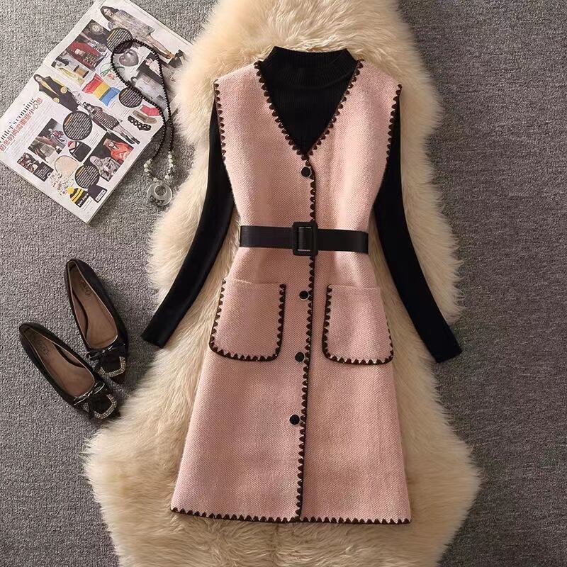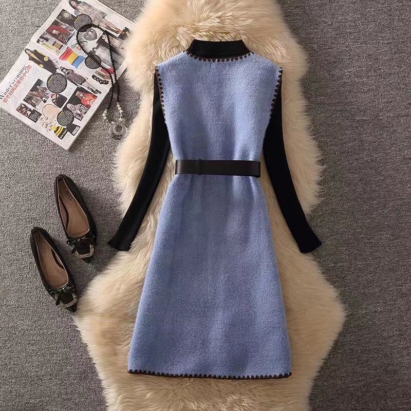 【set】今季大好評秋冬新作着回し無地セーター+美シルエットワンピース通勤日常2点セットF1296