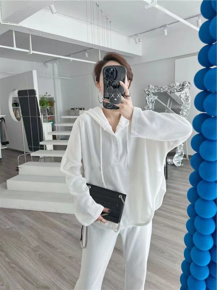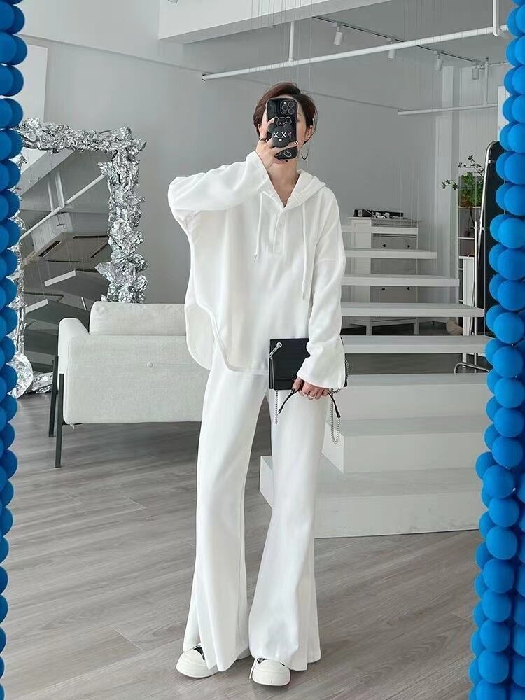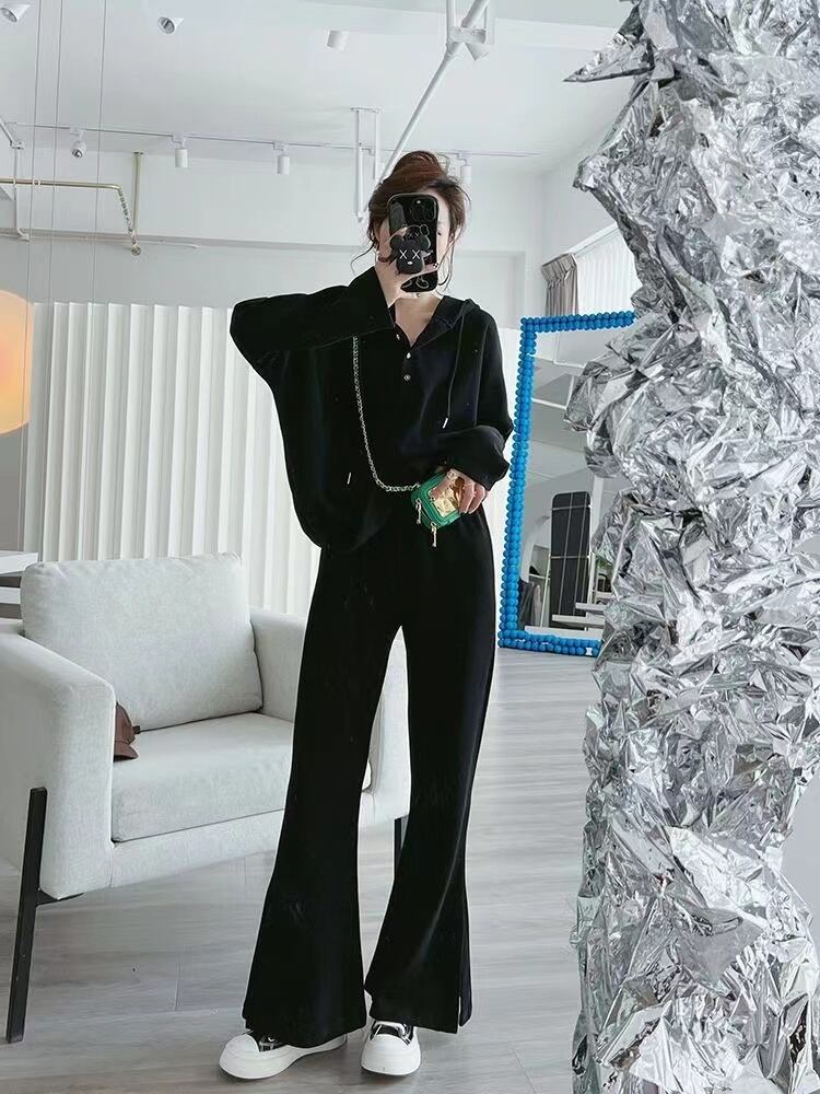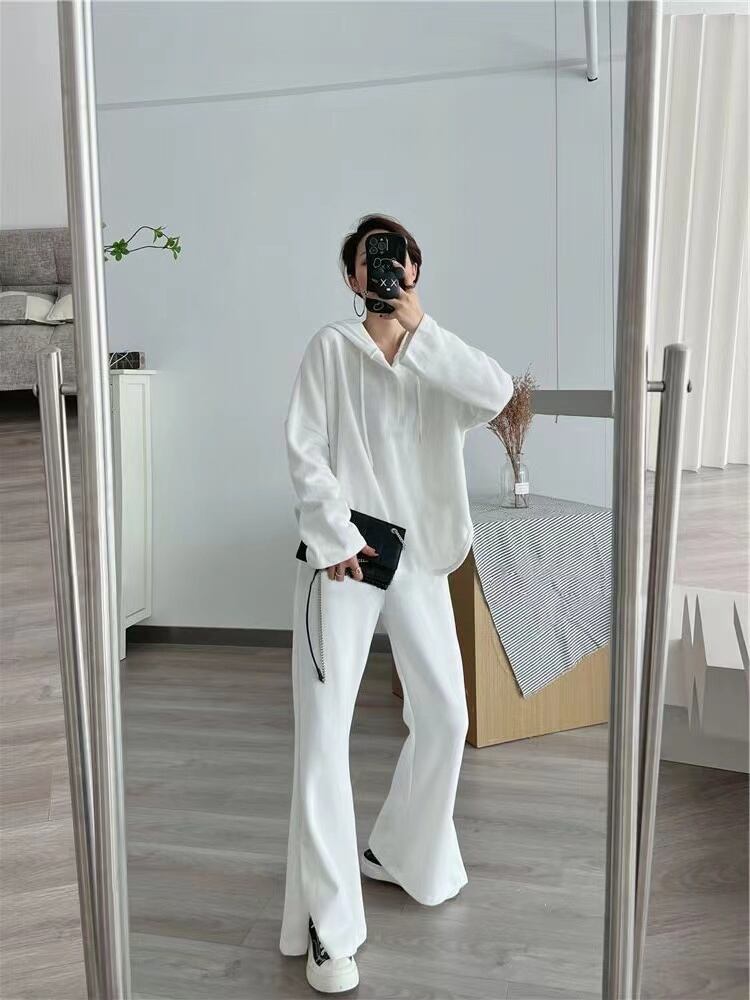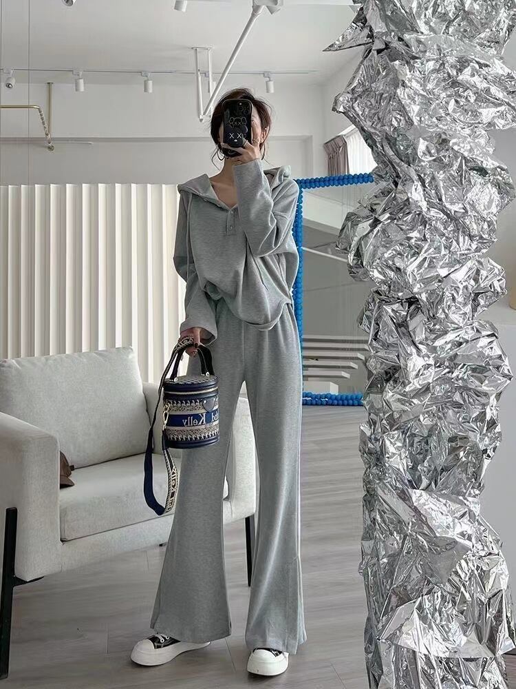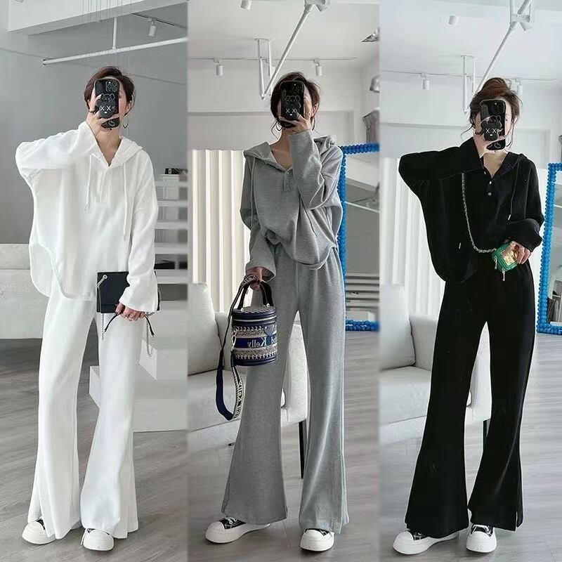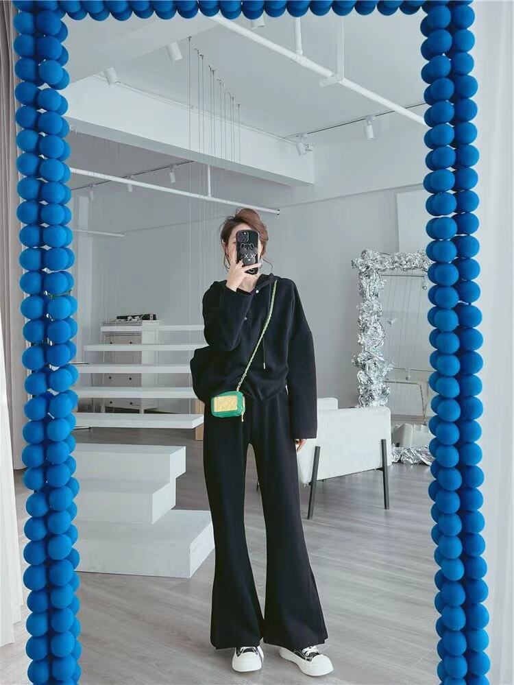 【set】好感度満載!3色ゆったり長袖パーカー+無地ガウチョパンツ通勤日常セットアップF4785
