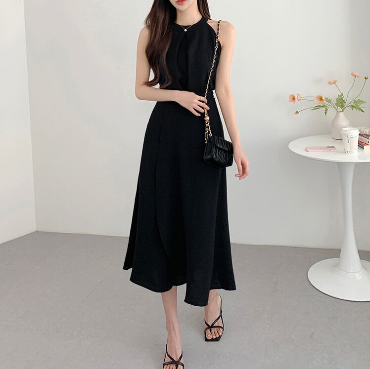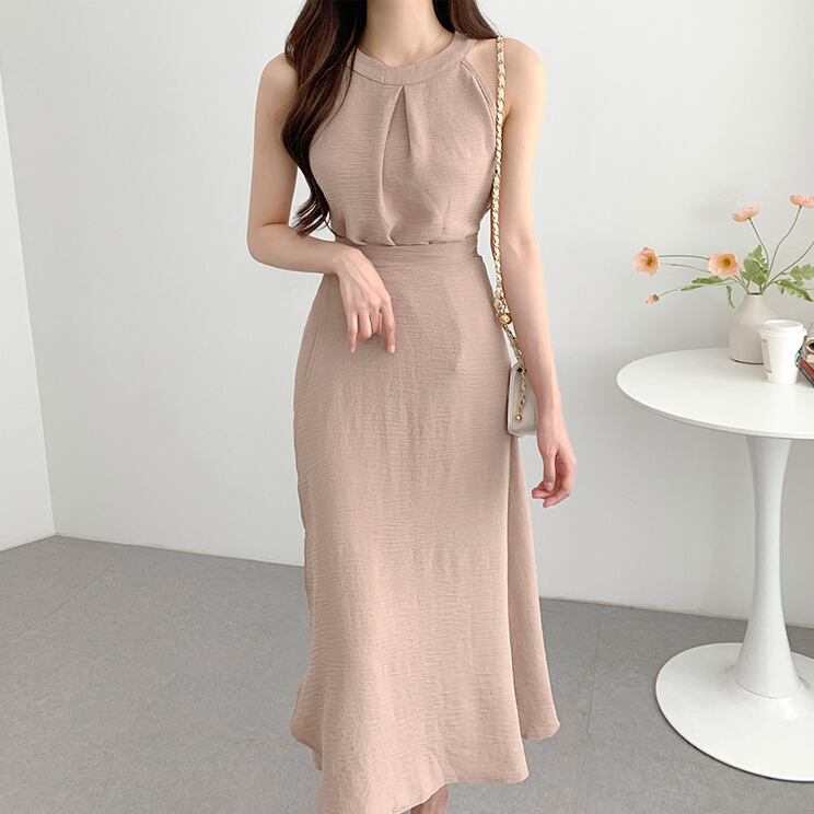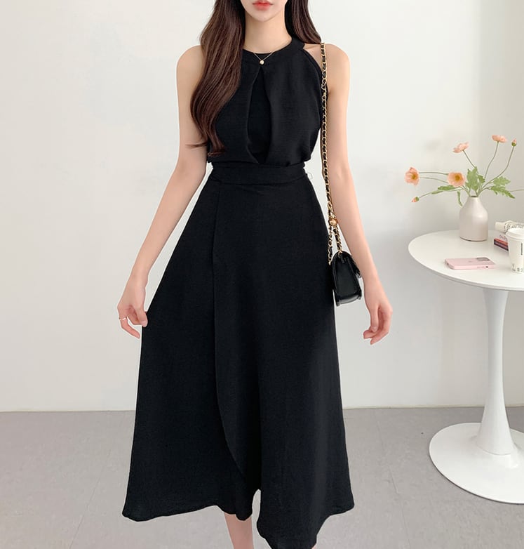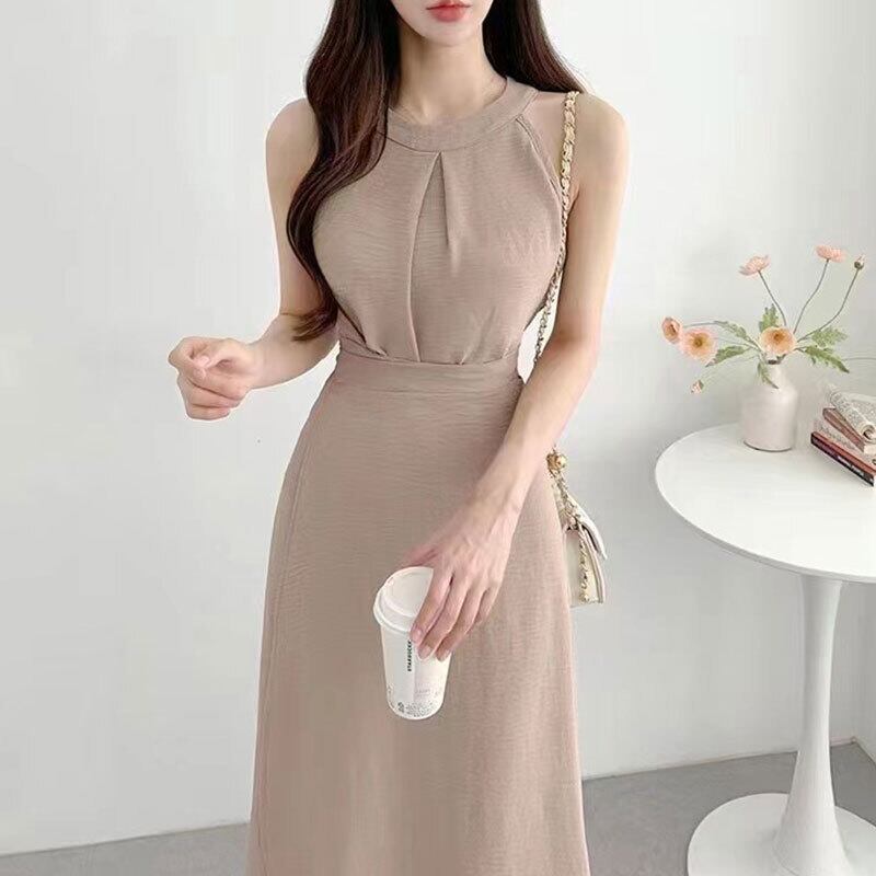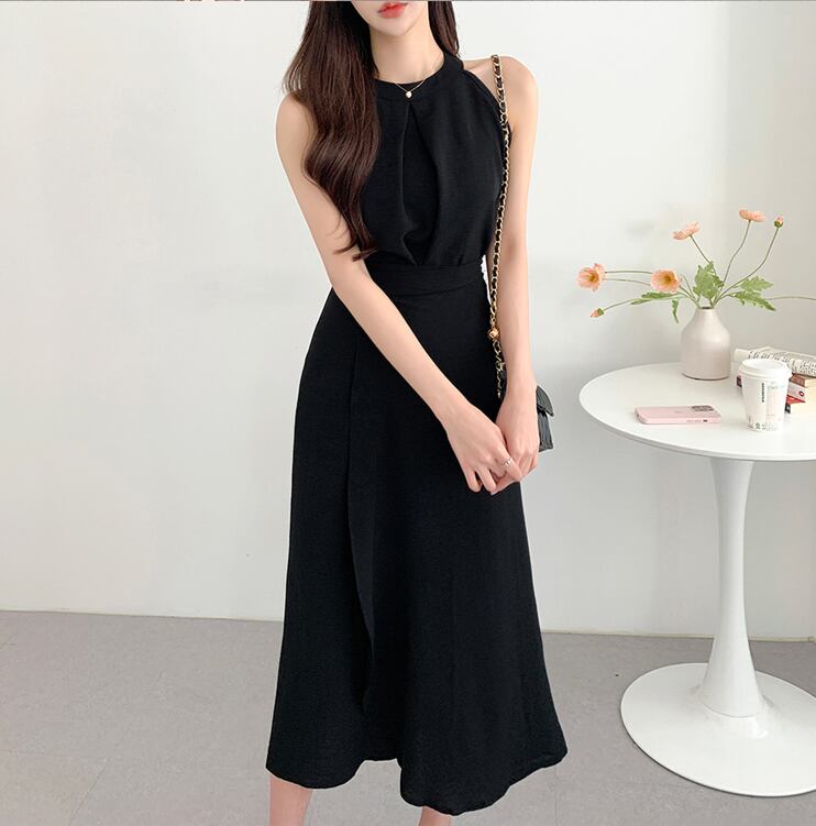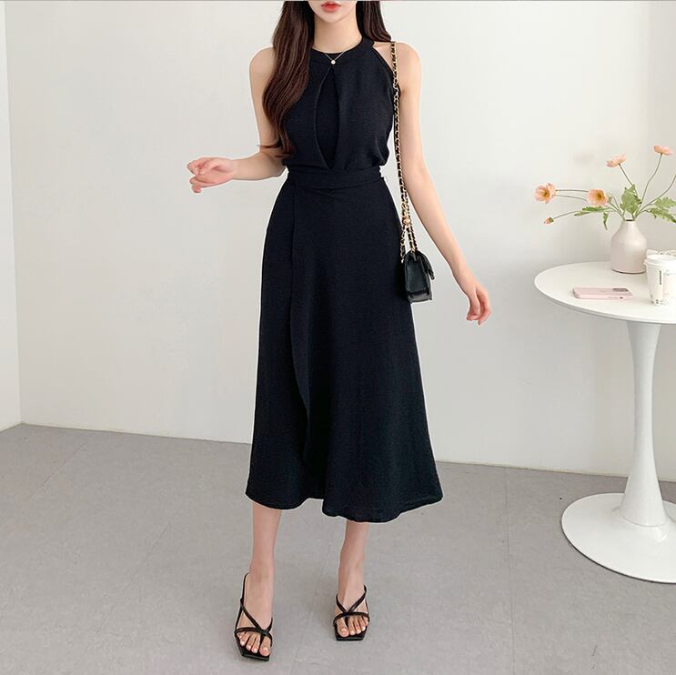 【set】ラウンドネック無地タンクトップ+スカート通勤日常セットアップF5158