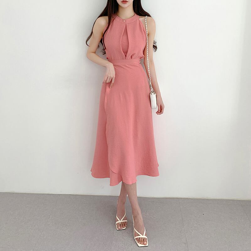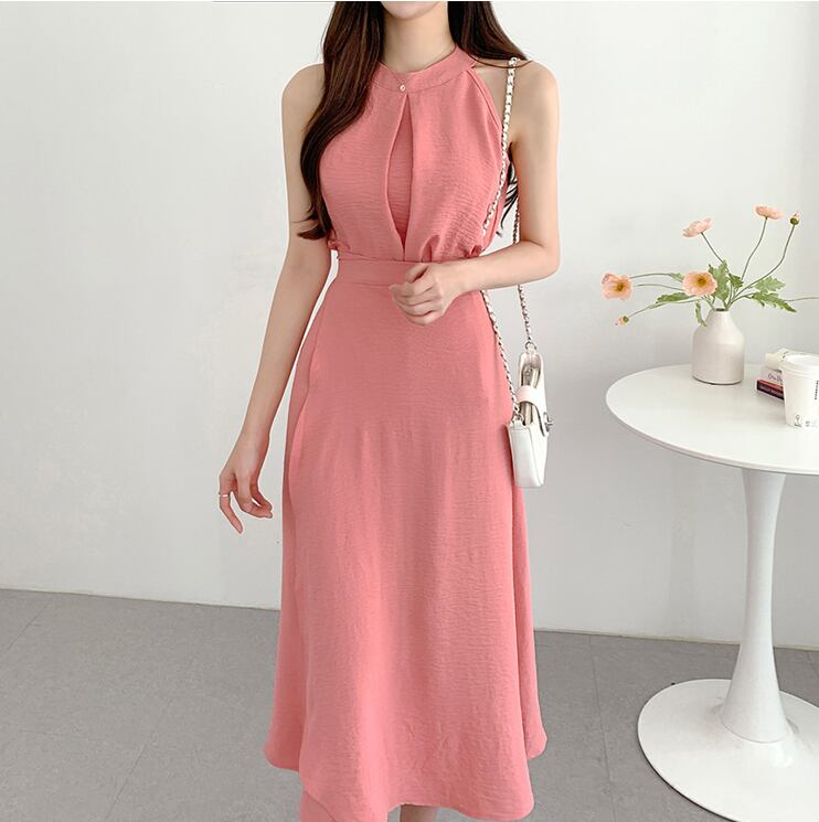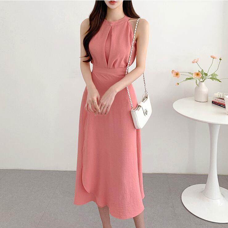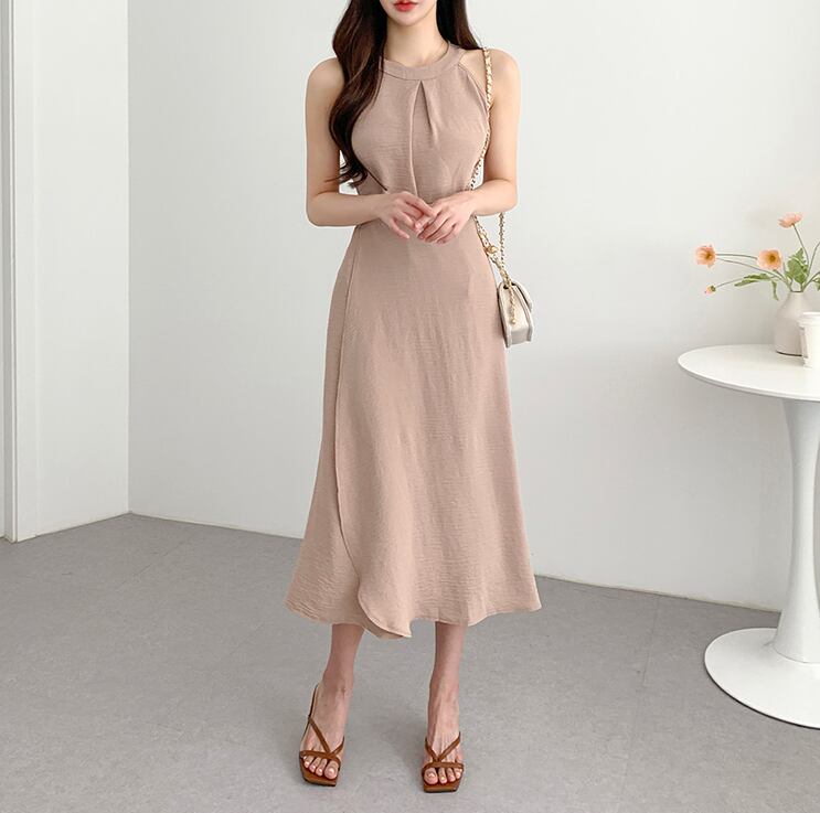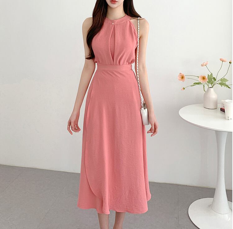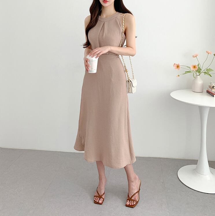 【set】ラウンドネック無地タンクトップ+スカート通勤日常セットアップF5158