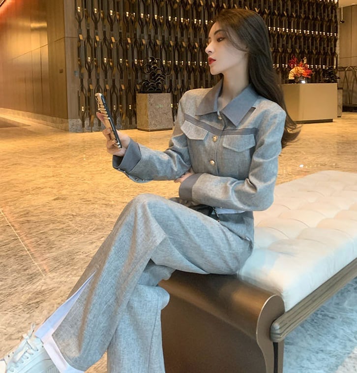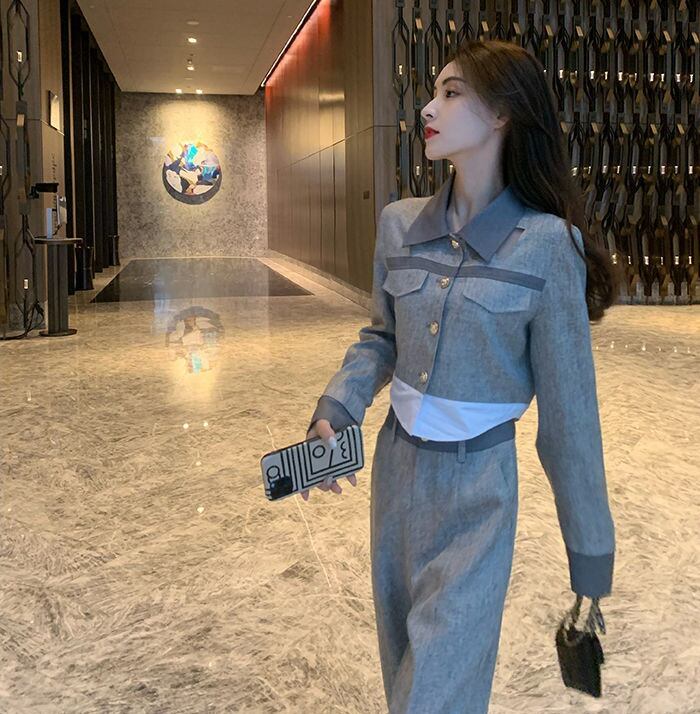 【set】偽二つ切り替えトップス+パンツセットアップF6077