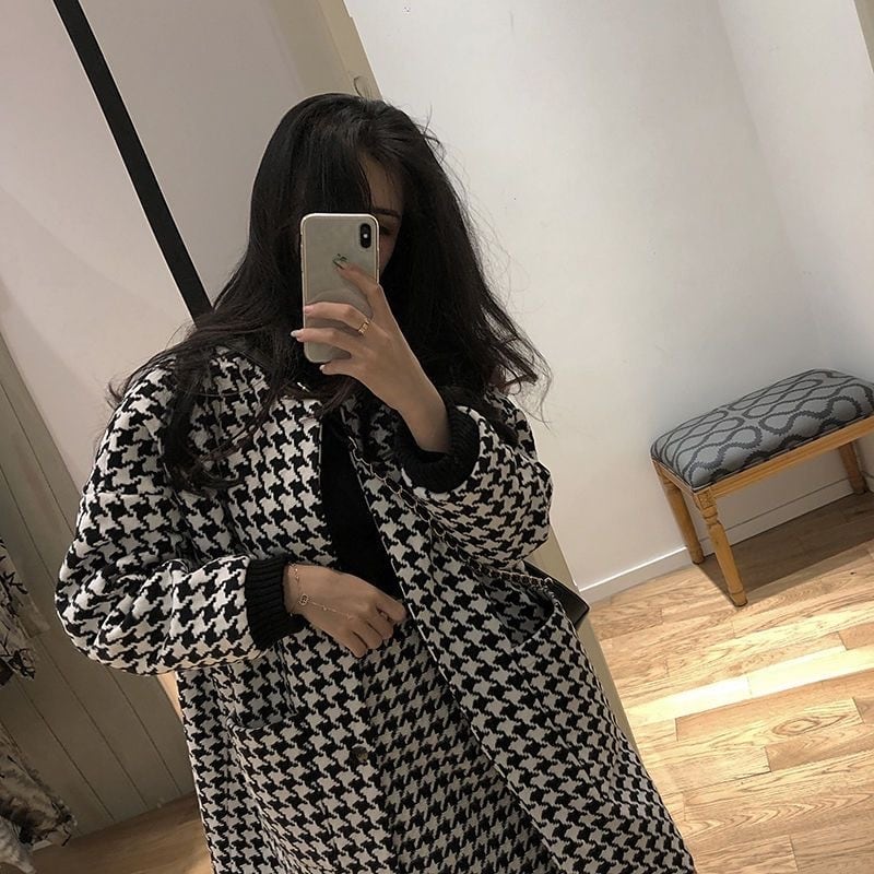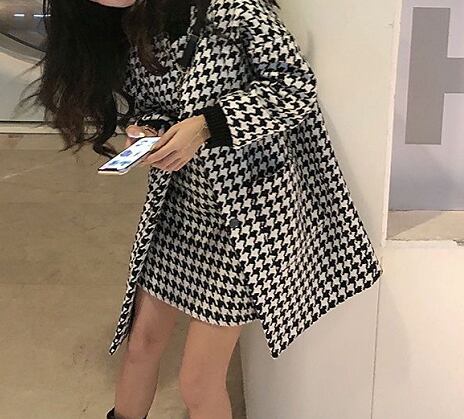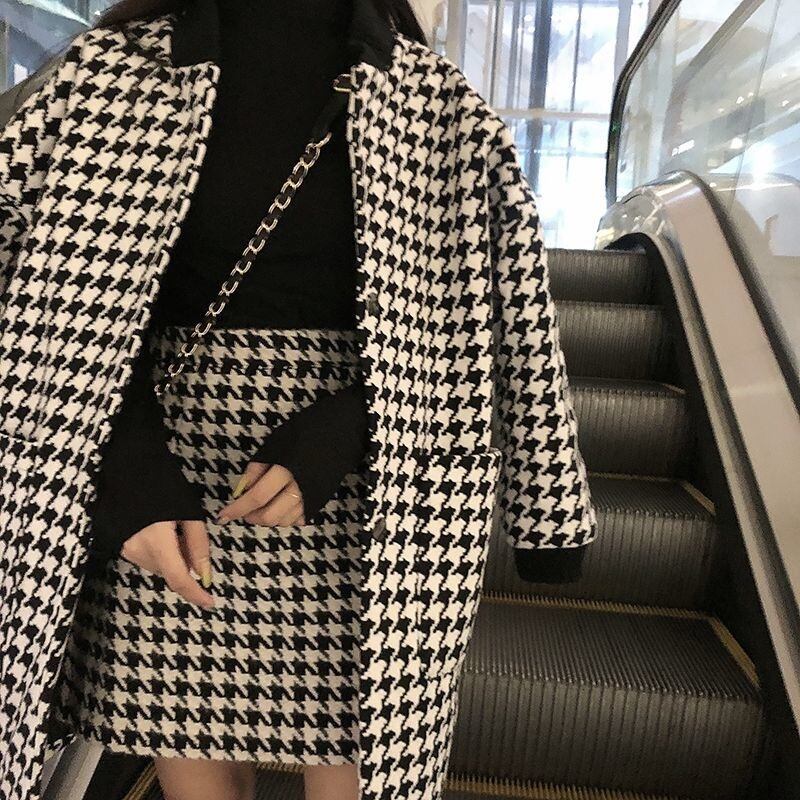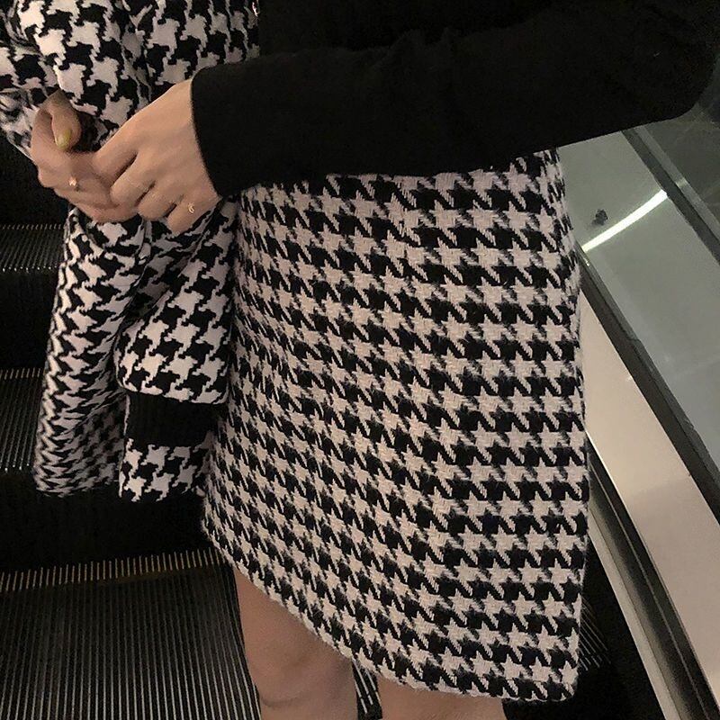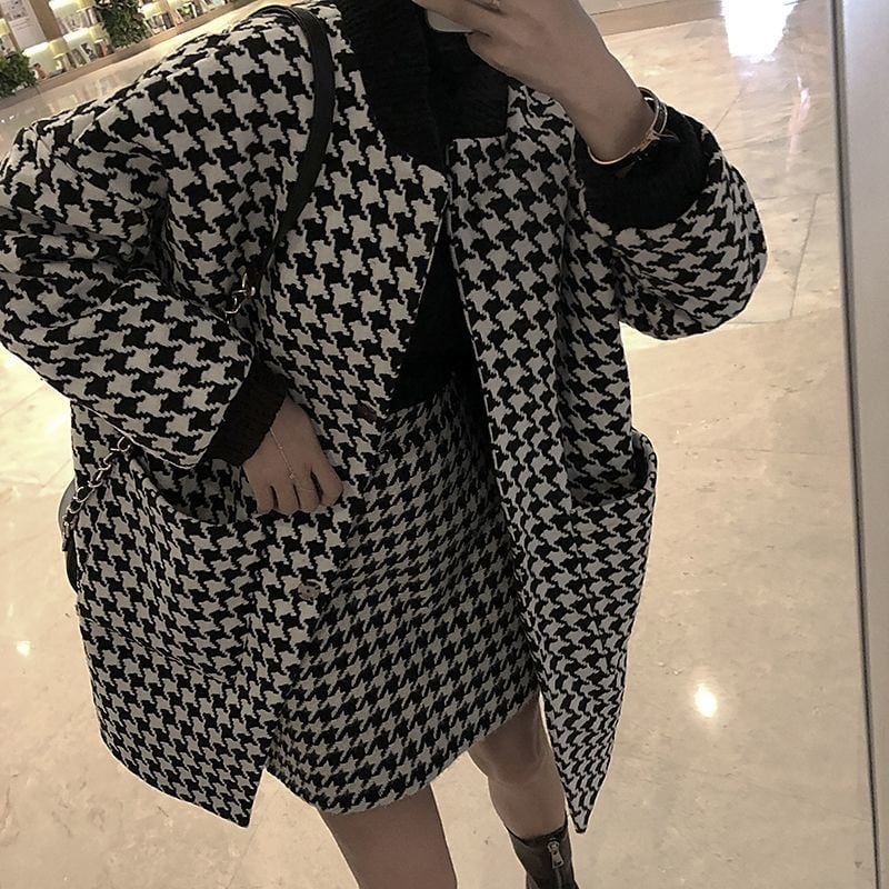 【set】ポケット付き千鳥柄コート+スカート2点セットF6391