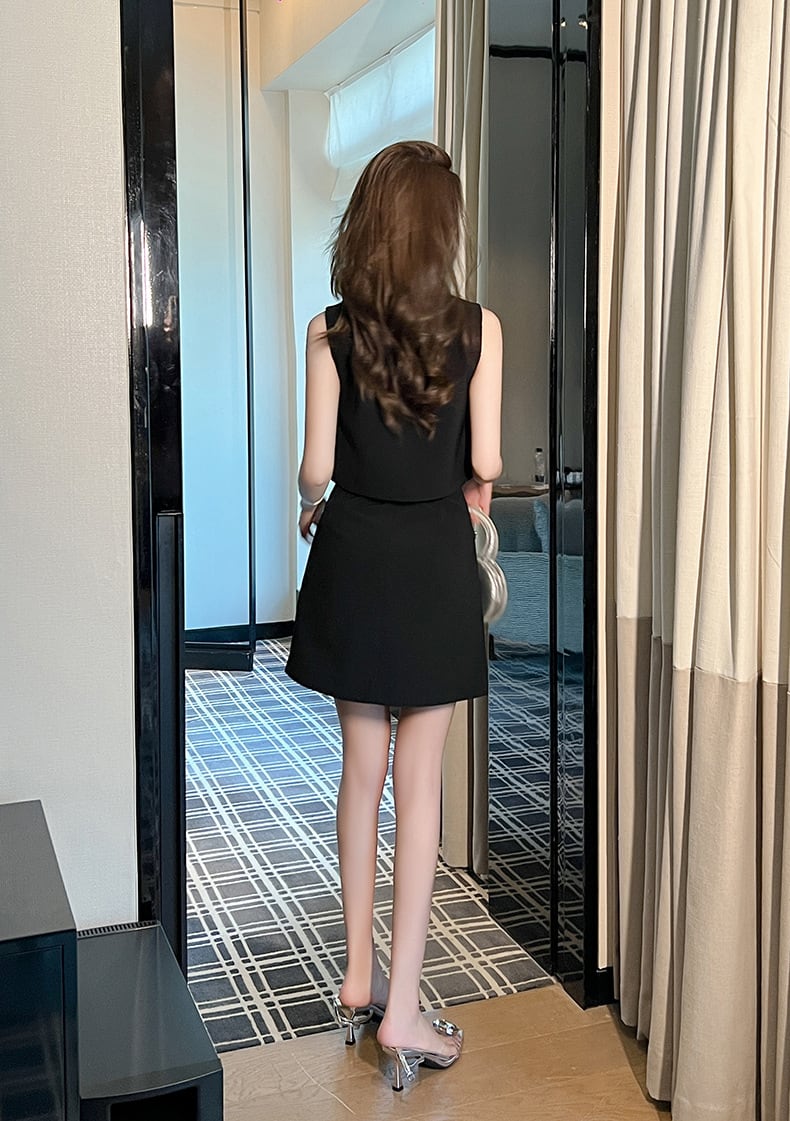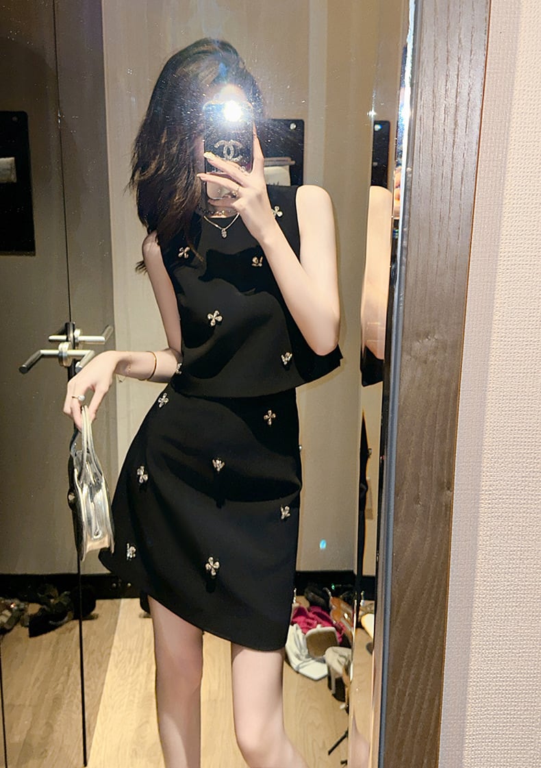 【set】ラウンドネックタンクトップ+スカート2点セットF7189