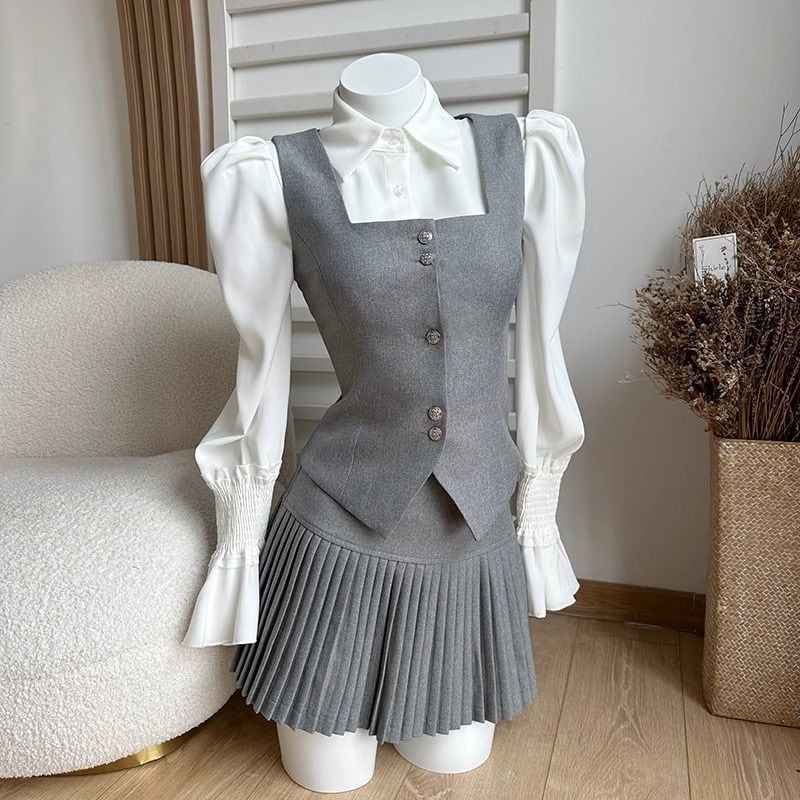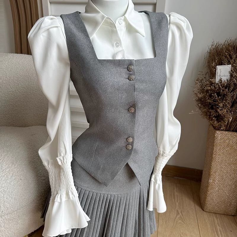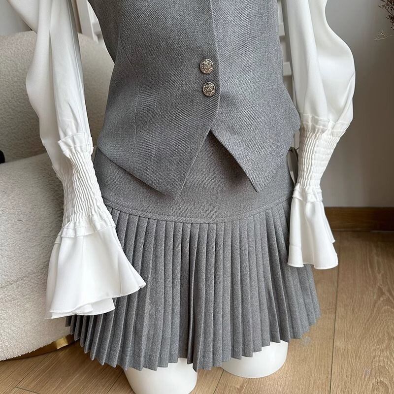 【set】ブラウス+ベスト+プリーツスカート3点セットF7305