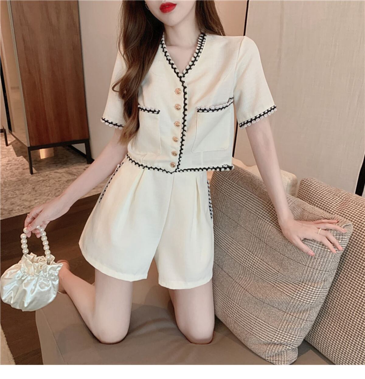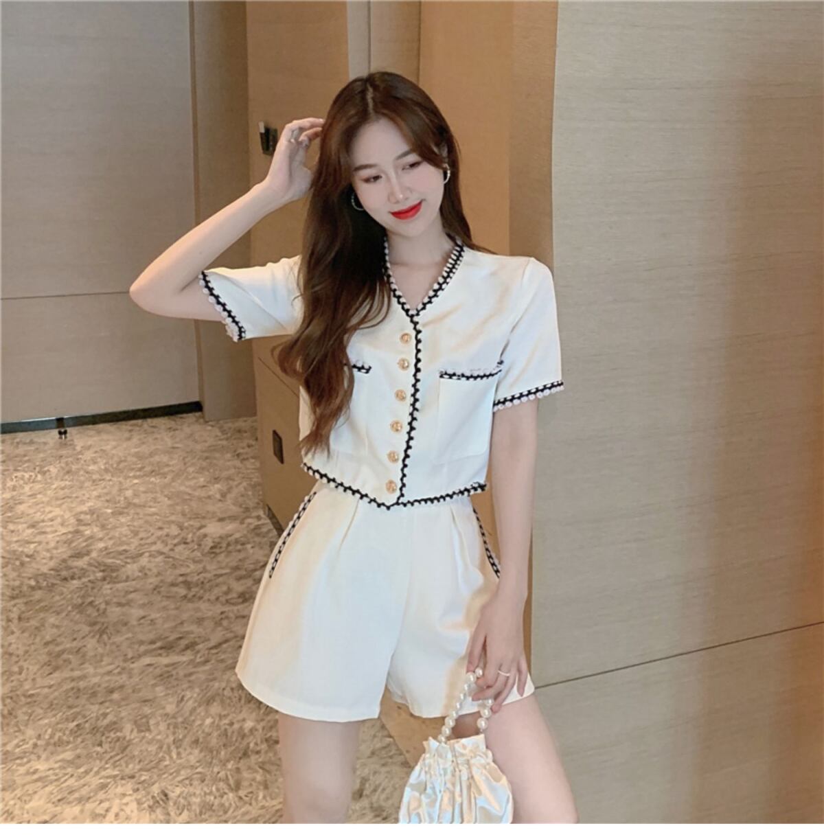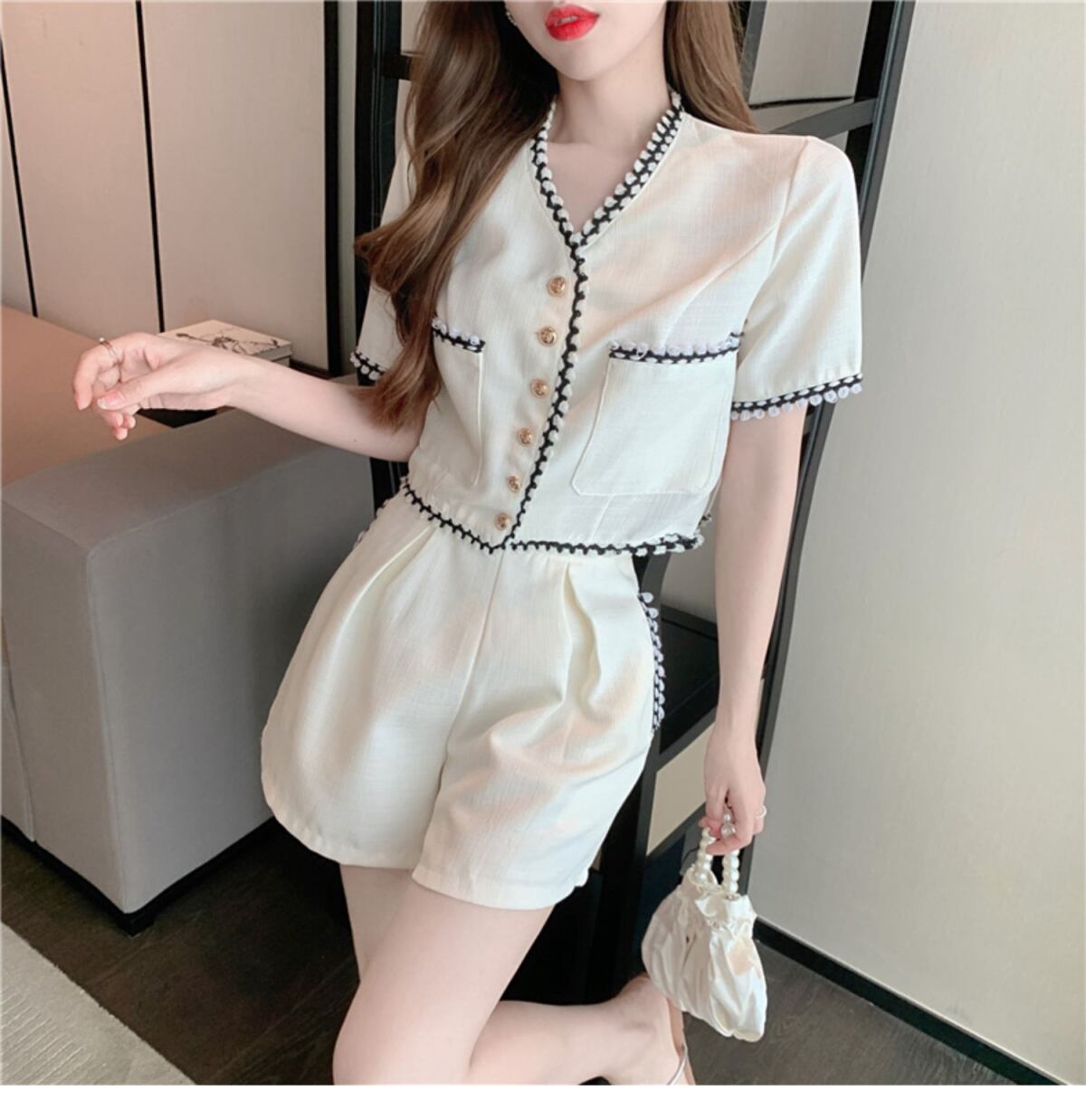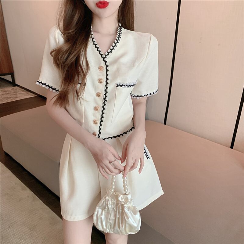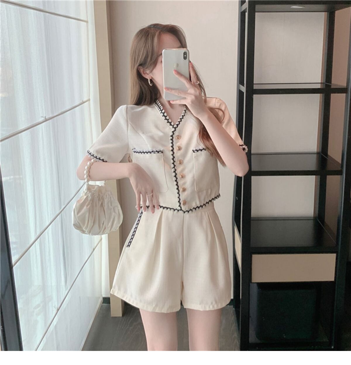 【set】半袖ブラウス+ギャザーショートパンツ2点セット F7361