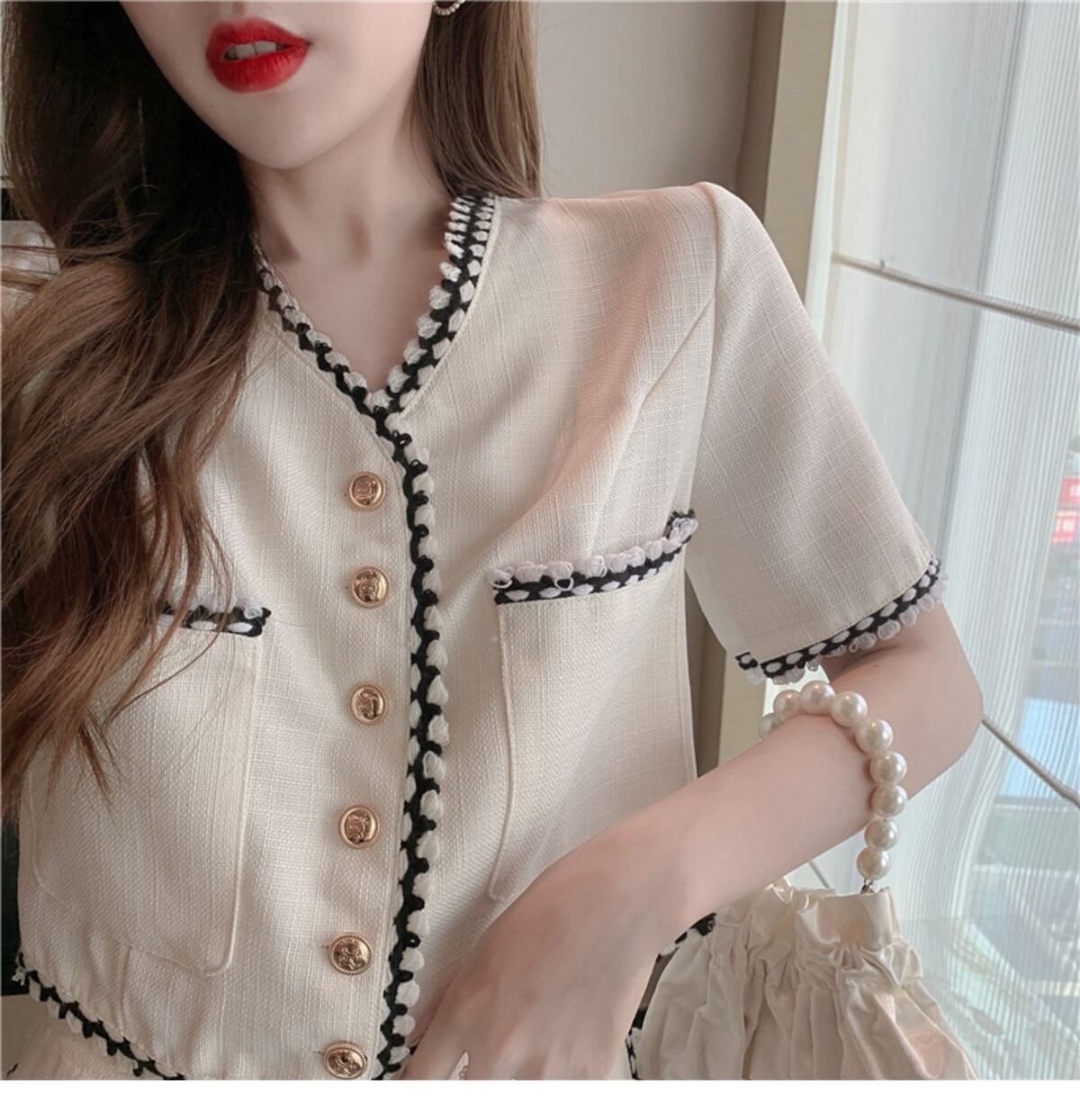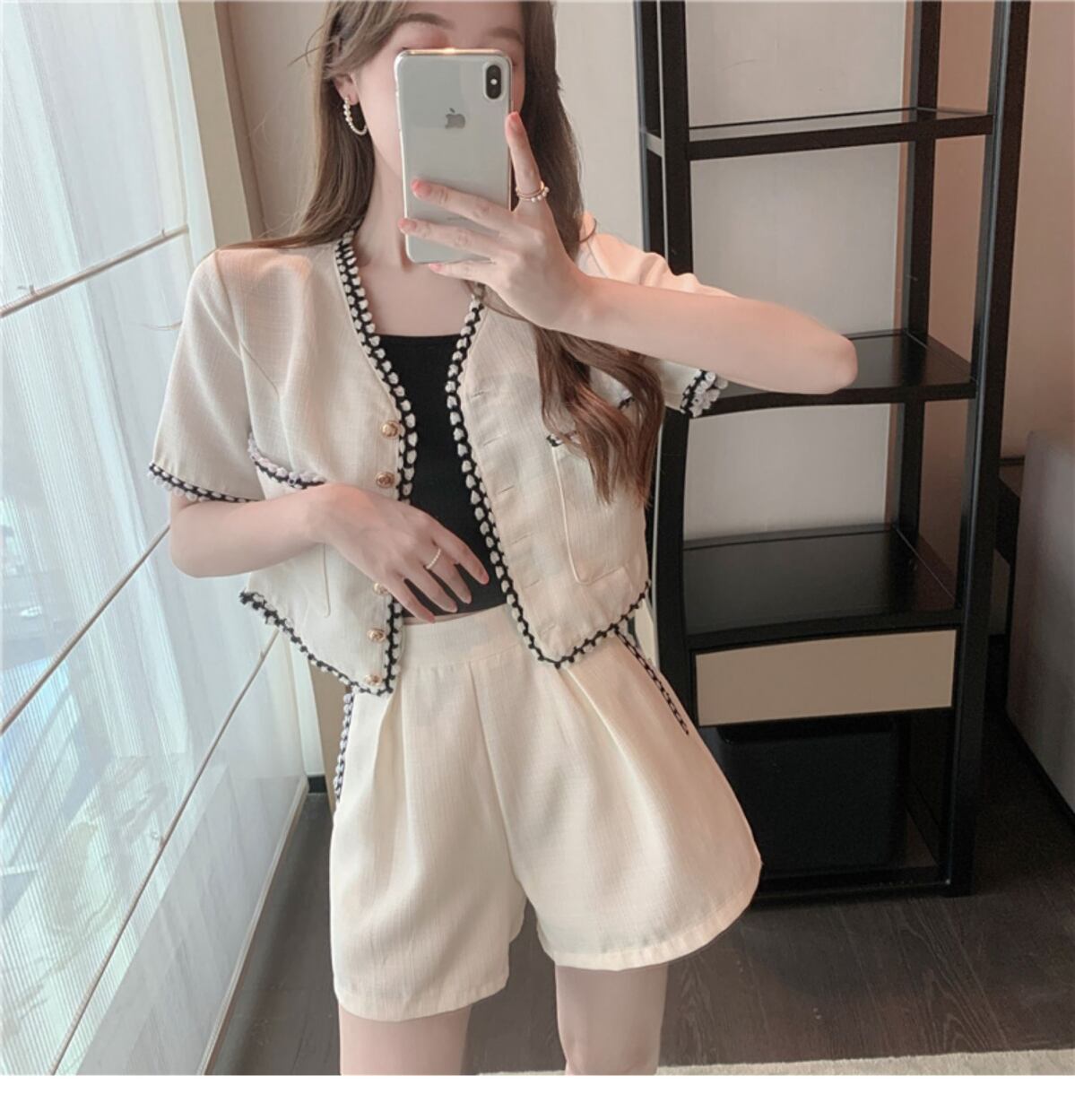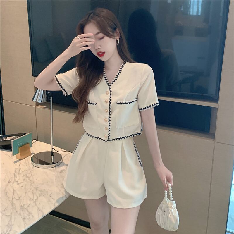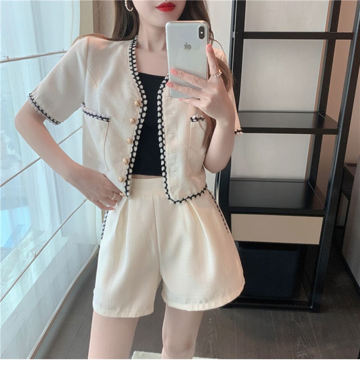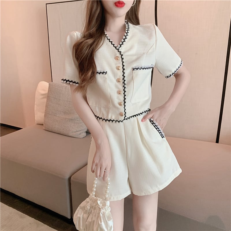 【set】半袖ブラウス+ギャザーショートパンツ2点セット F7361