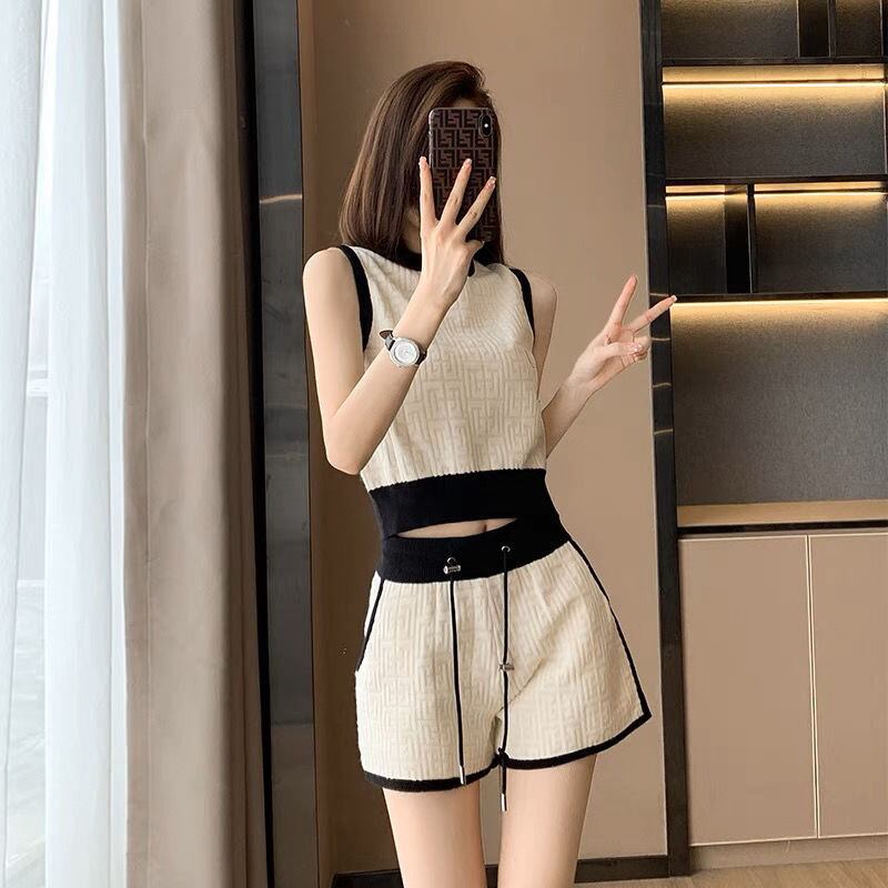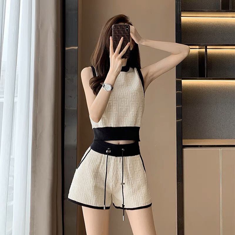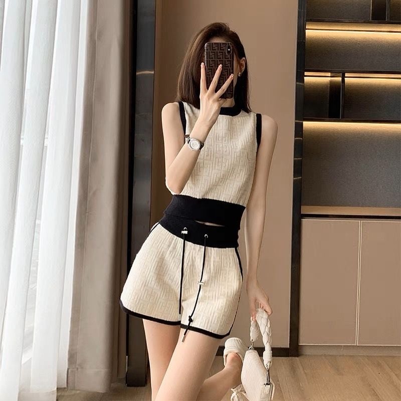 【set】ニットタンクトップ+ショートパンツ2点セットF7371
