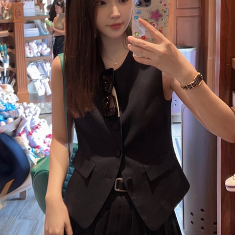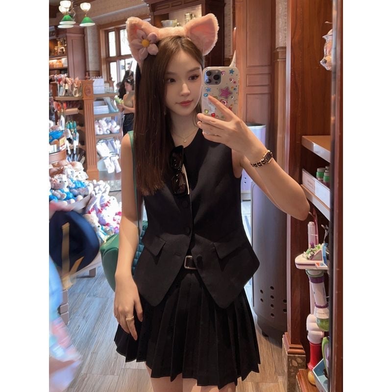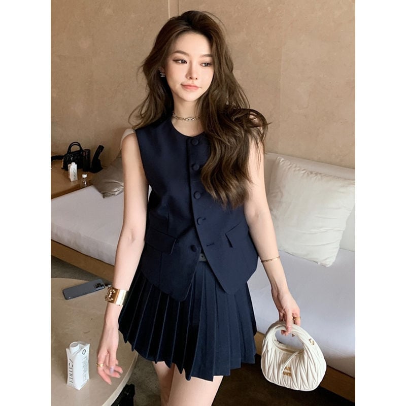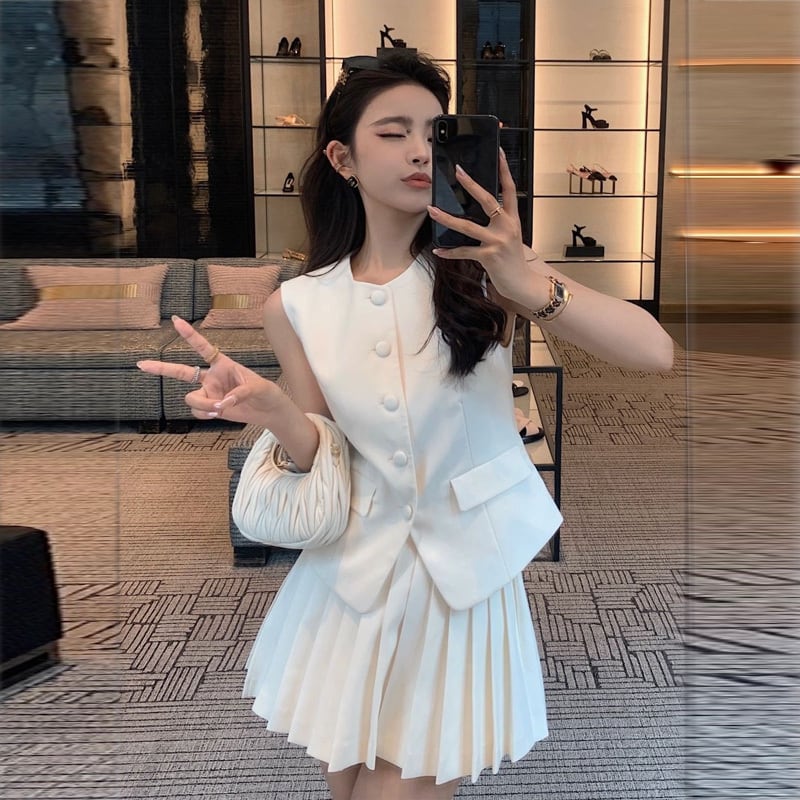 【set】ノースリーブトップス+プリーツスカート2点セットF7375
