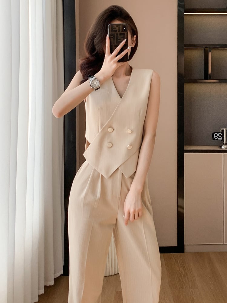 【set】タンクトップ+ガウチョパンツストライプ柄2点セットF7397