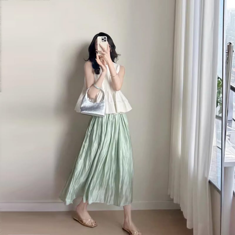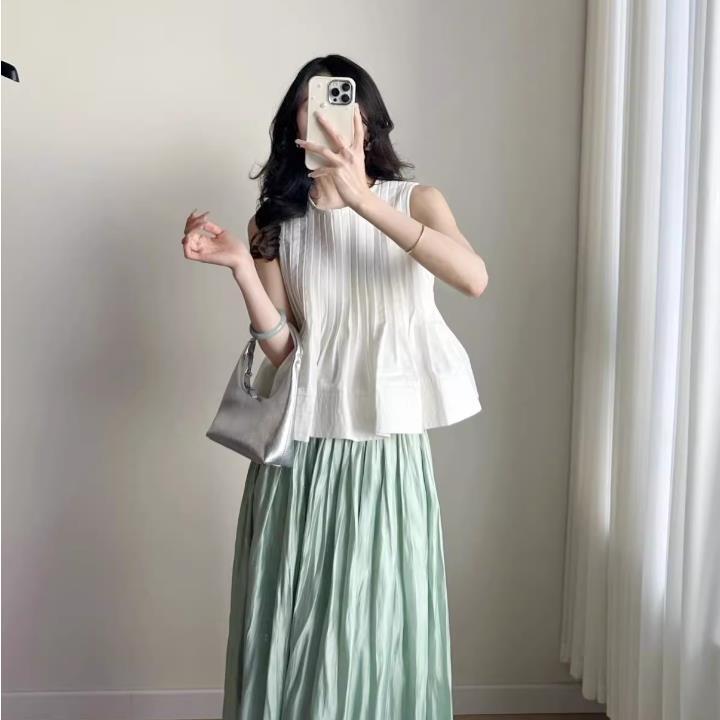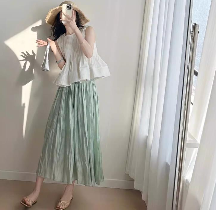 【set】ペプラムタンクトップ+スカート2点セットF7440