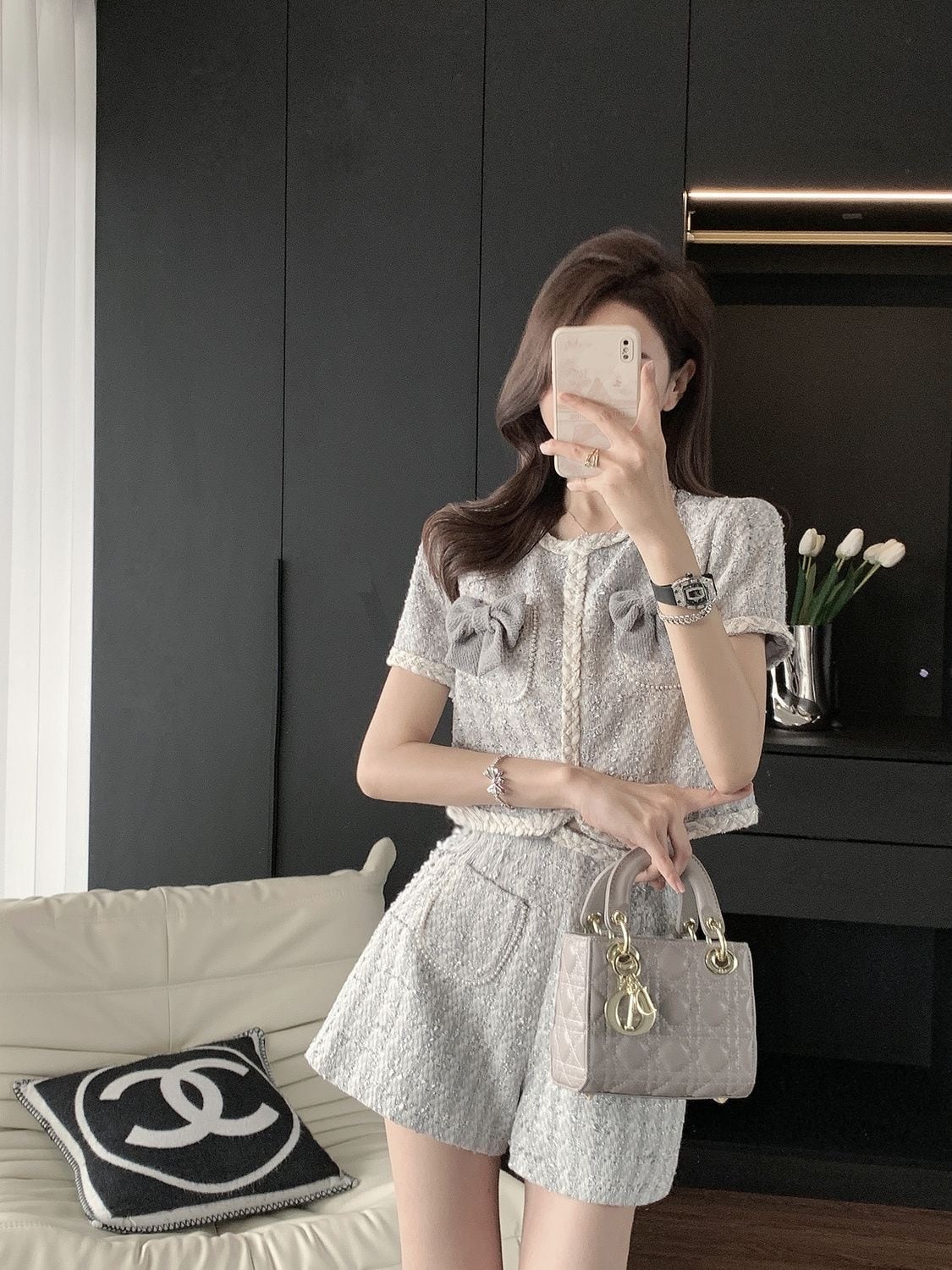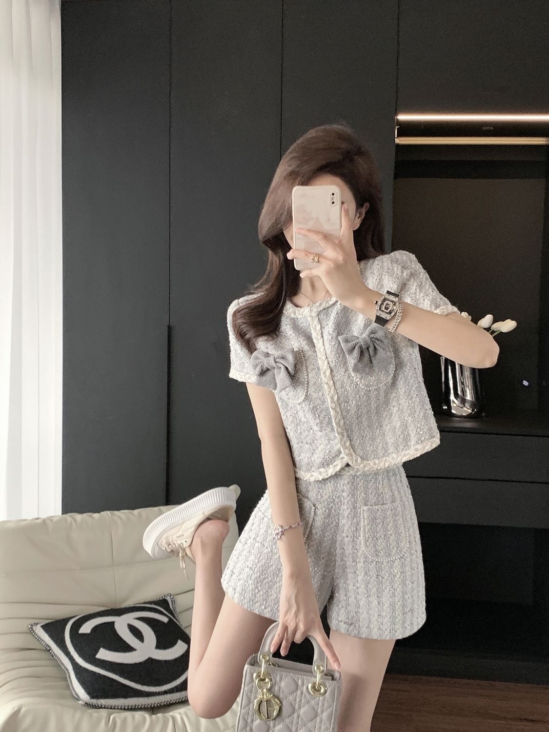 【set】ボウタイトップス+ショートパンツ2点セットF7467