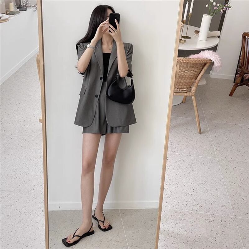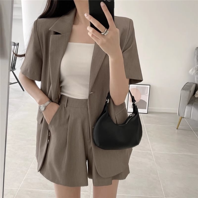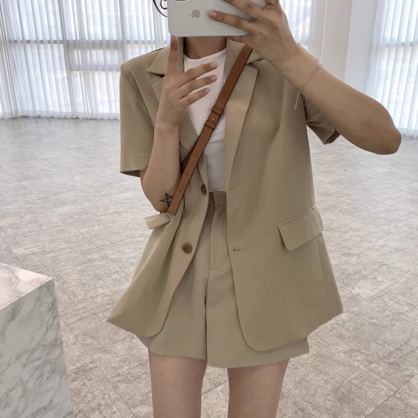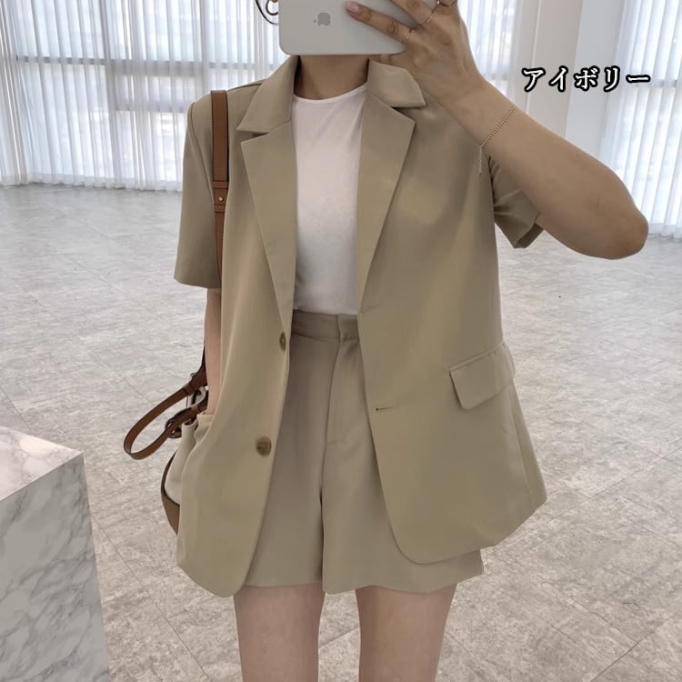 【set】4色スーツジャケット+ショートパンツ2点セットF7469