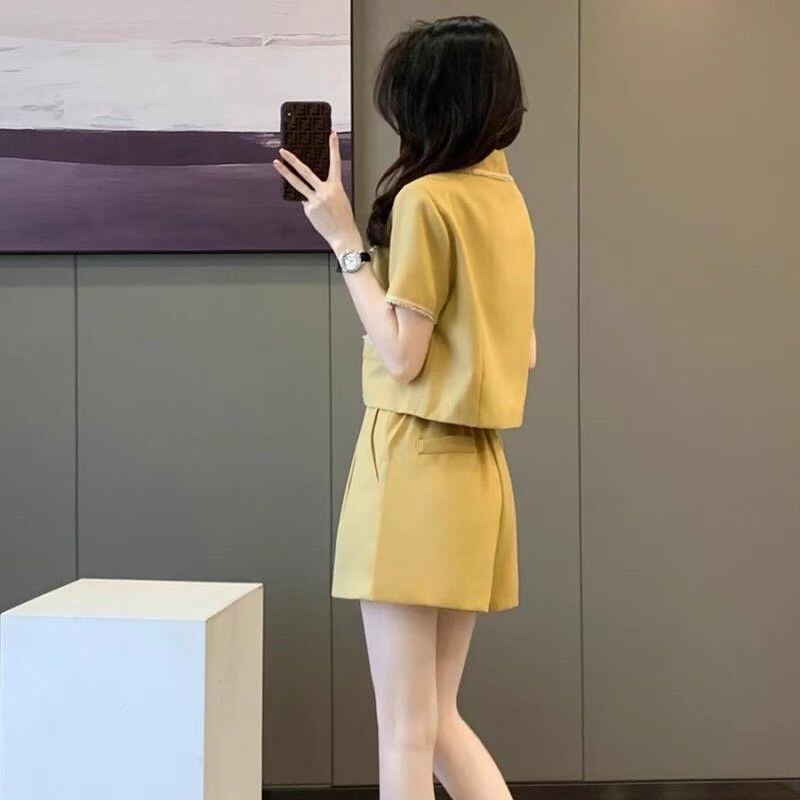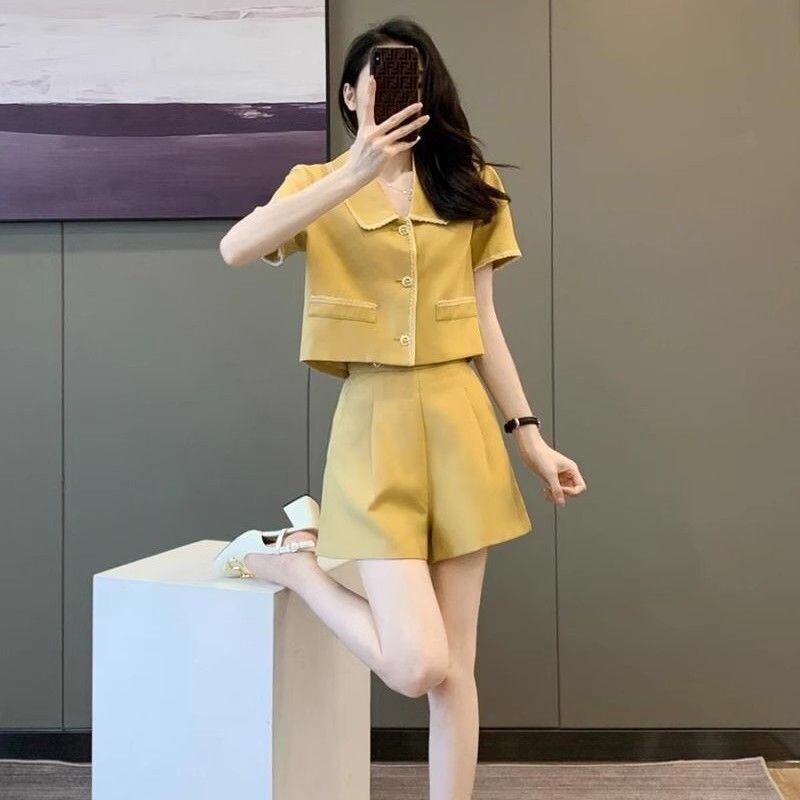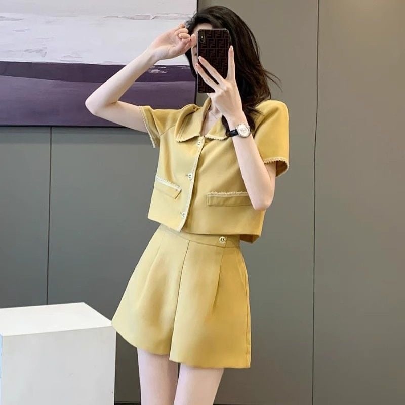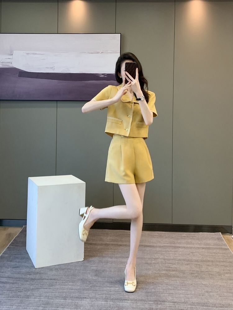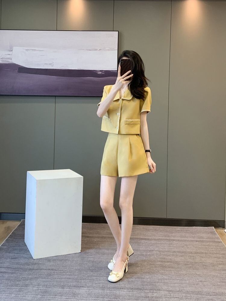 【set】POLOネックトップス+ショートパンツ2点セットF7484