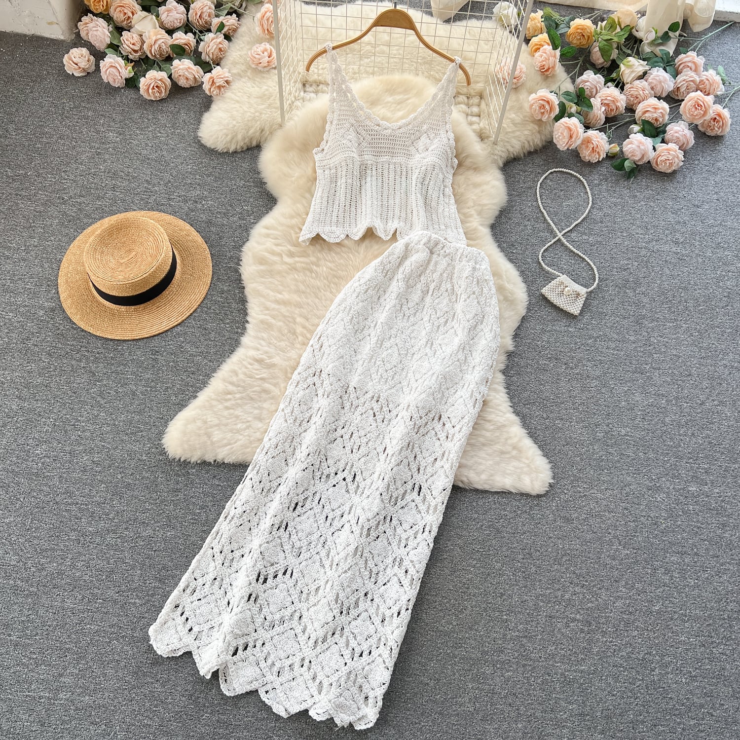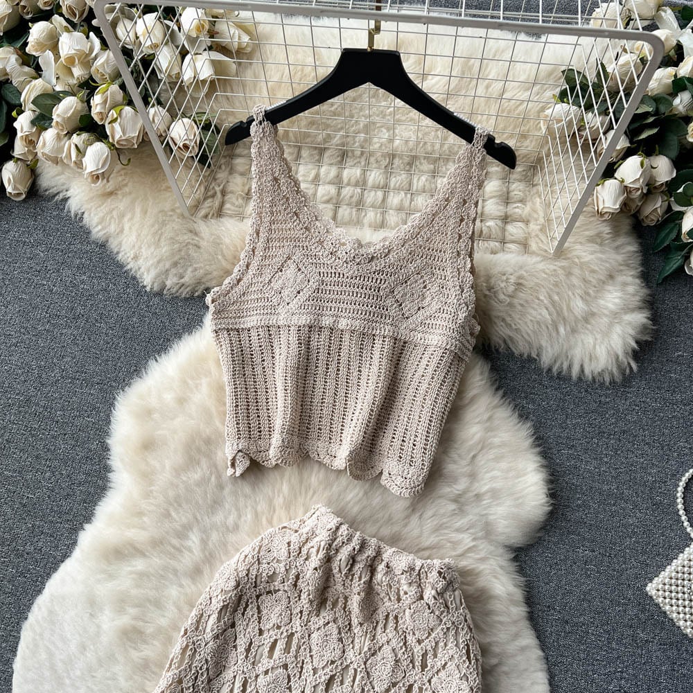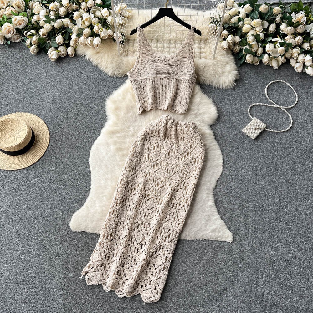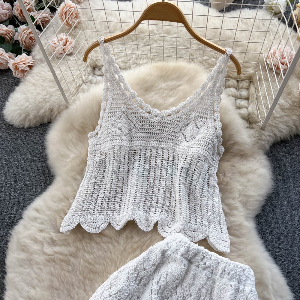 【set】キャミソール+スカート透かし彫り2点セットF7518