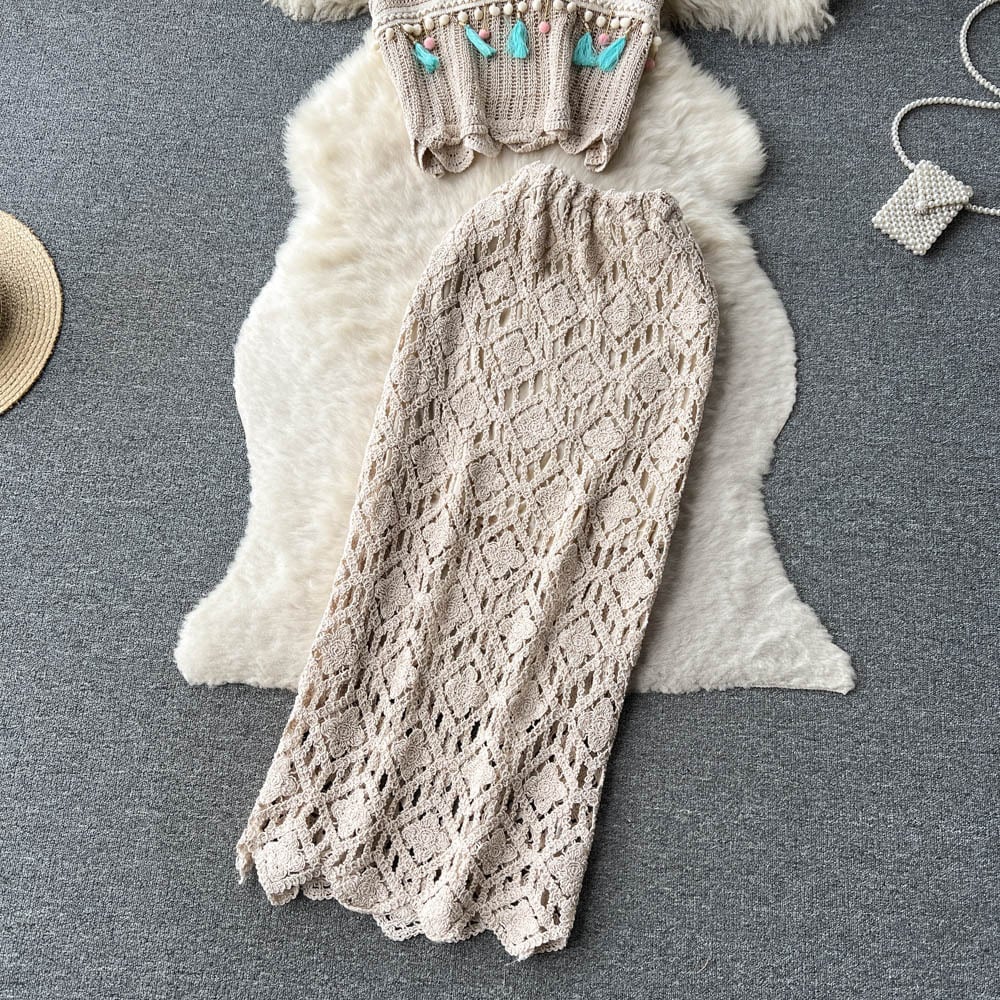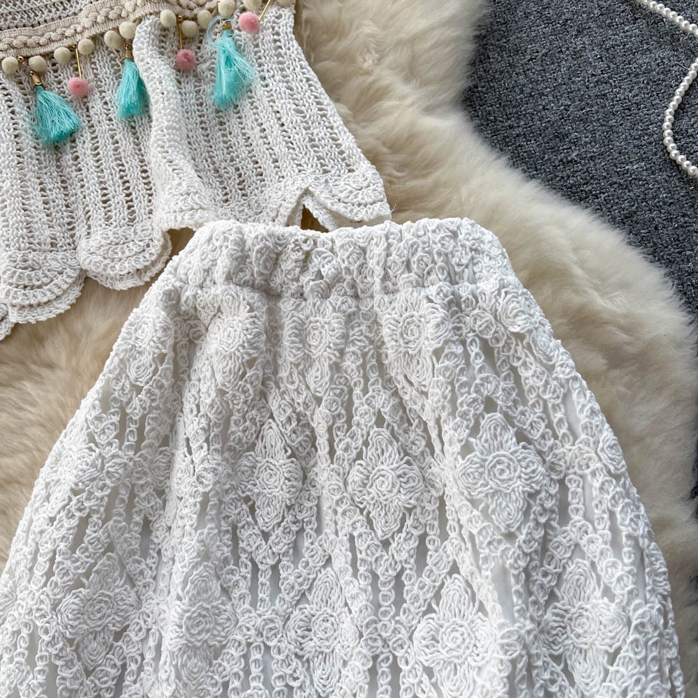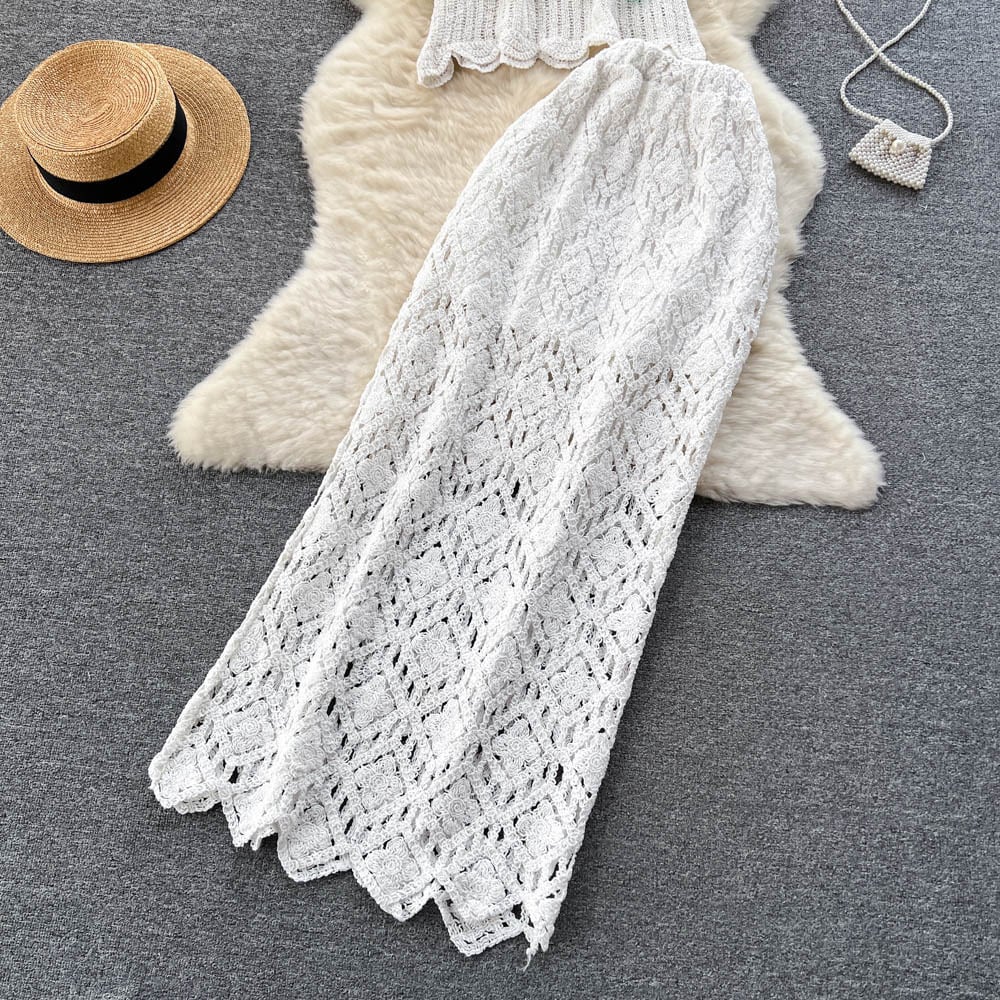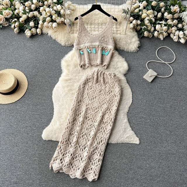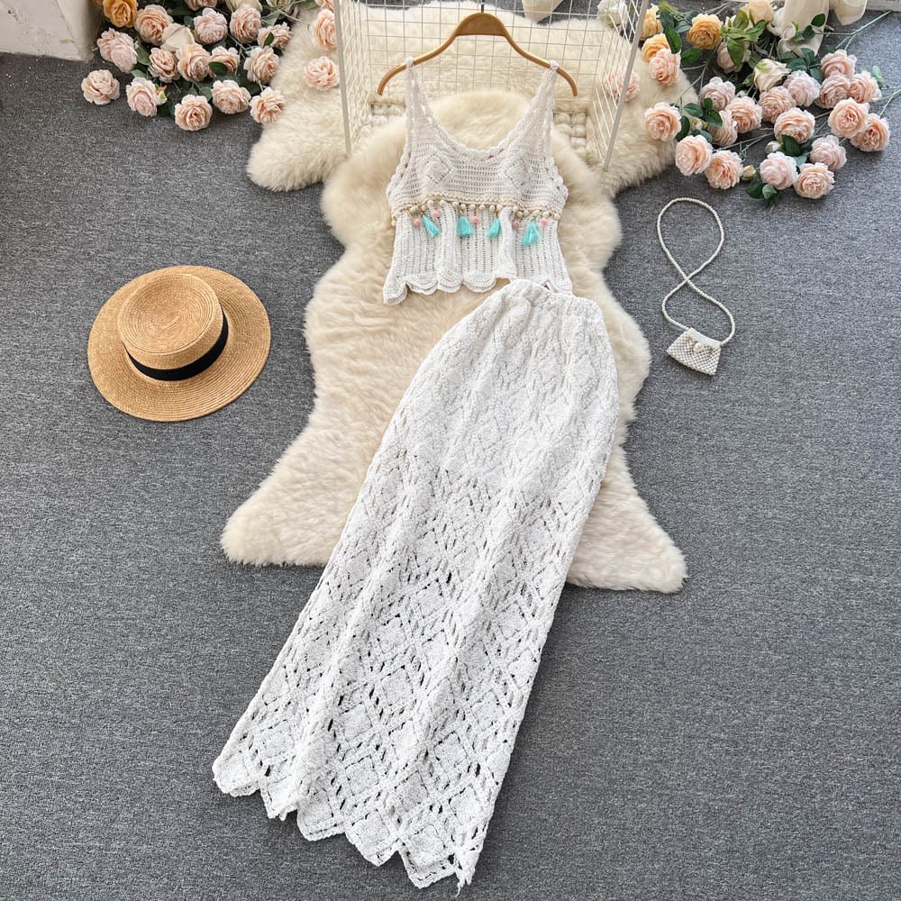【set】キャミソール+スカート透かし彫り2点セットF7518