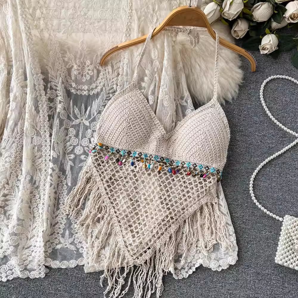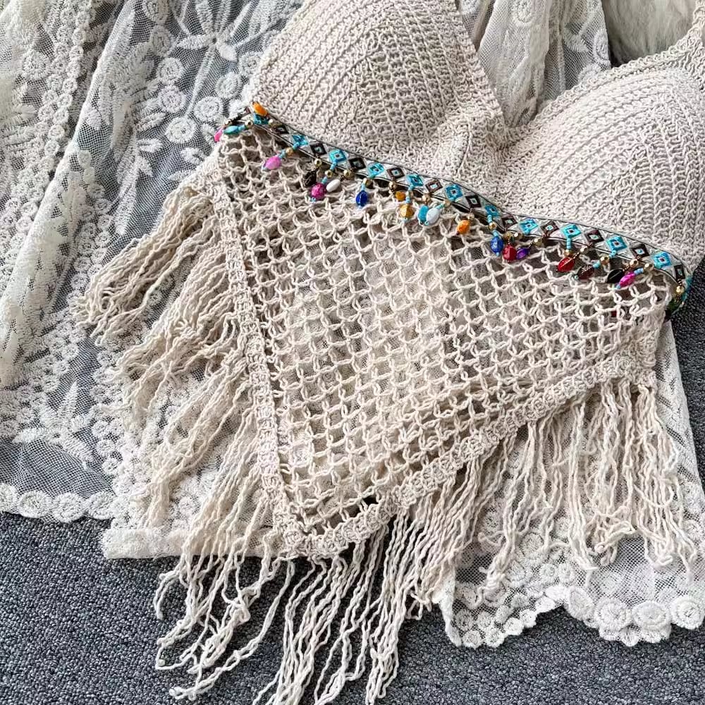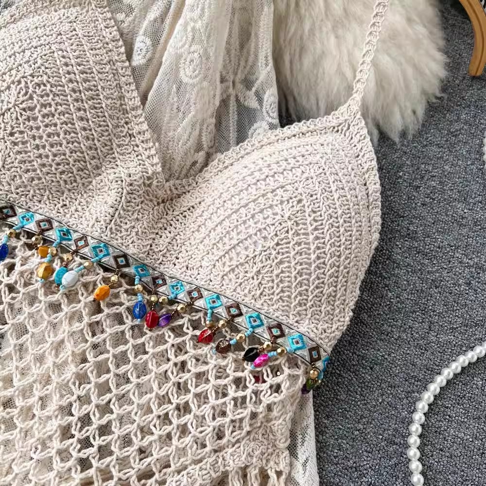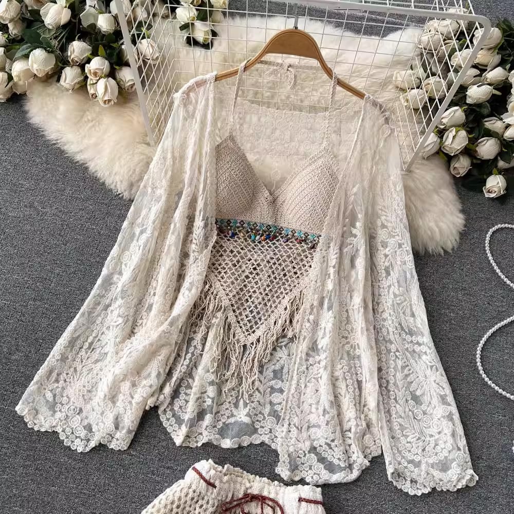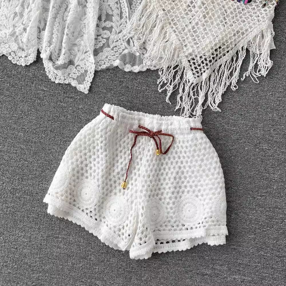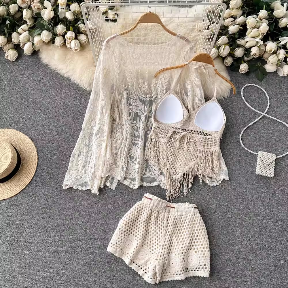 【set】カーディガン+フリンジキャミソール+ショートパンツ3点セットF7520