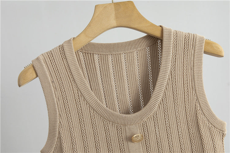 【set】長袖カーディガン+タンクトップ+スカートニット3点セットF7951