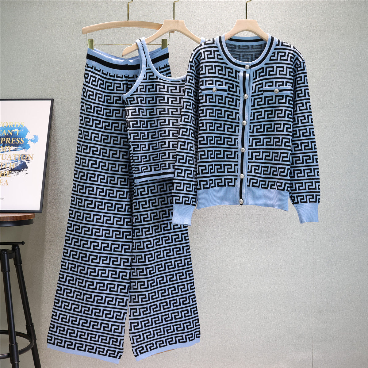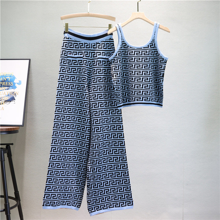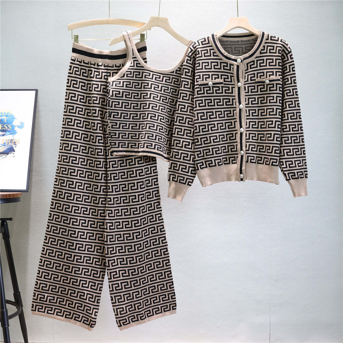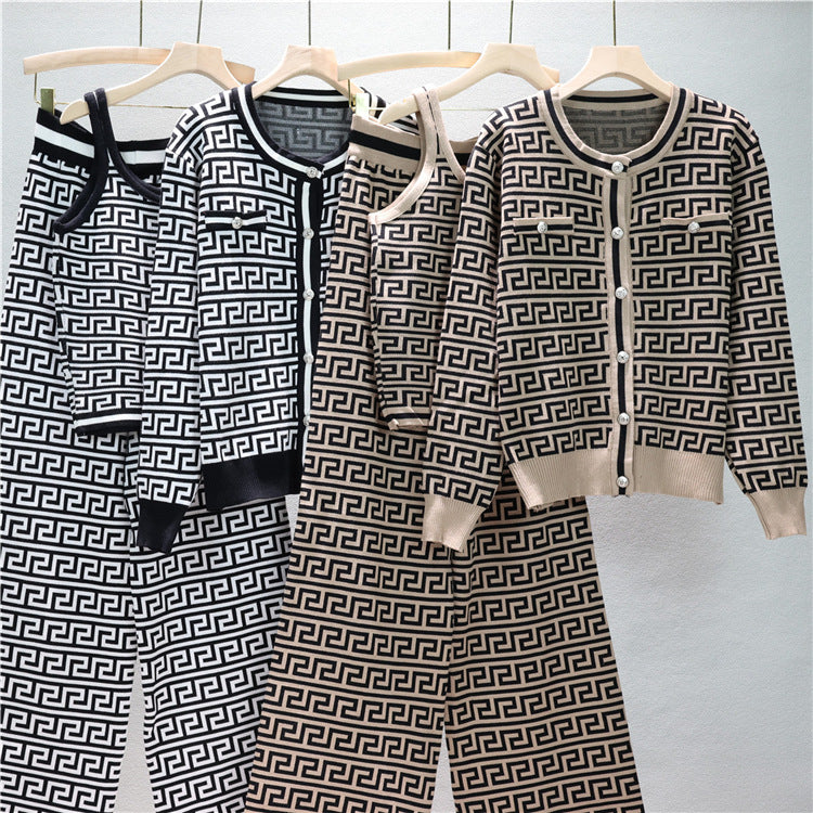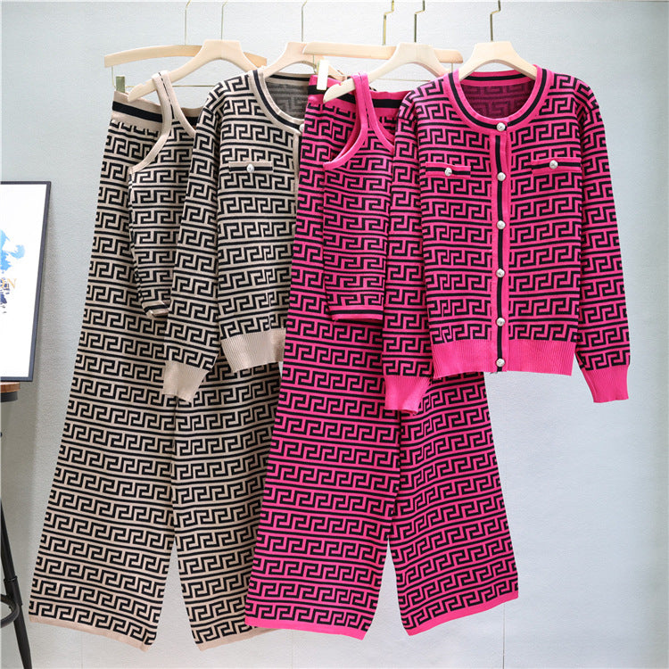 【set】長袖カーディガン+タンクトップ+ガウチョパンツニット3点セットF7954