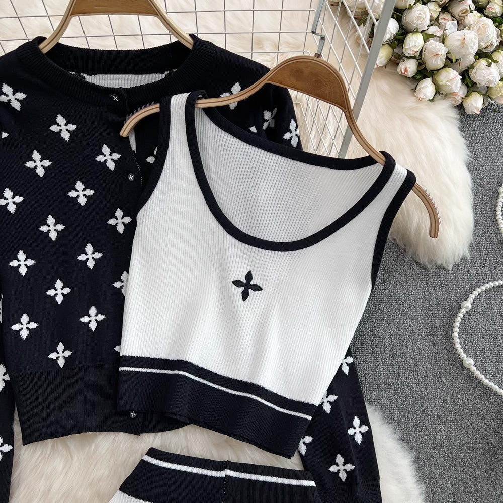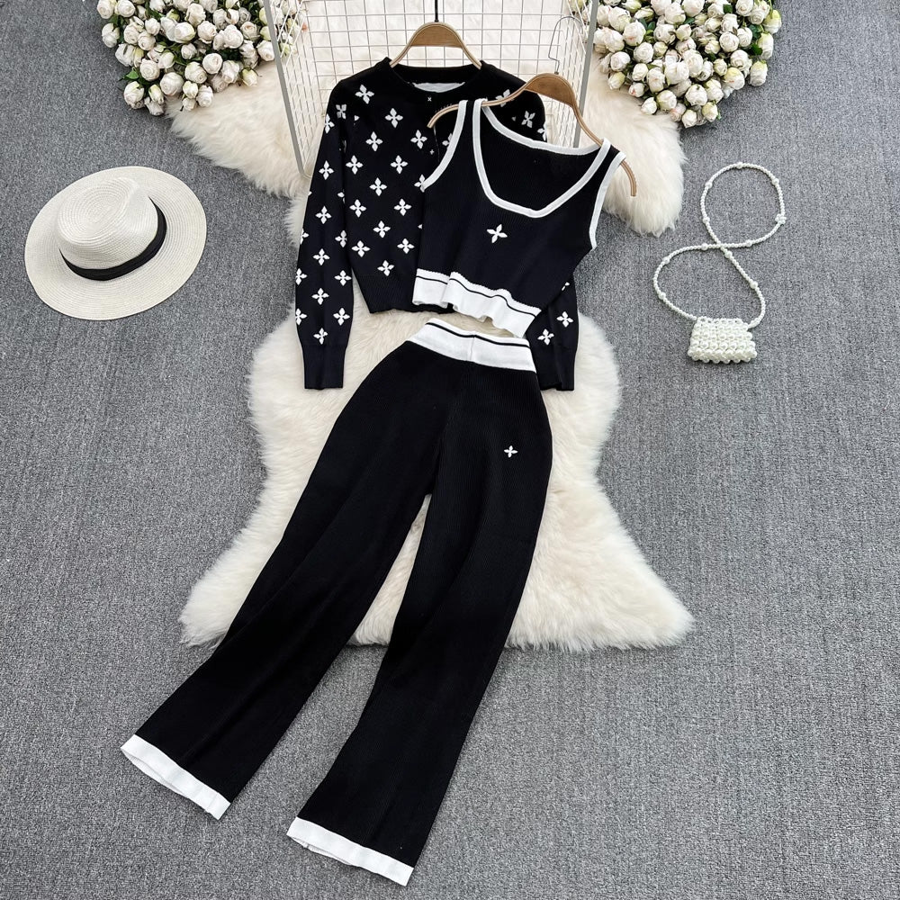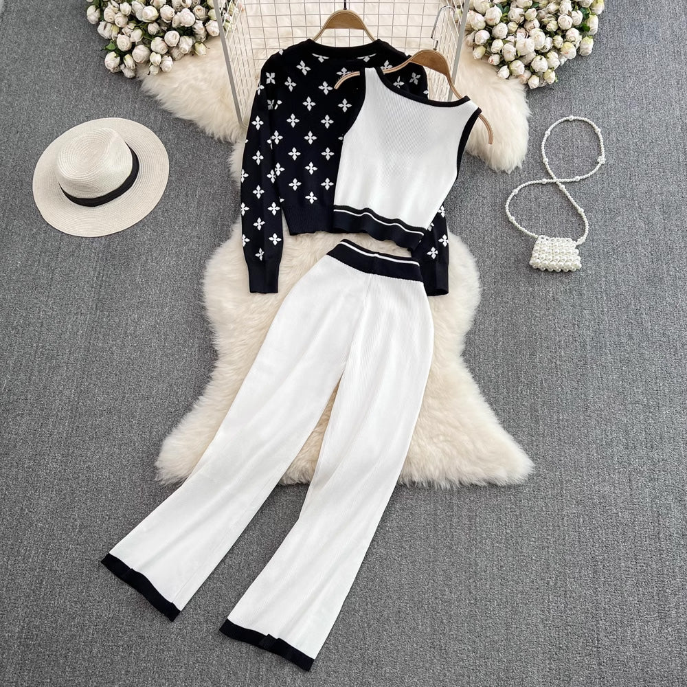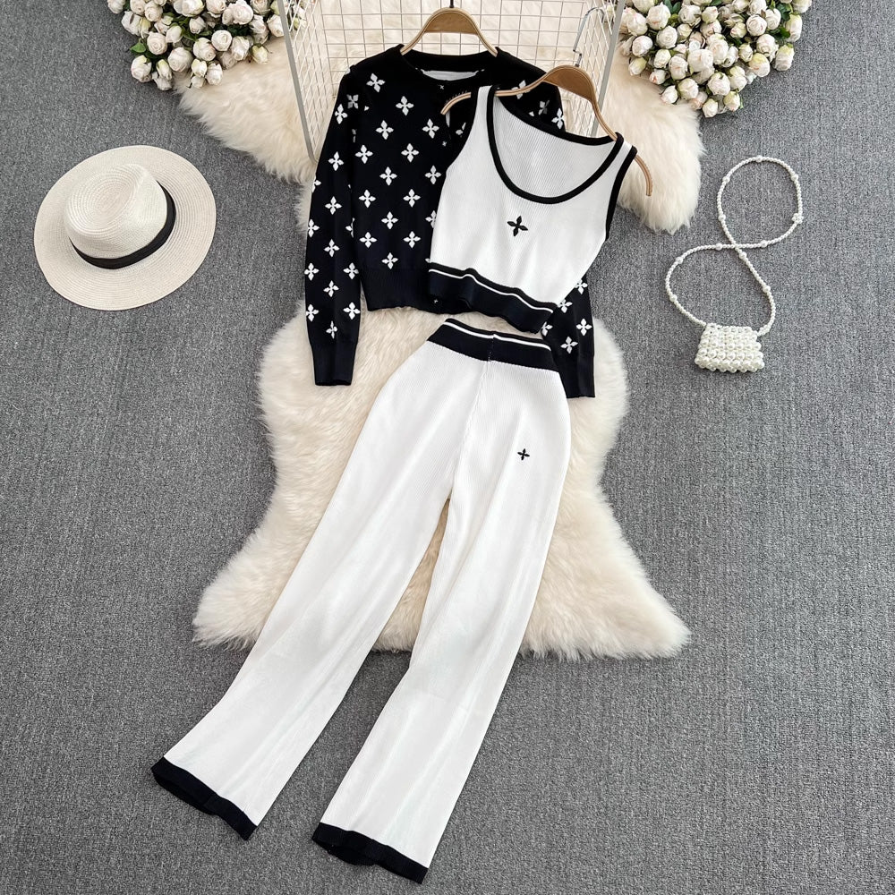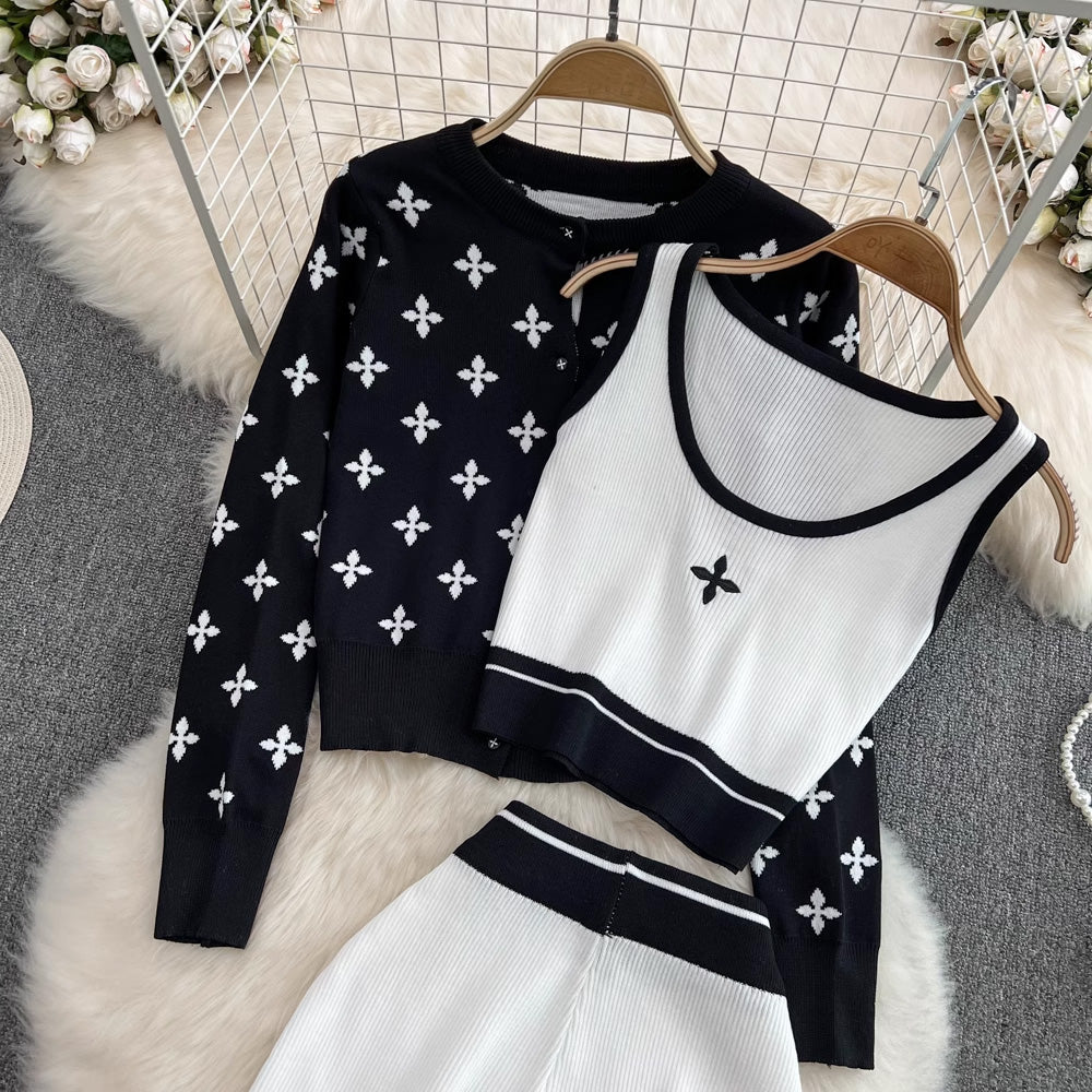 【set】長袖カーディガン+タンクトップ+ガウチョパンツニット3点セットF7986